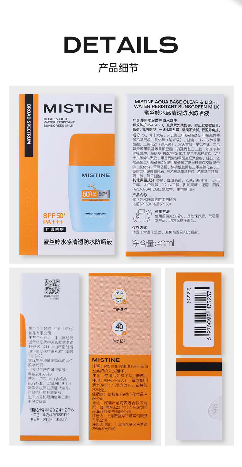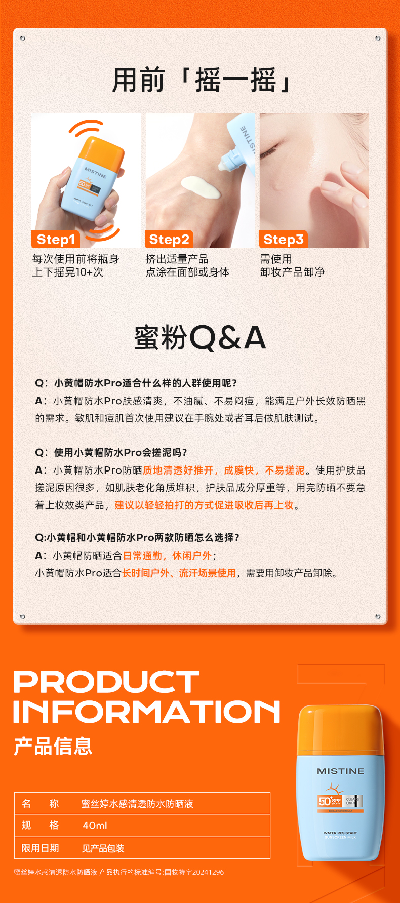 蜜丝婷清透倍护运动防水防晒液(摇摇乐防晒) 40ml