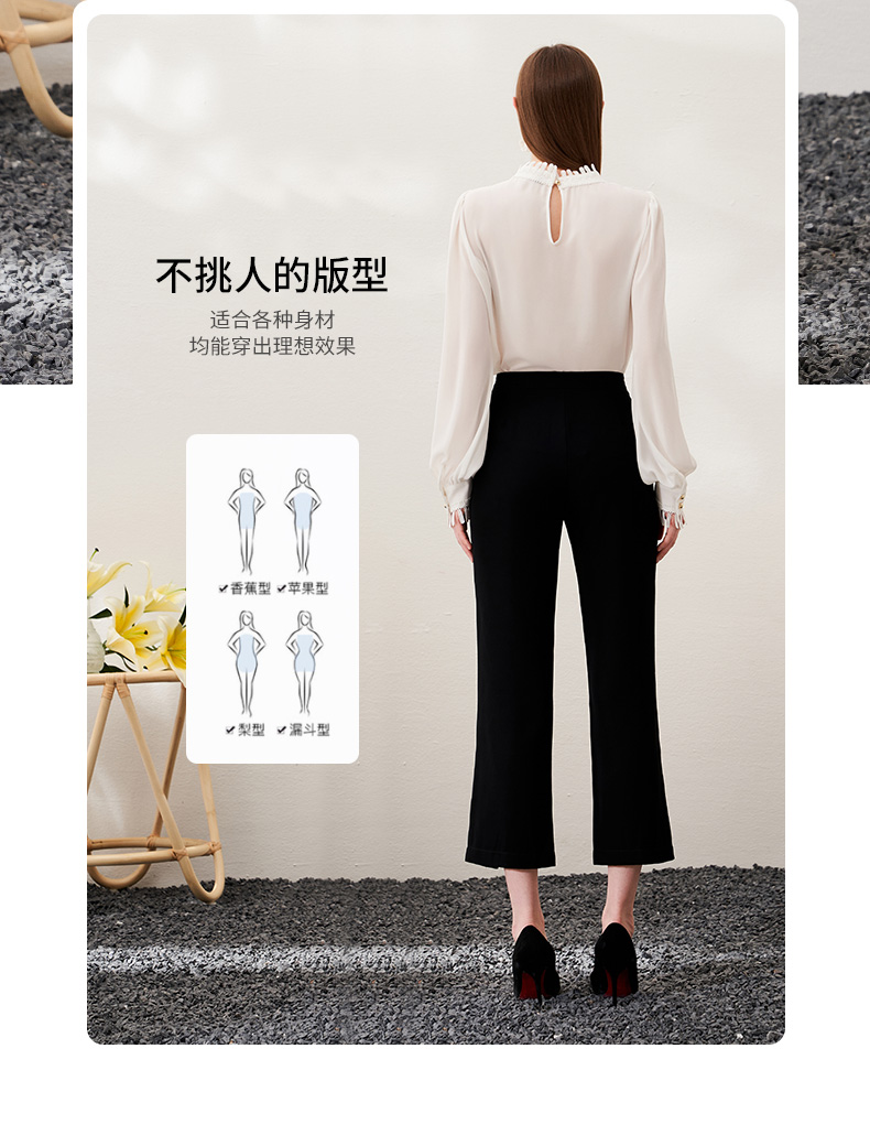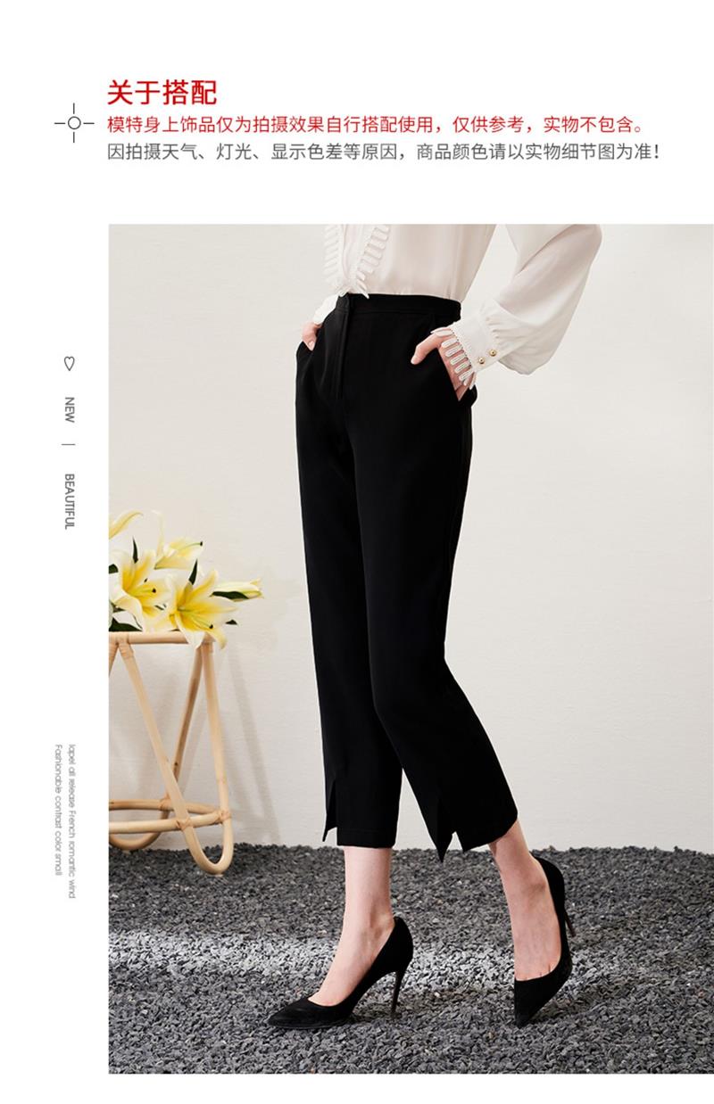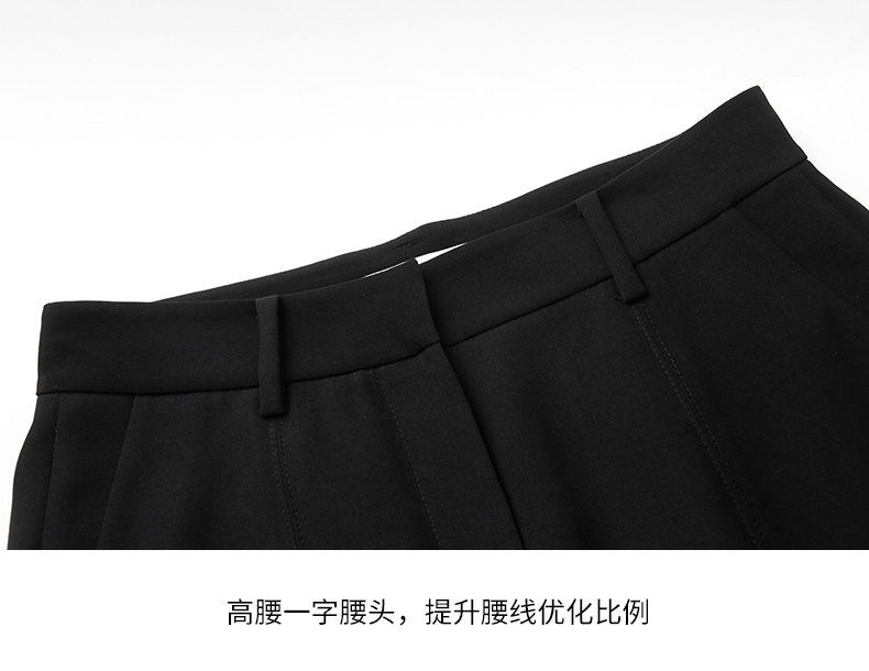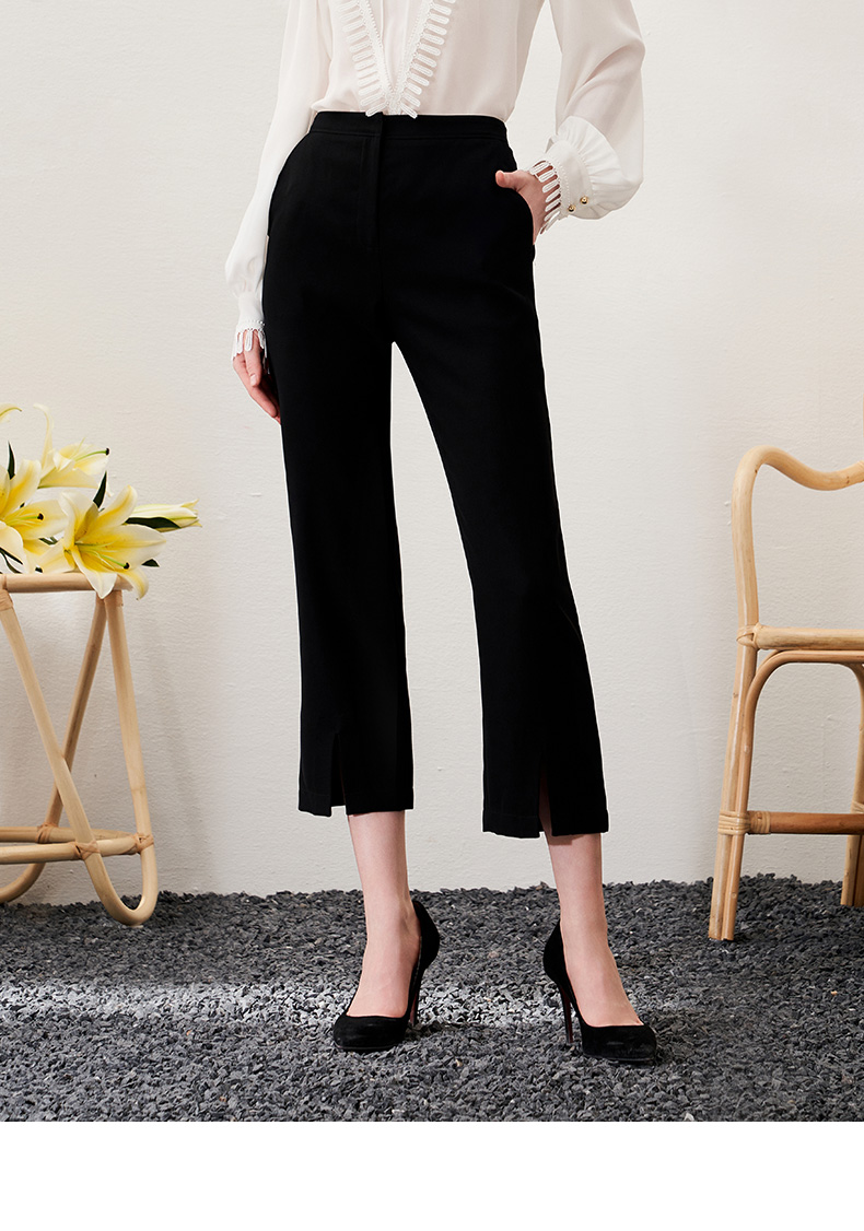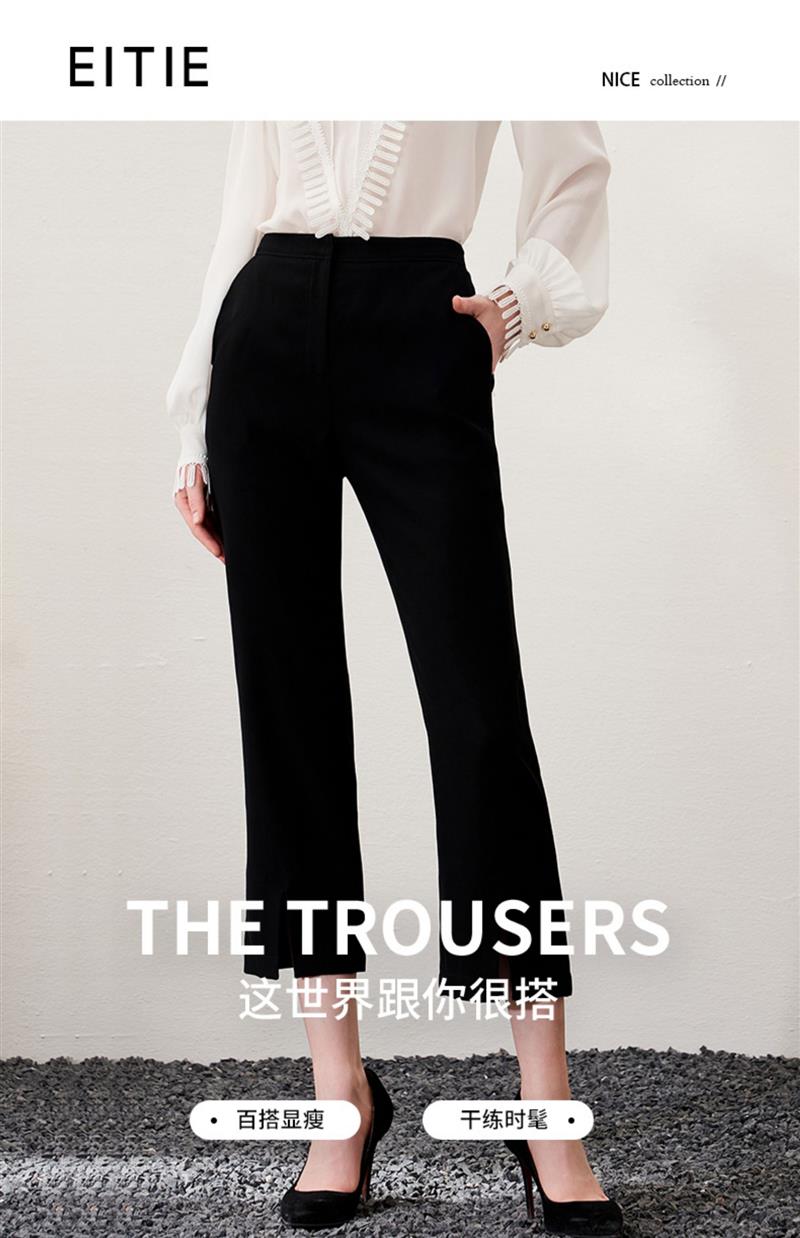 EITIE爱特爱春季新款高腰通勤OL显瘦百搭开叉微喇九分休闲裤A2305105