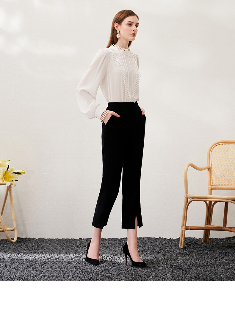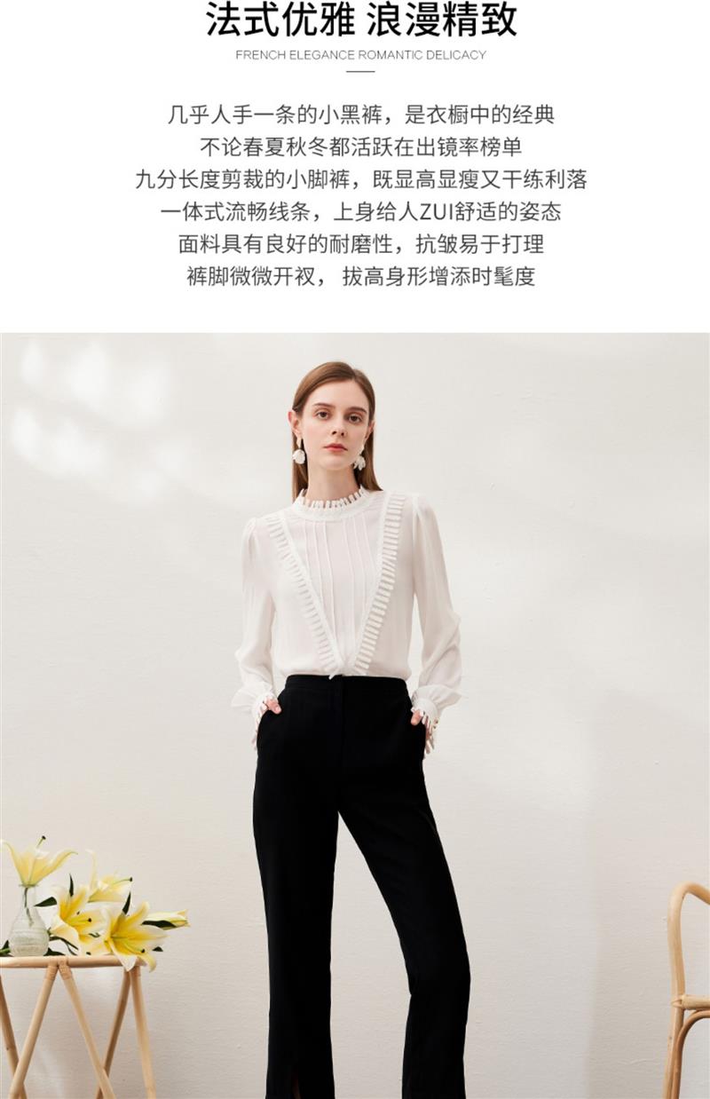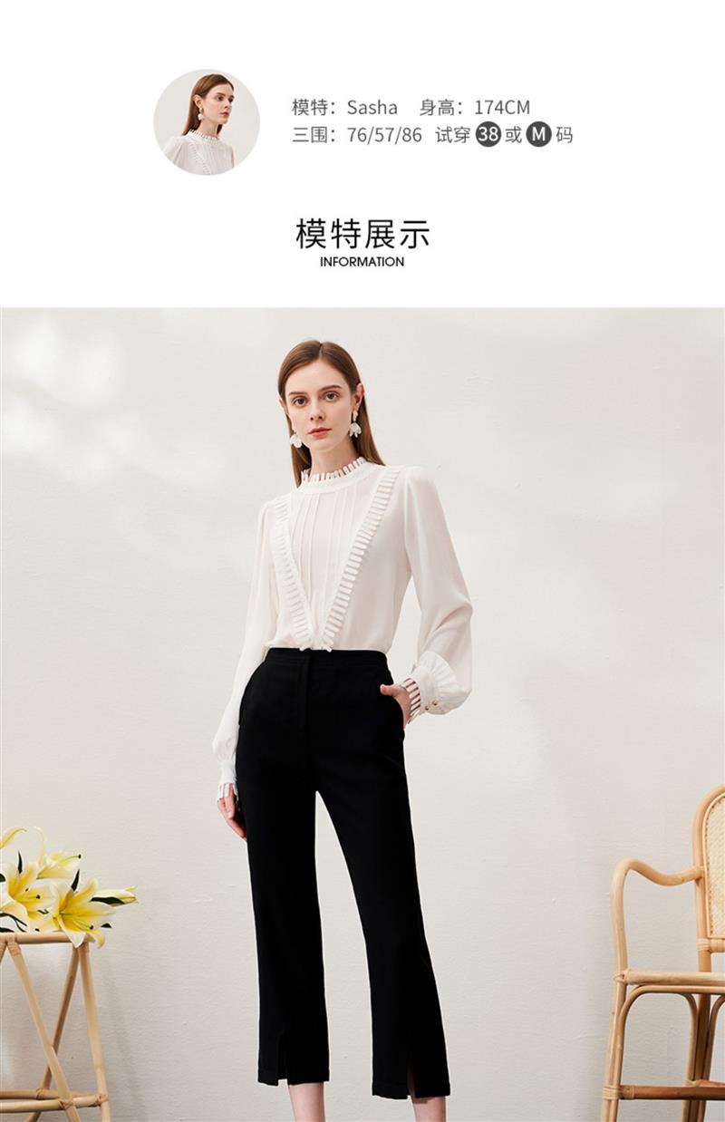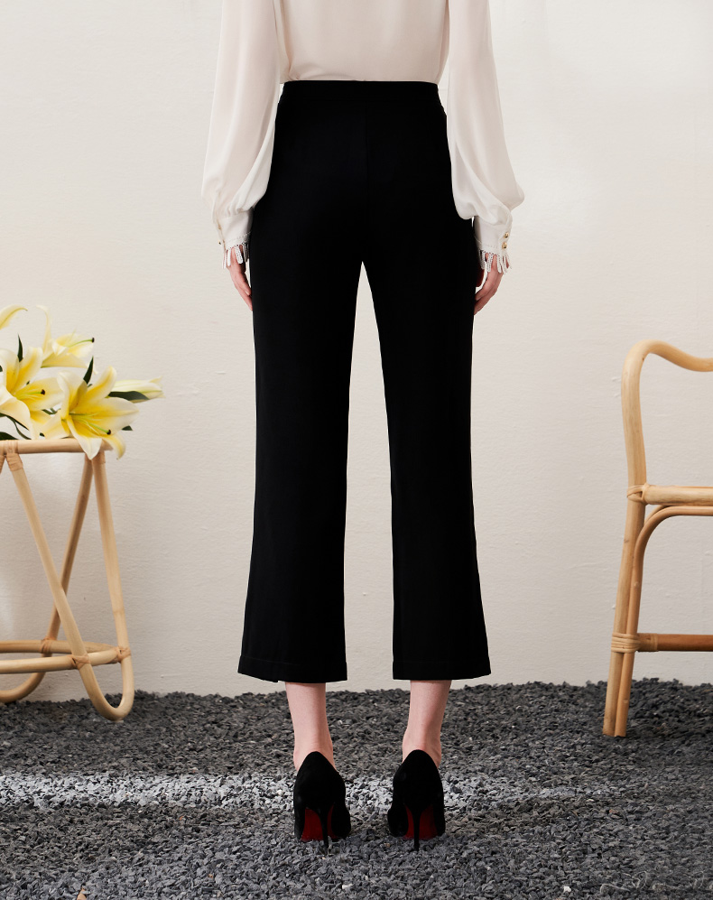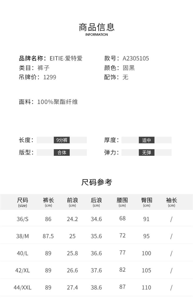 EITIE爱特爱春季新款高腰通勤OL显瘦百搭开叉微喇九分休闲裤A2305105