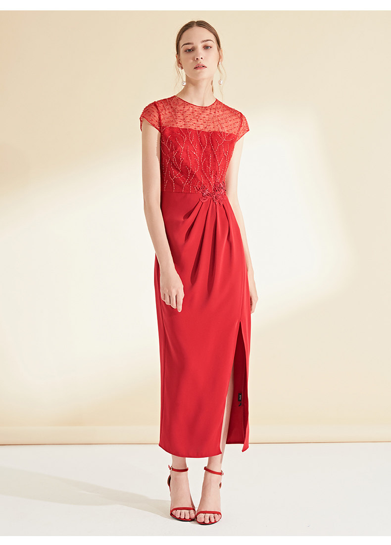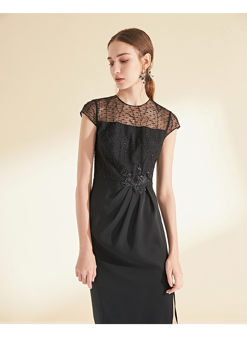 EITIE爱特爱女装夏秋季钉珠显瘦气质名媛晚装宴会礼服连衣裙6077703