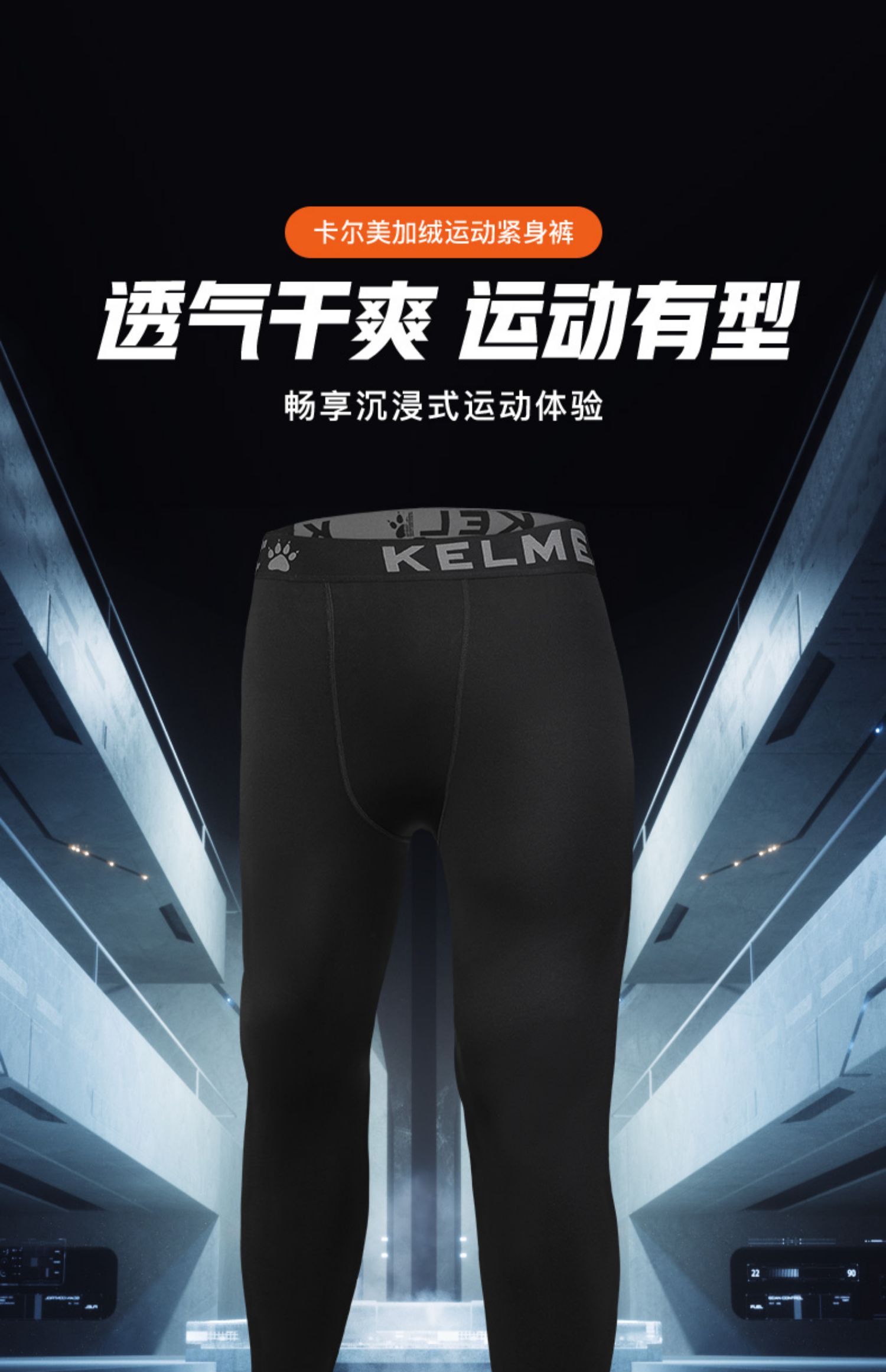 KELME卡尔美加绒紧身裤运动足球训练健身裤男篮球打底跑步压缩裤