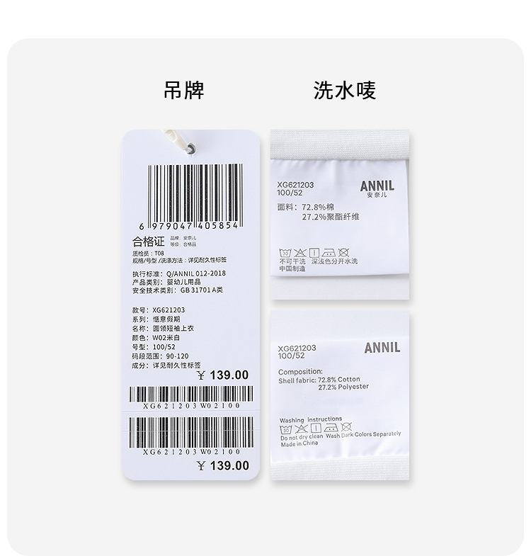 【实体店同款】女童圆领短袖上衣夏季新款安奈儿童装XG621203