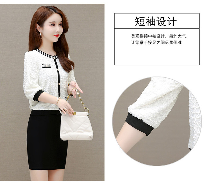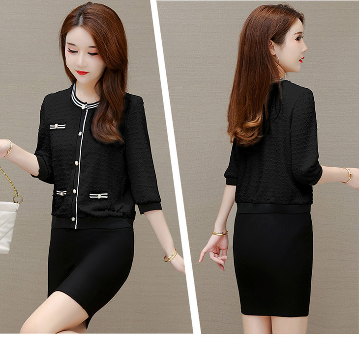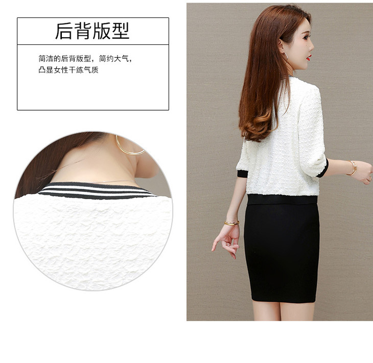KLY1154 春夏新款气质两件套中腰修身印花七分袖连衣裙