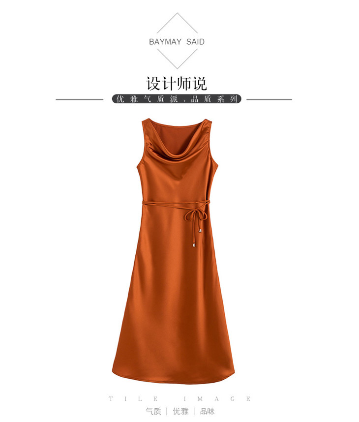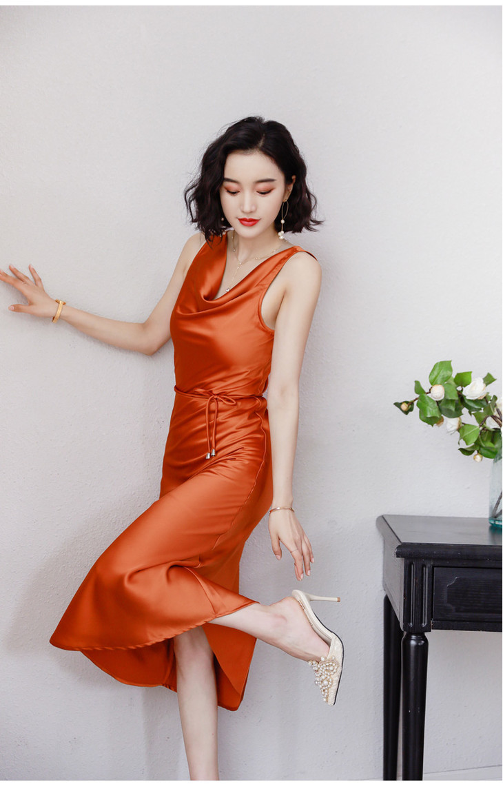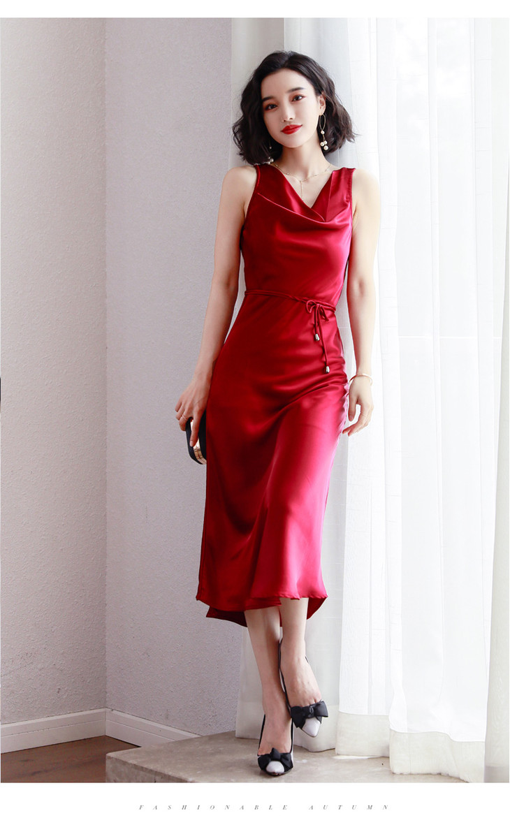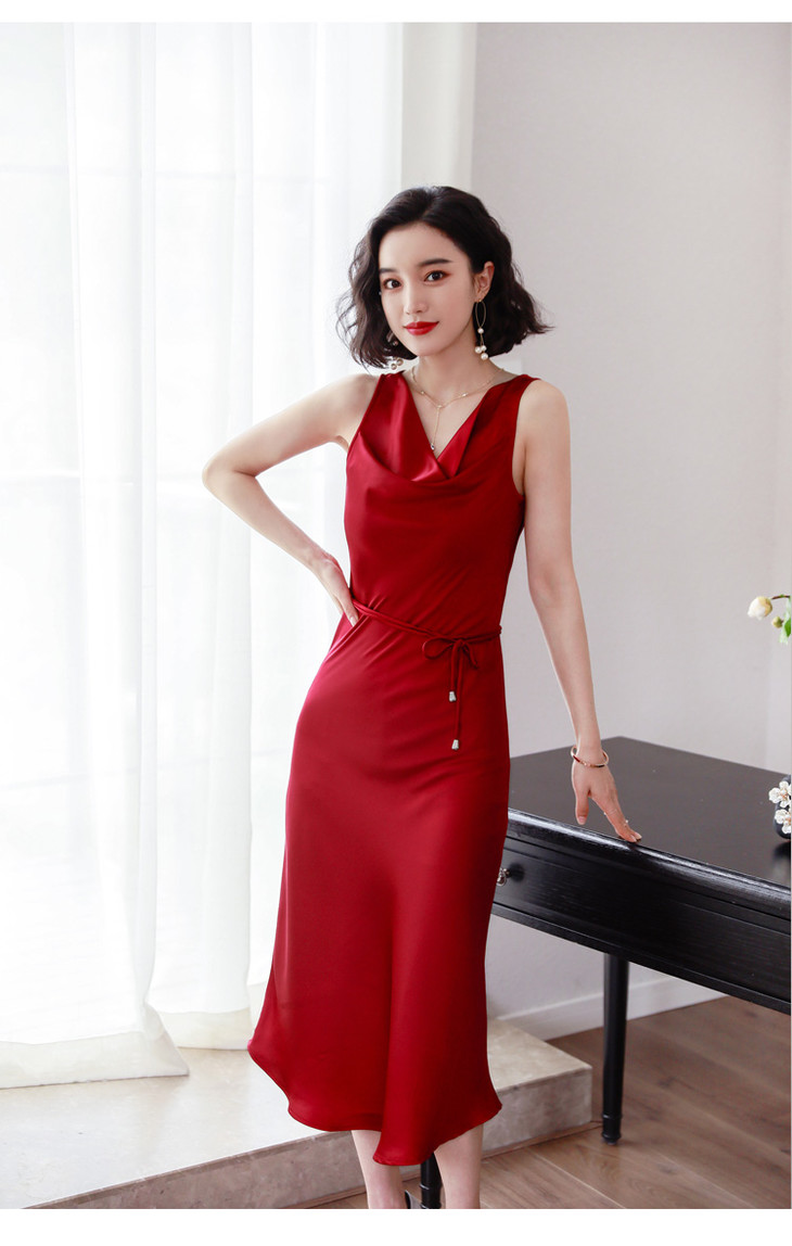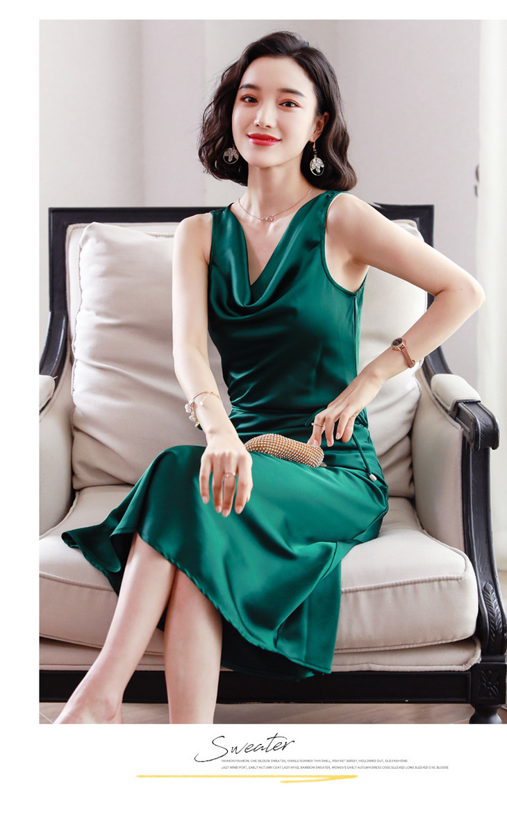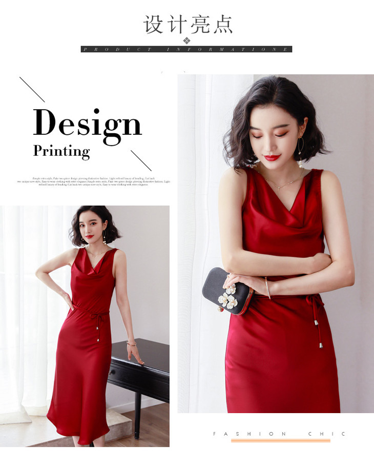 HT-1969-新款荡领显瘦气质缎面背心连衣裙