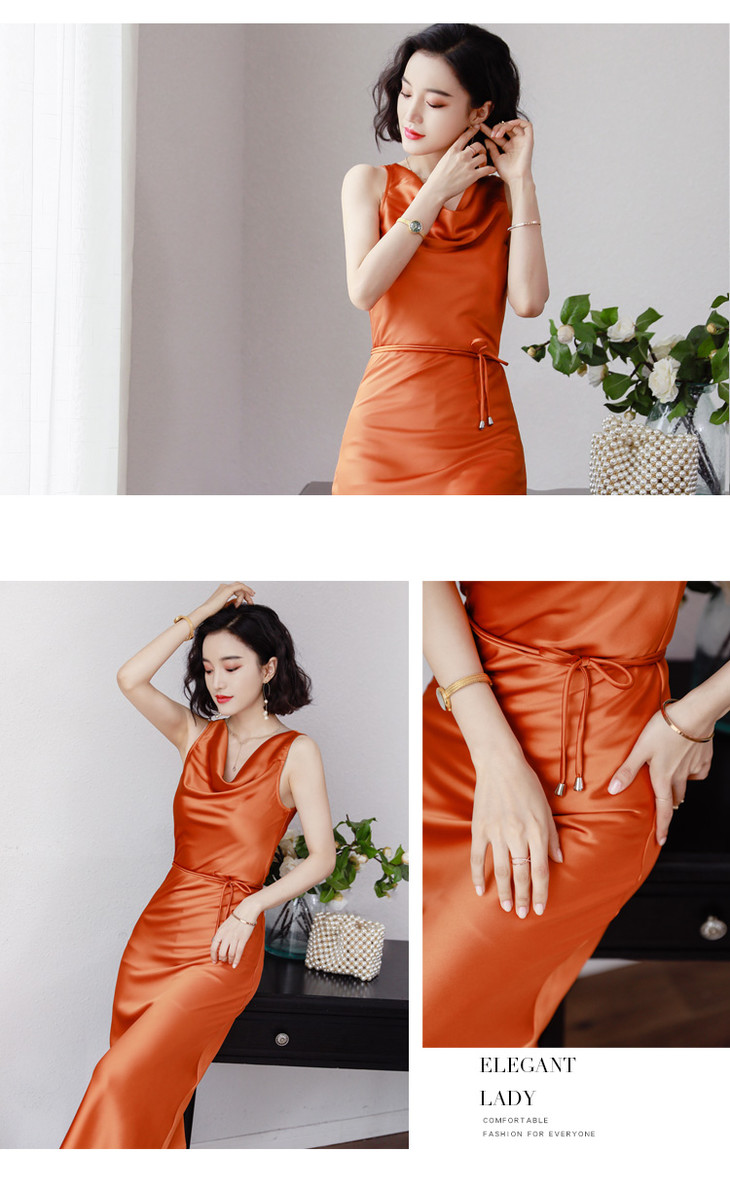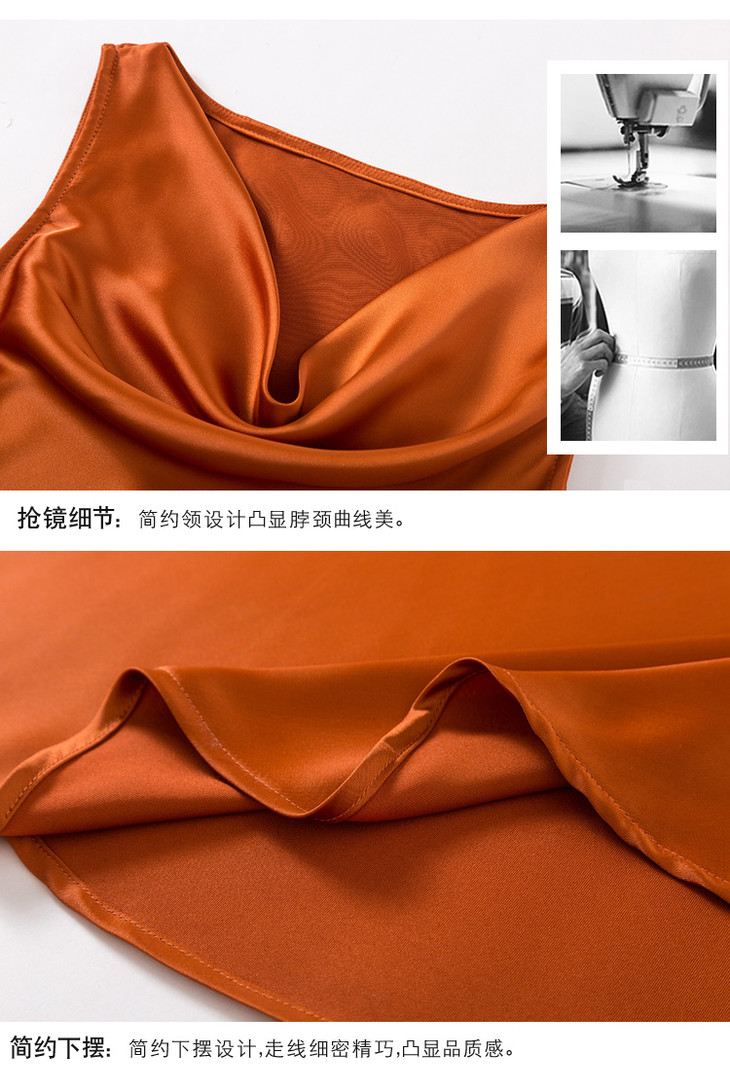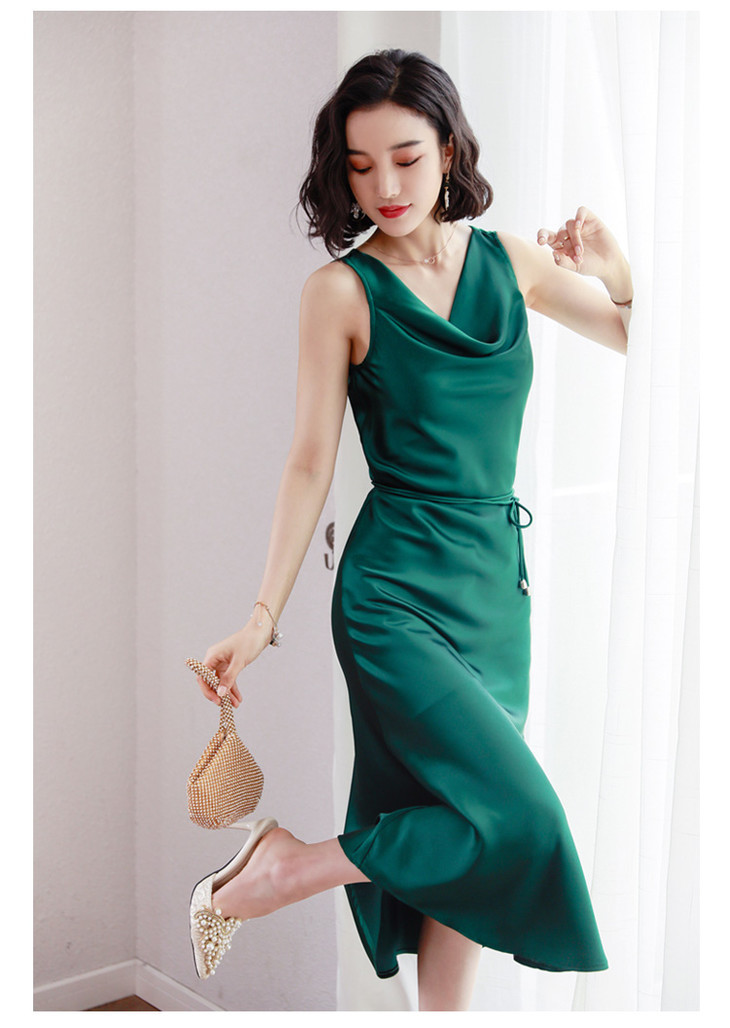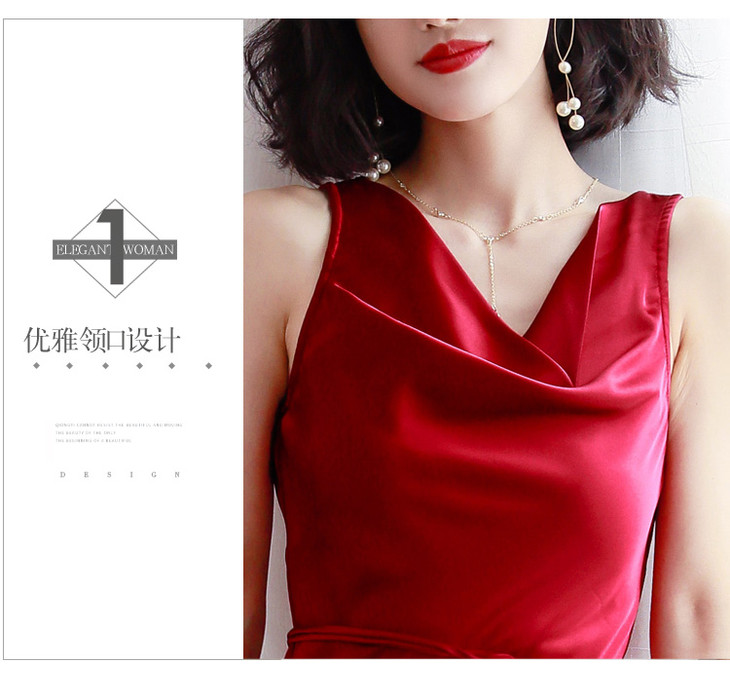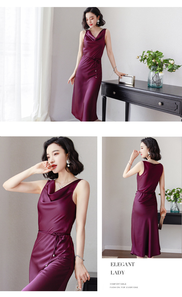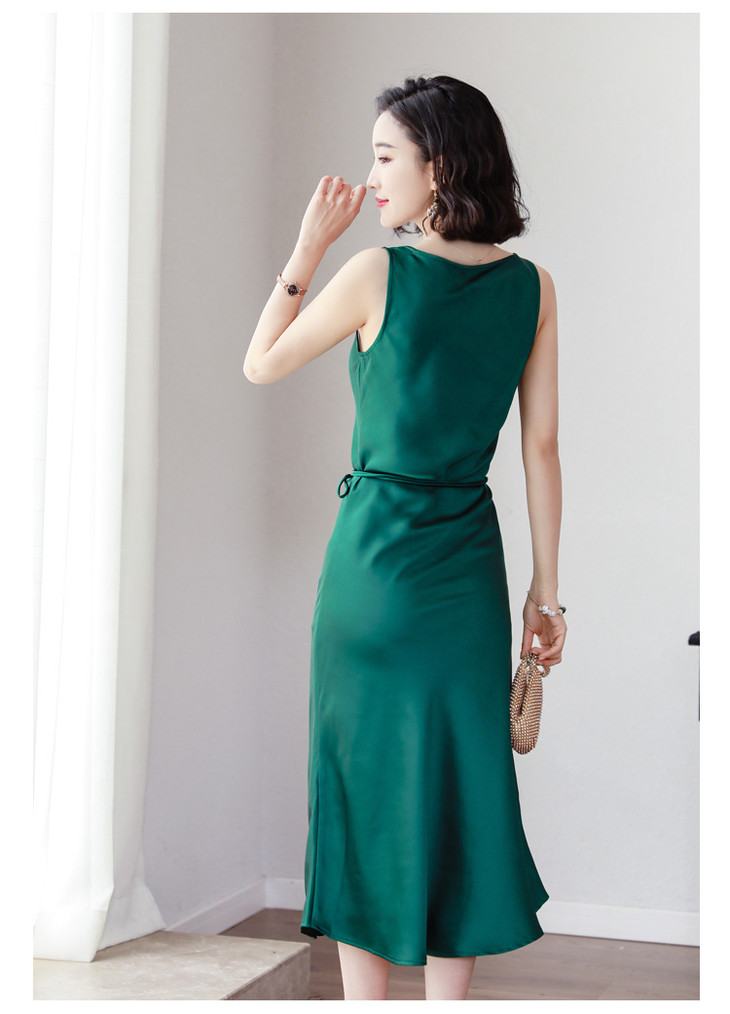 HT-1969-新款荡领显瘦气质缎面背心连衣裙