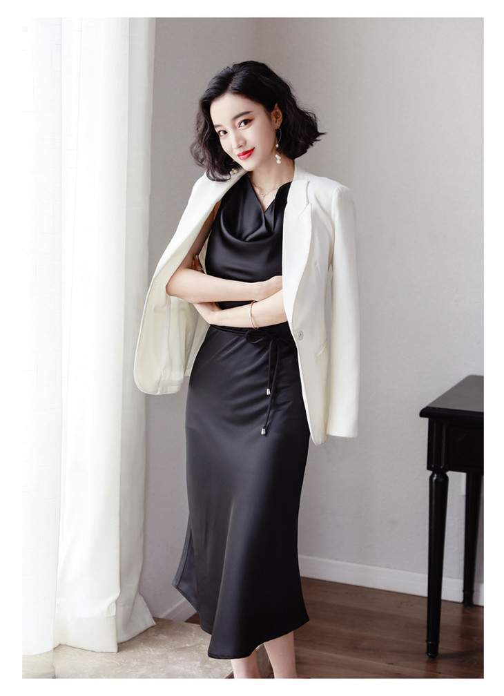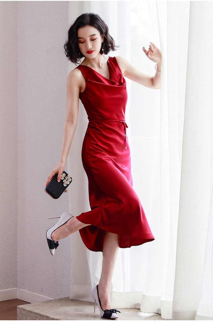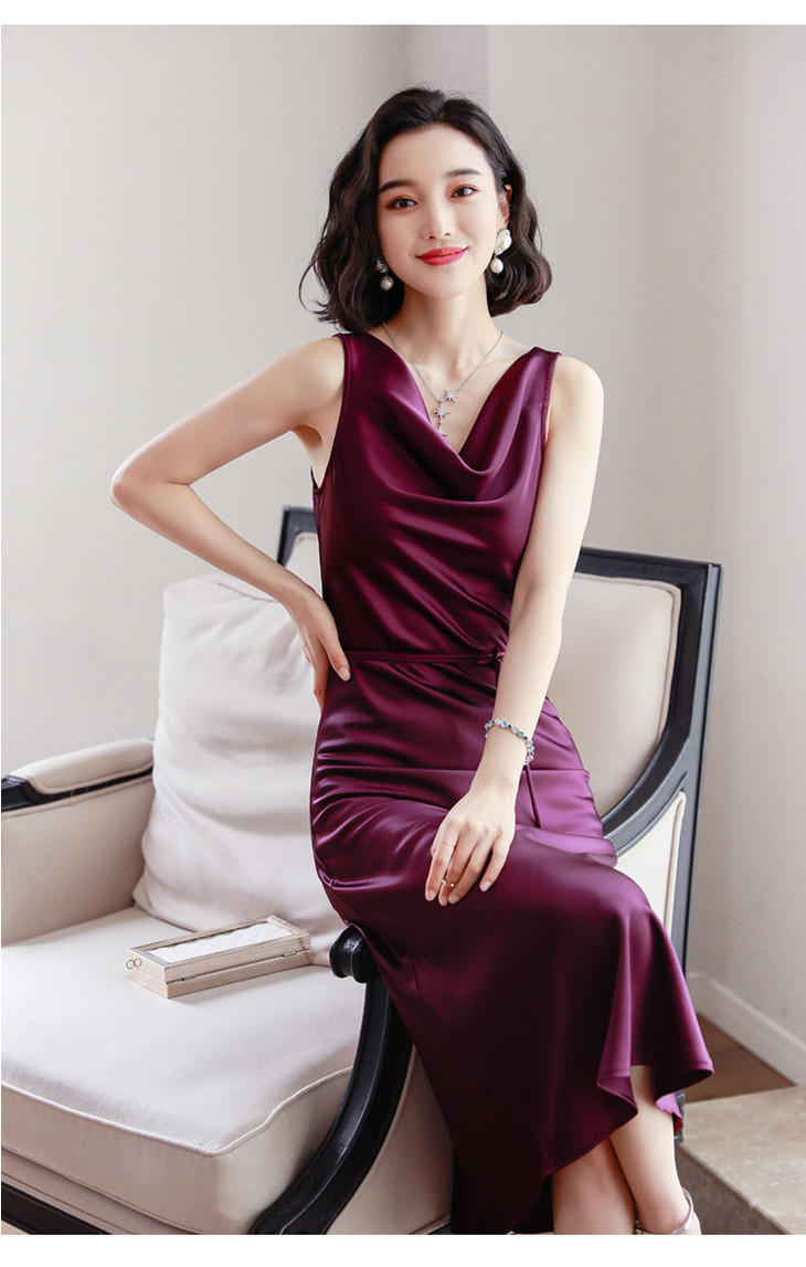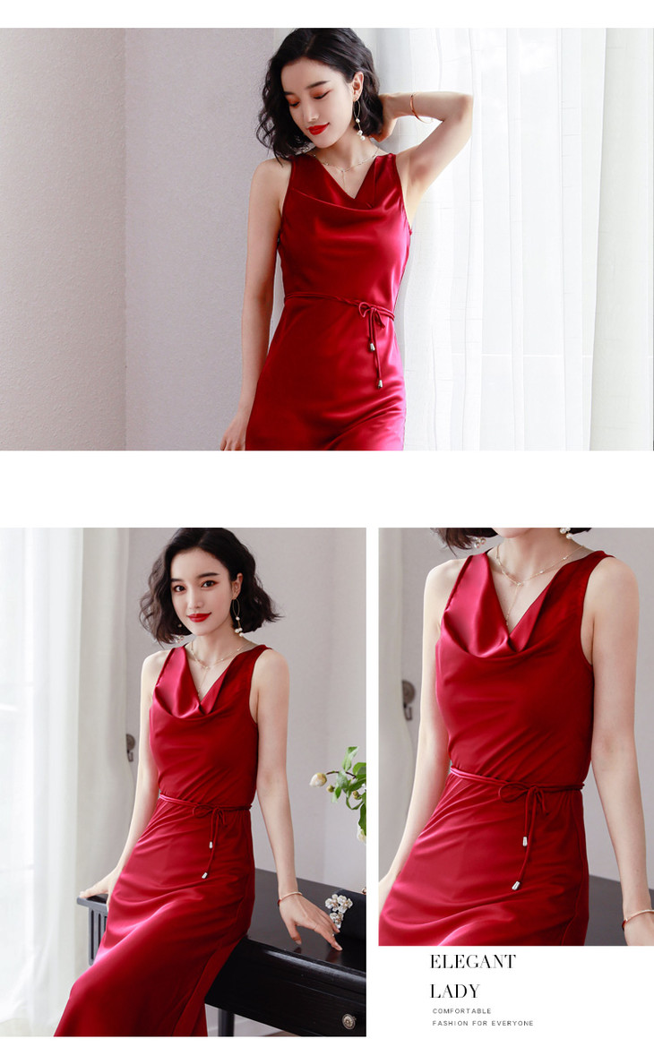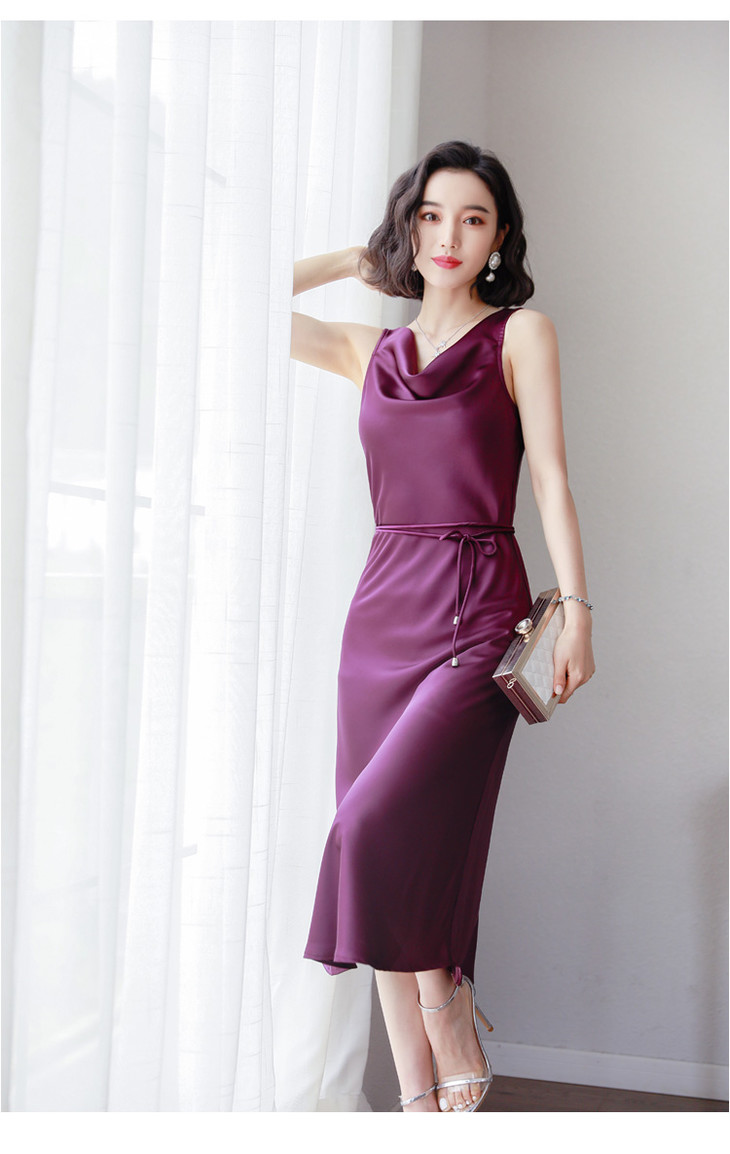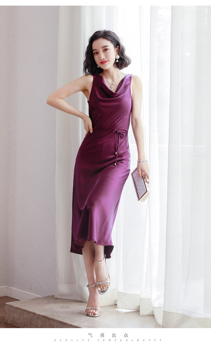 HT-1969-新款荡领显瘦气质缎面背心连衣裙
