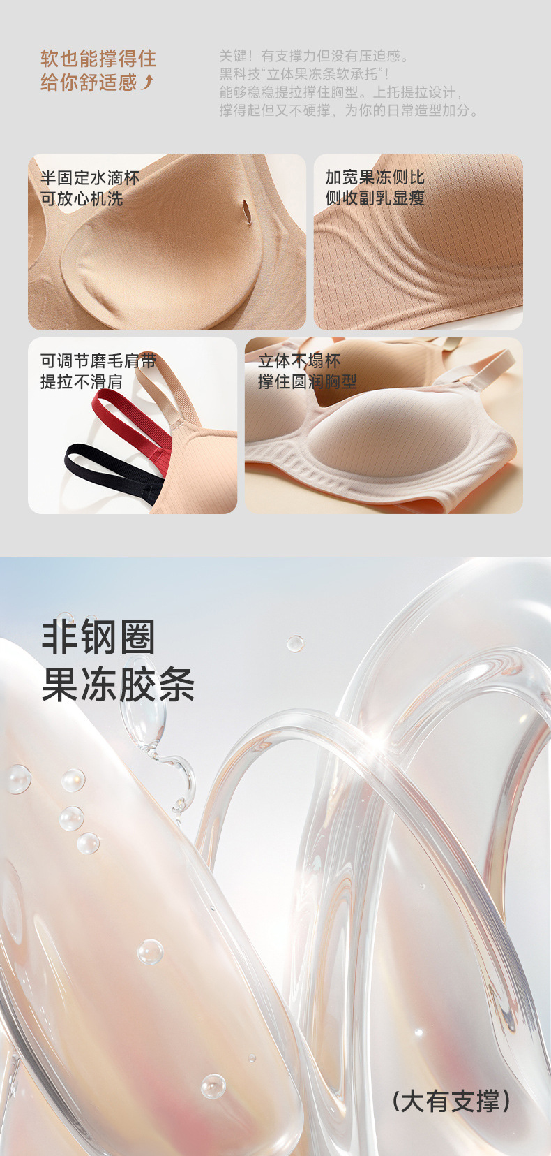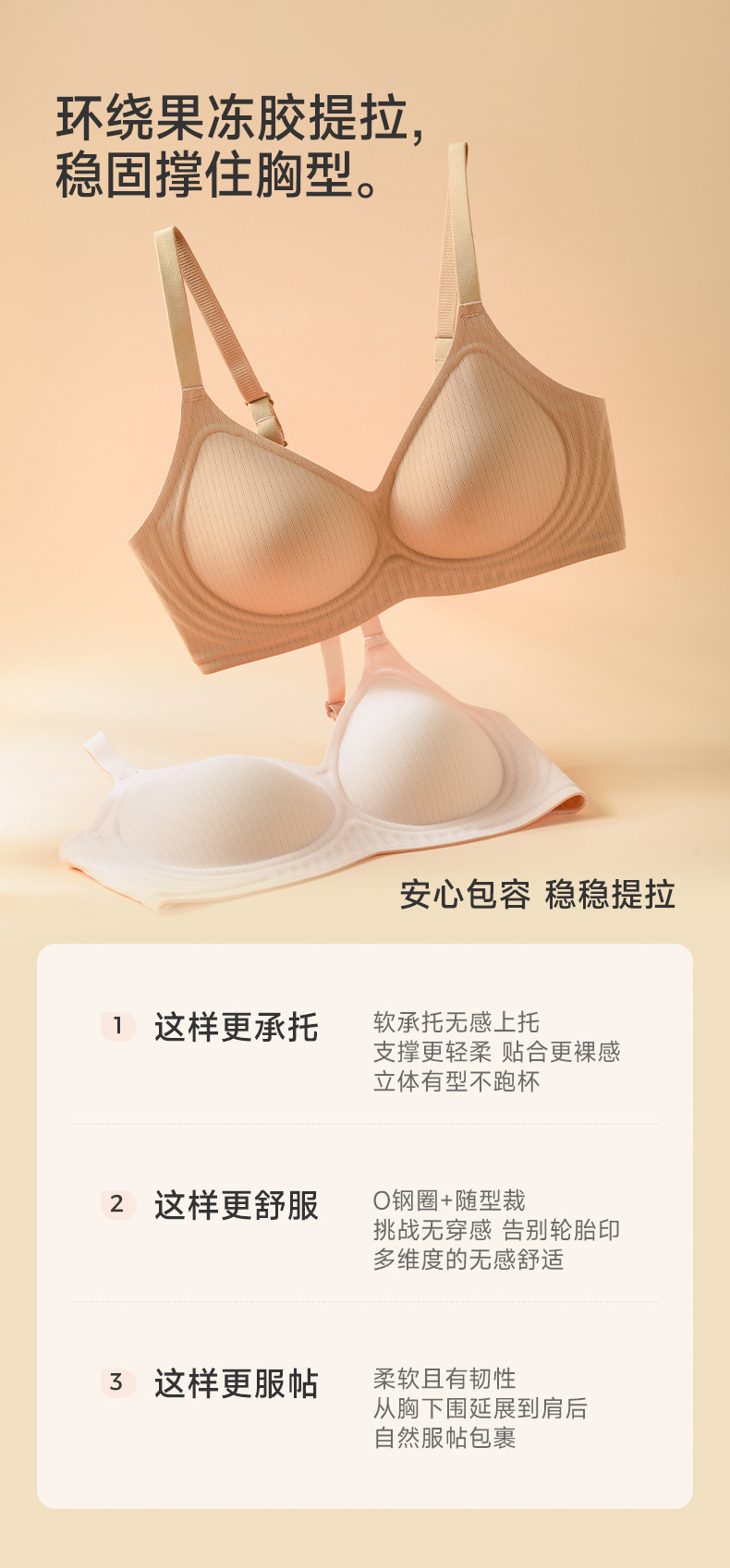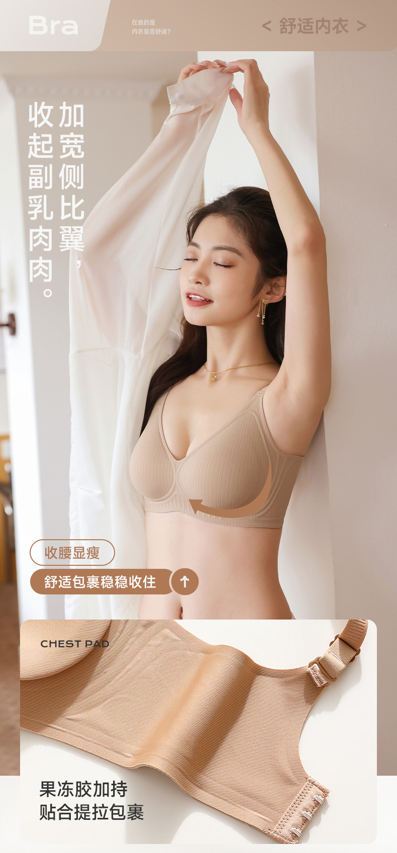 【环绕果冻胶提拉,稳固撑住胸型】无痕内衣夏季薄款 女小胸聚拢不空杯 收副乳果冻条 软支撑无钢圈文胸-QQ