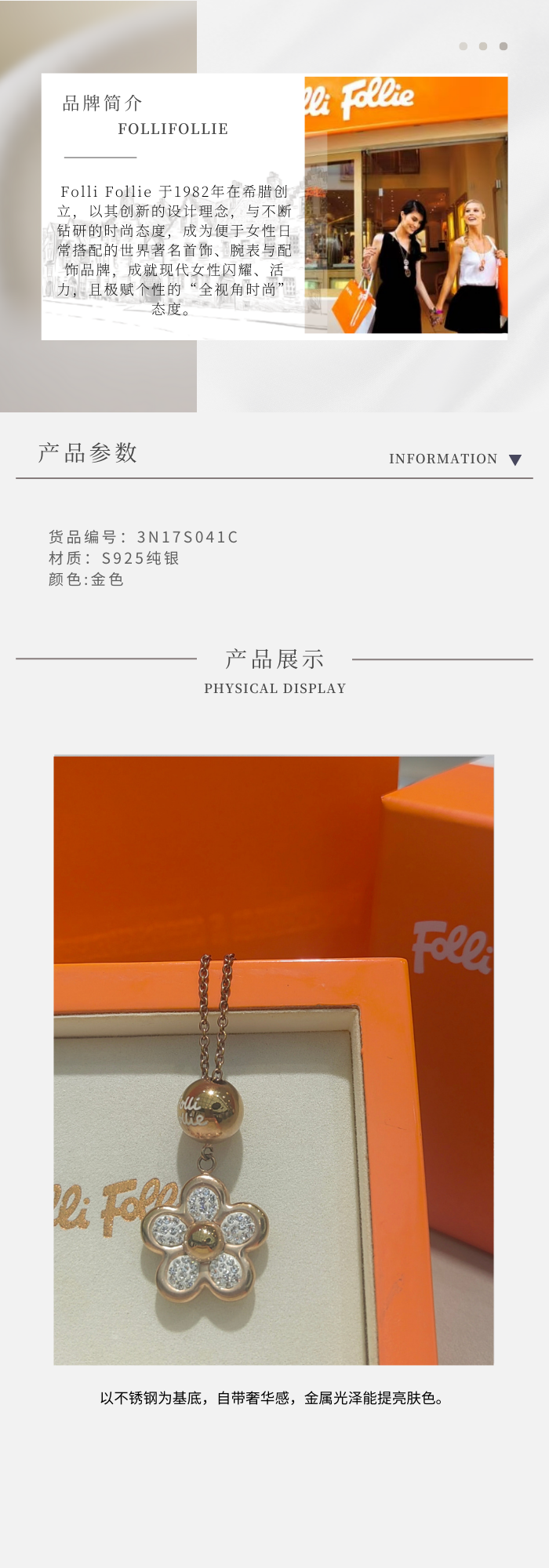 Folli Follie · 花朵带钻项链•925纯银材质•自带奢华感