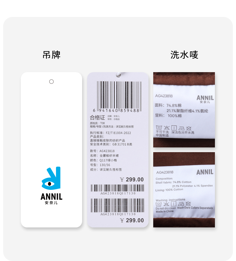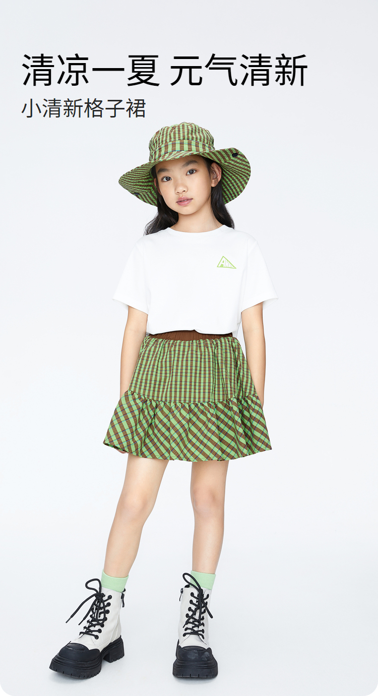 女童小清新格子裙半裙裙子新款安奈儿童装实体店同款AG423818