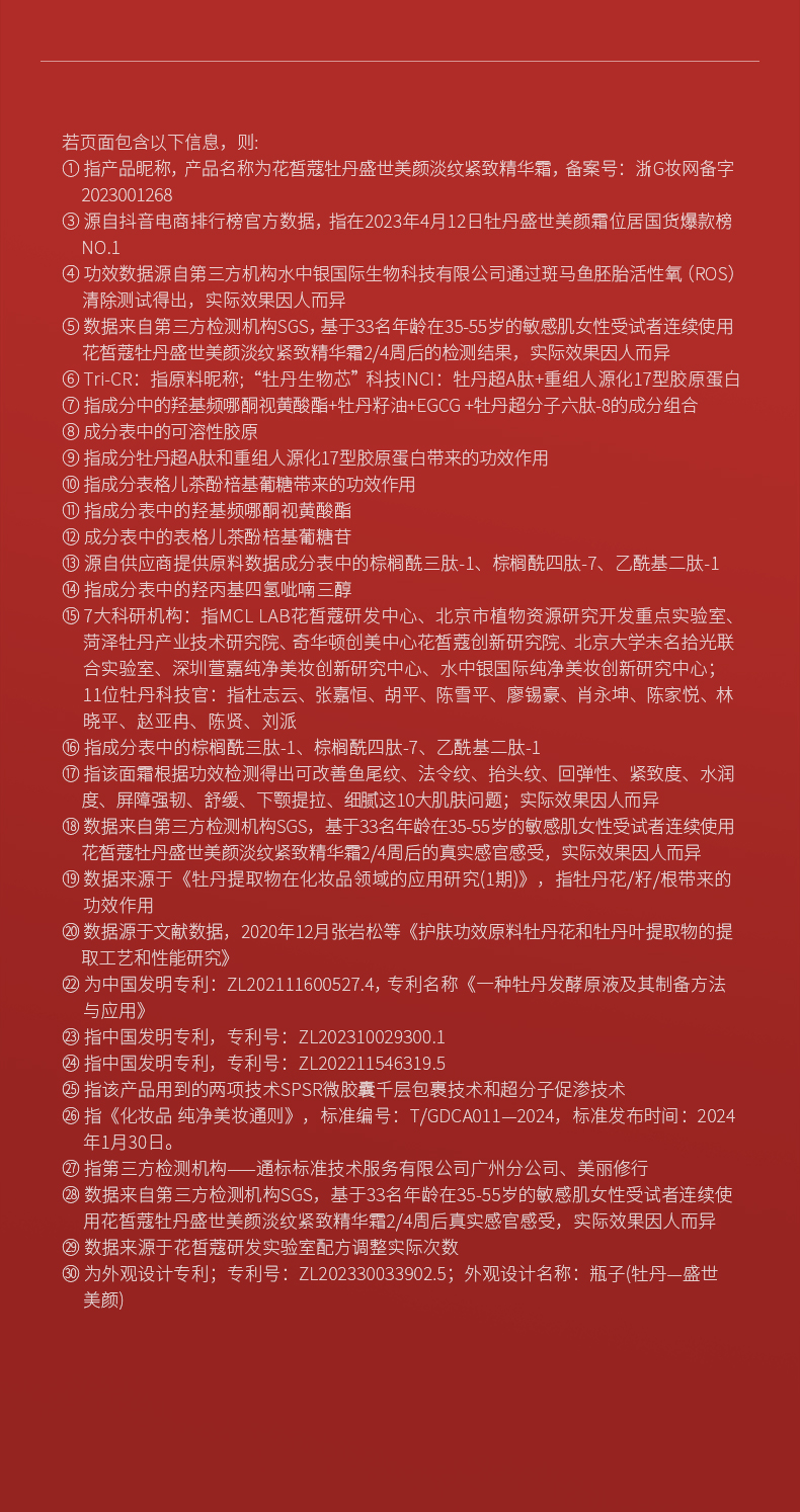 【会员购物送10倍积分】花皙蔻牡丹盛世美颜淡纹精华霜50g