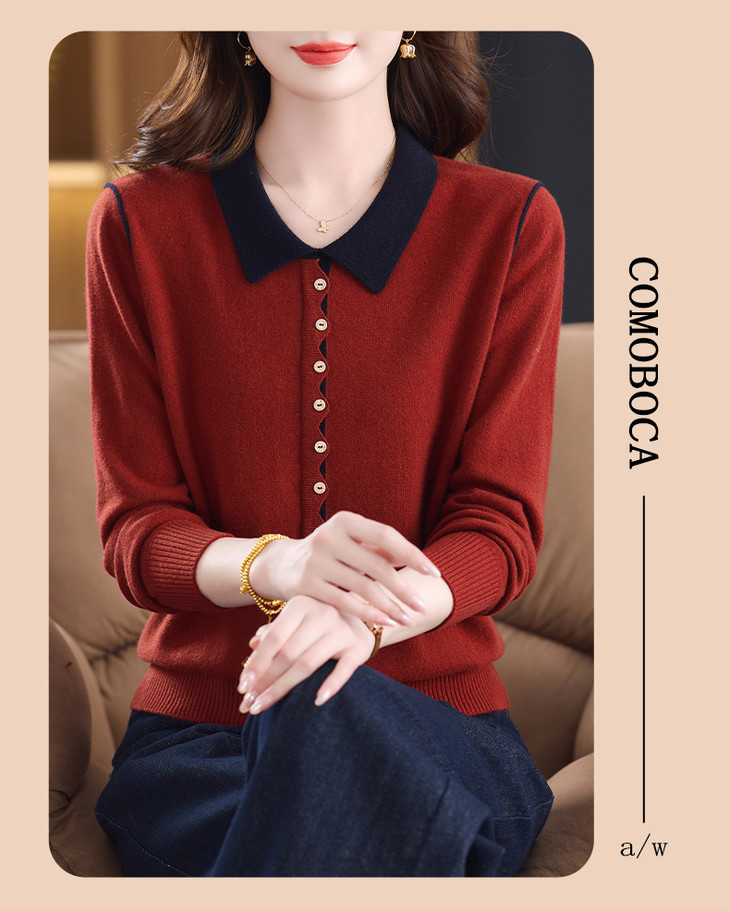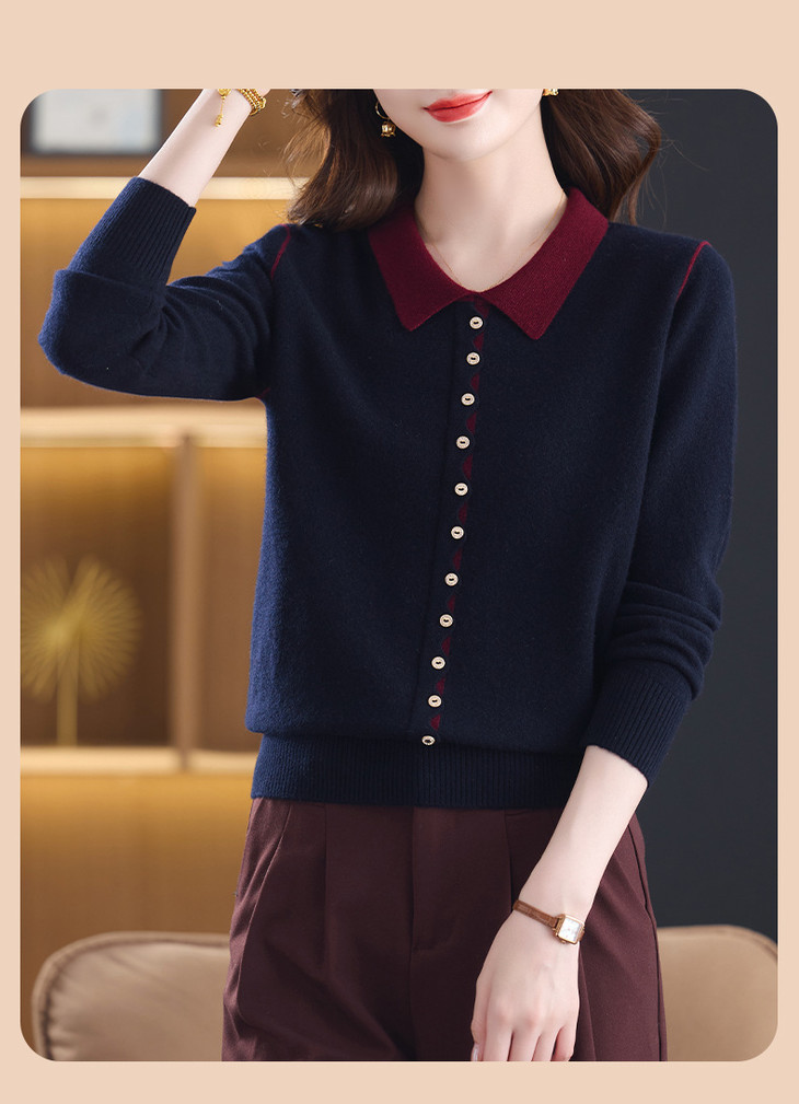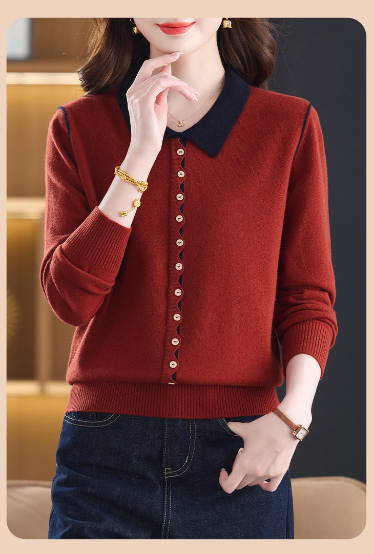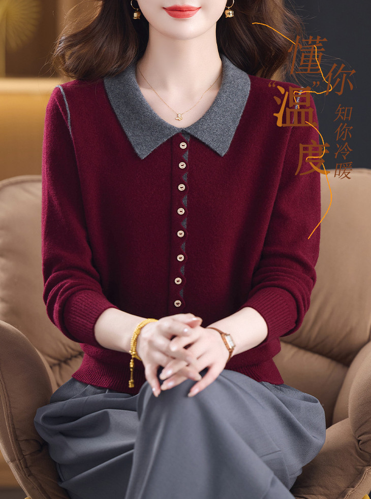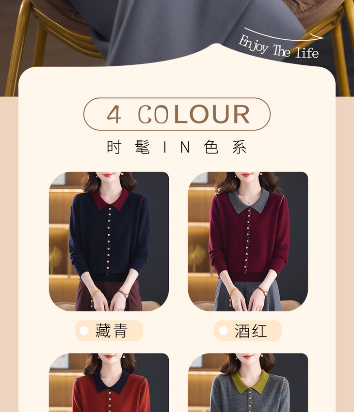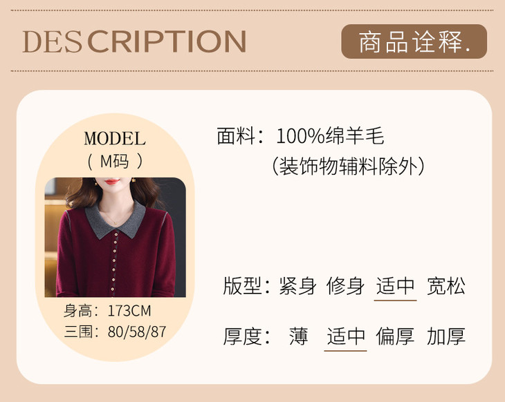娃娃领羊毛衫100纯羊毛,妈妈减龄短款打底衫上衣CC-13-96623
