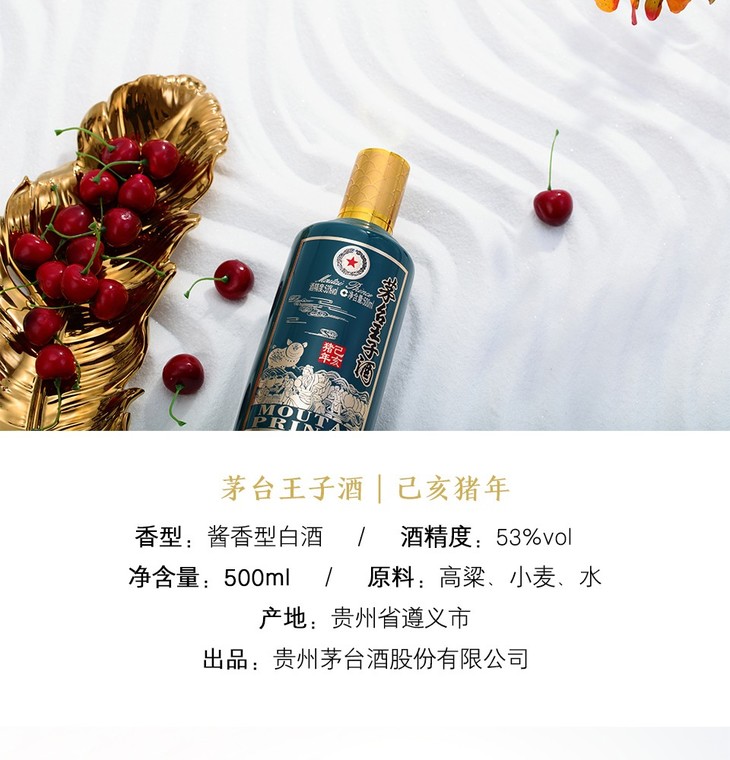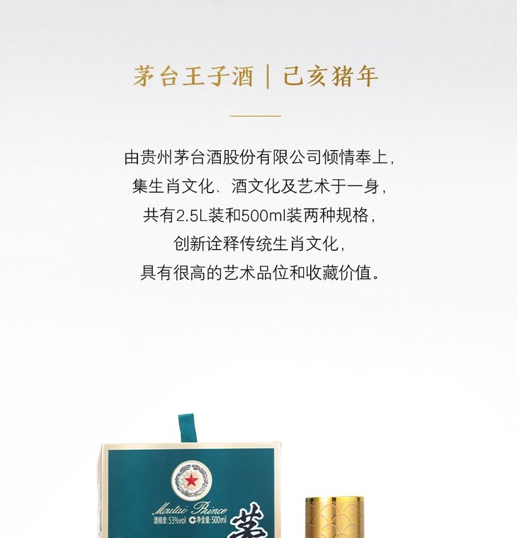 【推荐】贵州茅台酒股份有限公司出品 王子酒 猪年 53度 500ml【单瓶装】茅台王子酒 (己亥猪年)