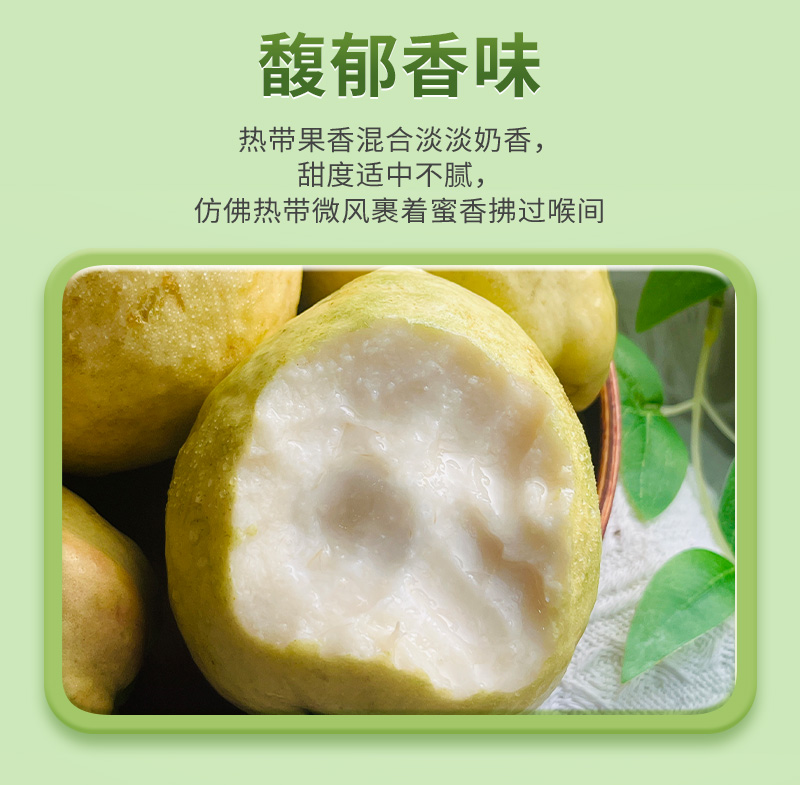 2.芭乐不分生熟,只分青黄,稍青的果子口感偏清脆爽口,泛黄的果子口感偏软,带有独特香气