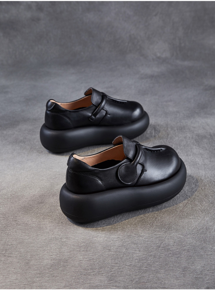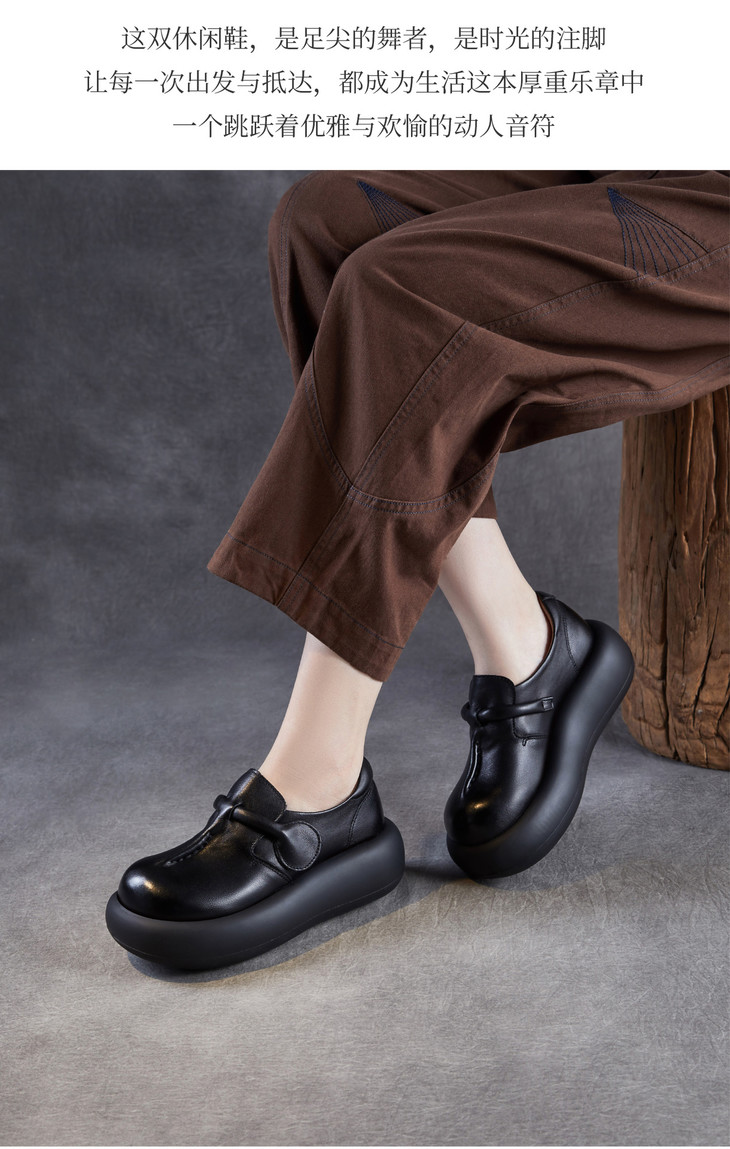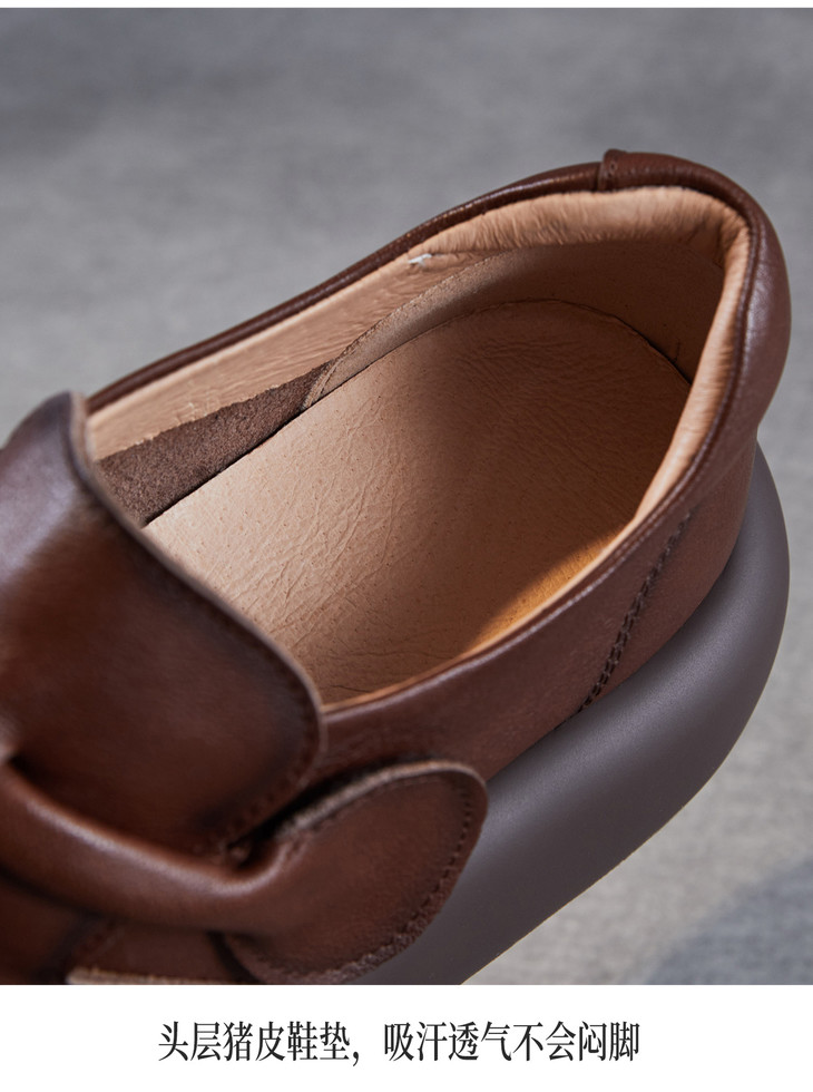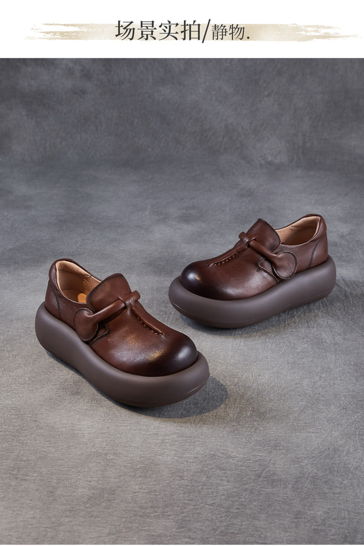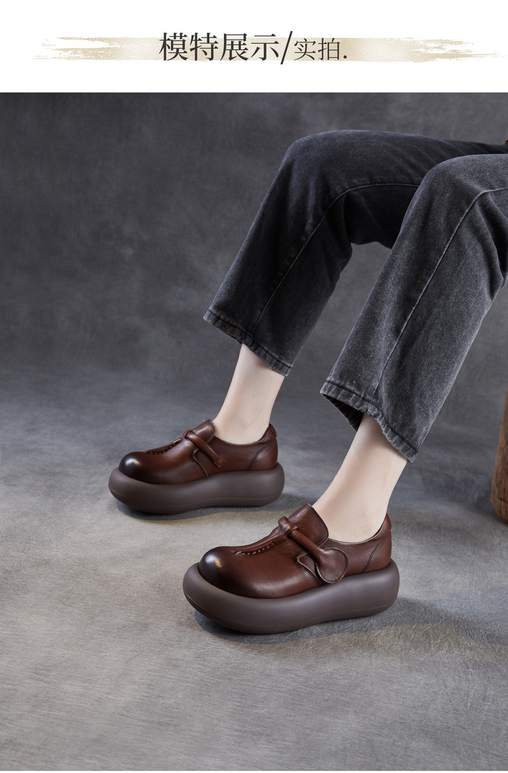 头层牛皮大头皮鞋,真皮增高厚底松糕女鞋轻便复古单鞋ZM258626