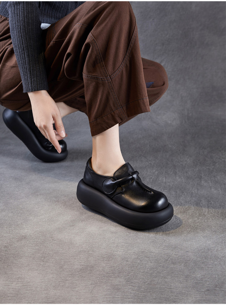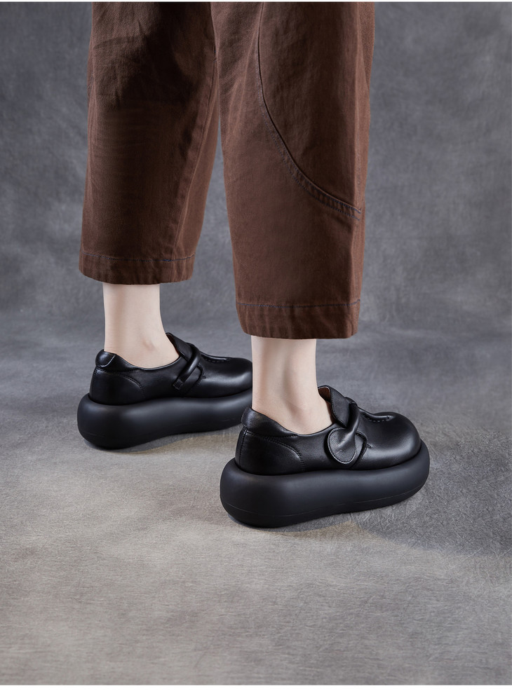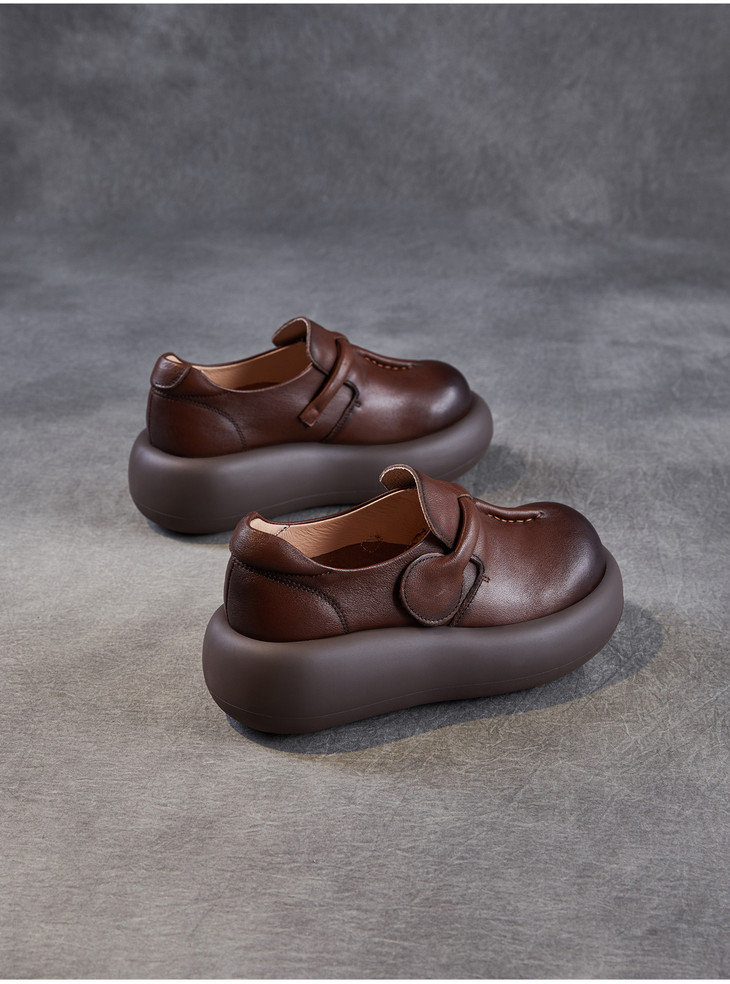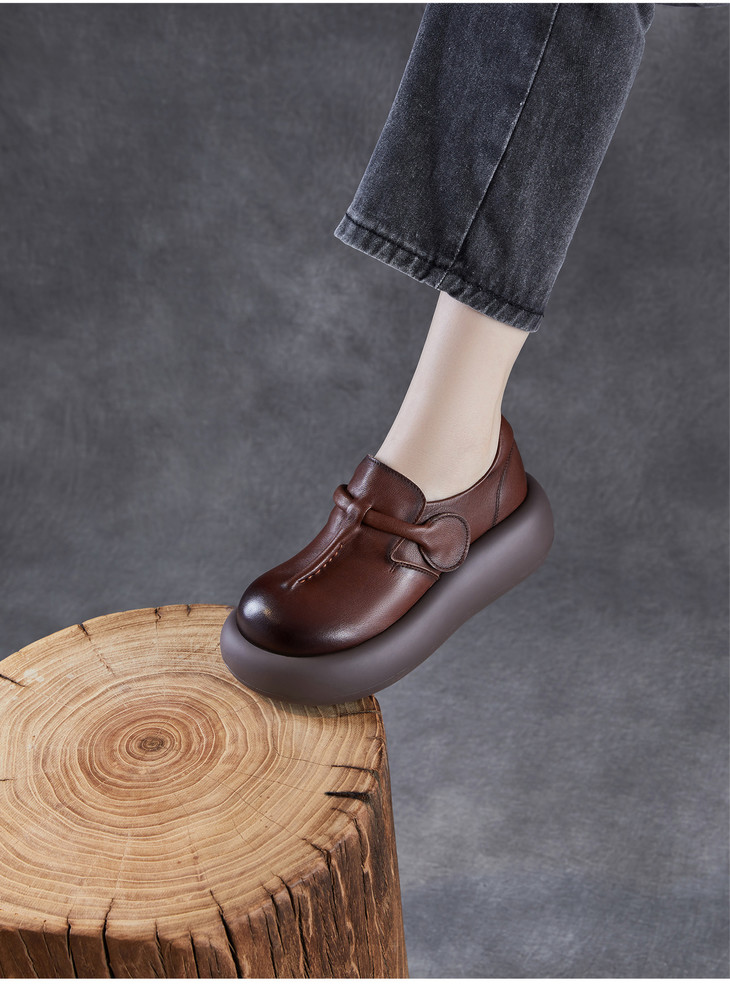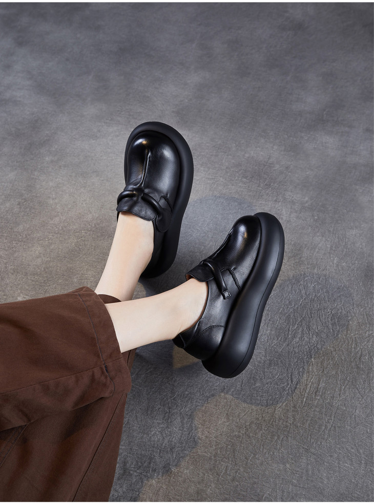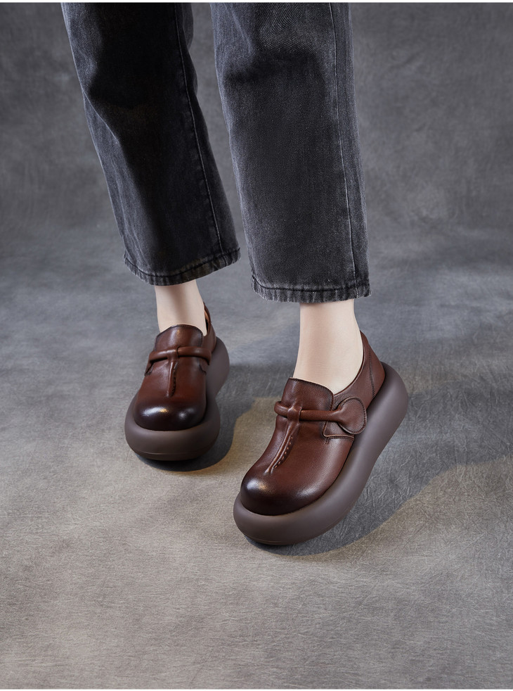头层牛皮大头皮鞋,真皮增高厚底松糕女鞋轻便复古单鞋ZM258626