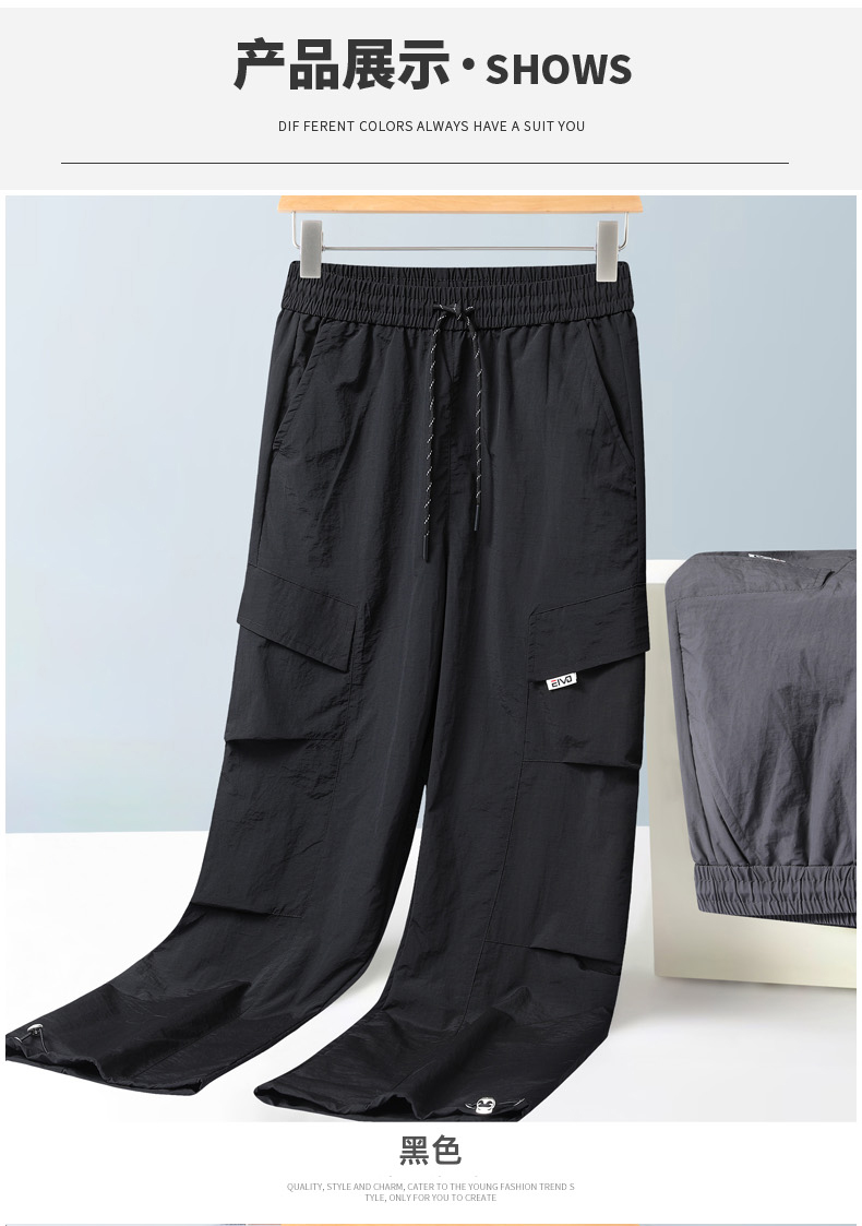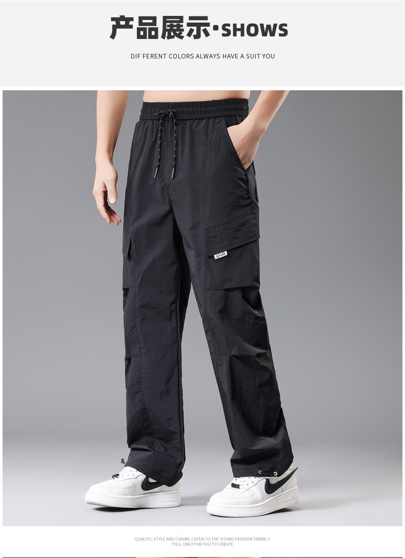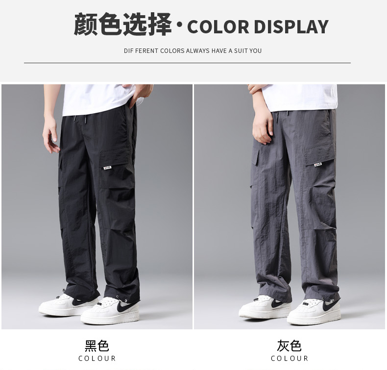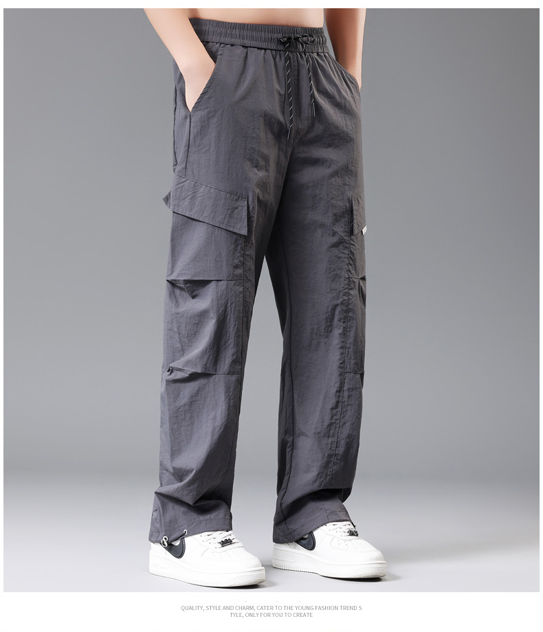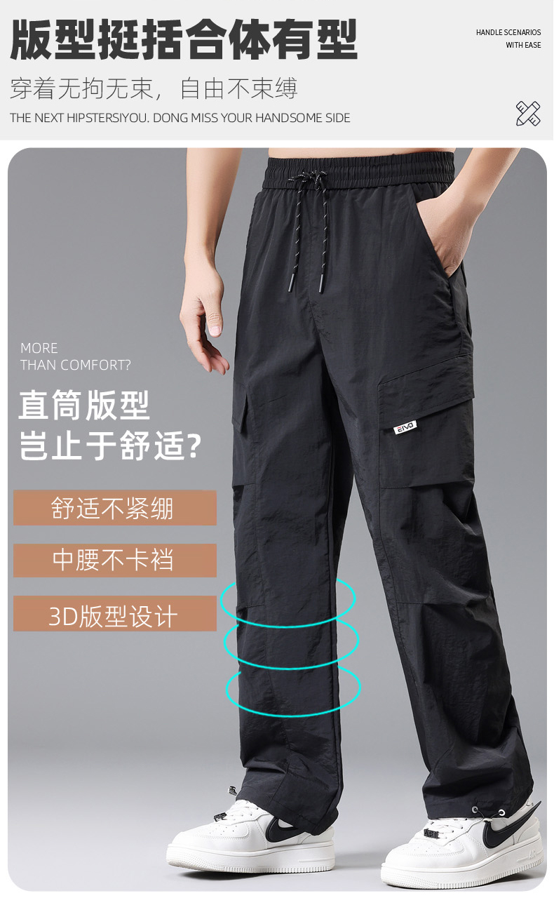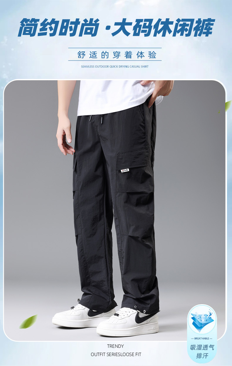 【DH】大依优型大码速干松紧腰直口休闲工装裤直筒加肥加大长裤胖子裤子夏季