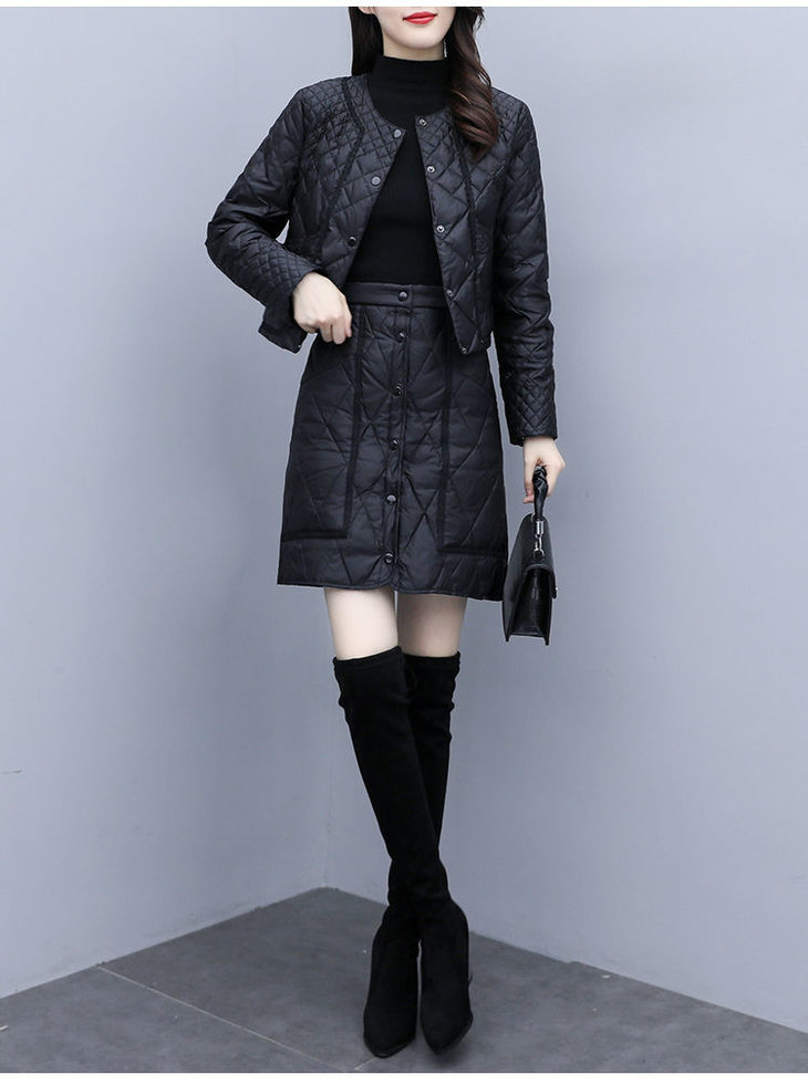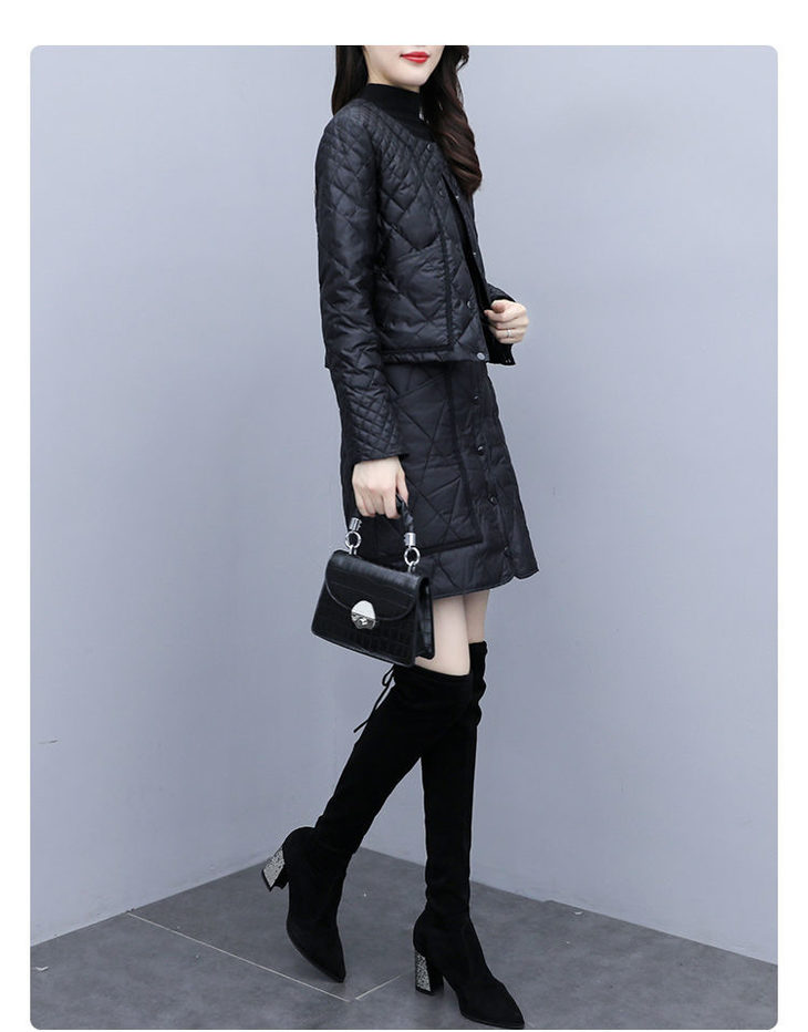 YMH92833 2021冬季新款韩版时尚名媛小香风套装裙气质羽绒棉服两件套女洋气