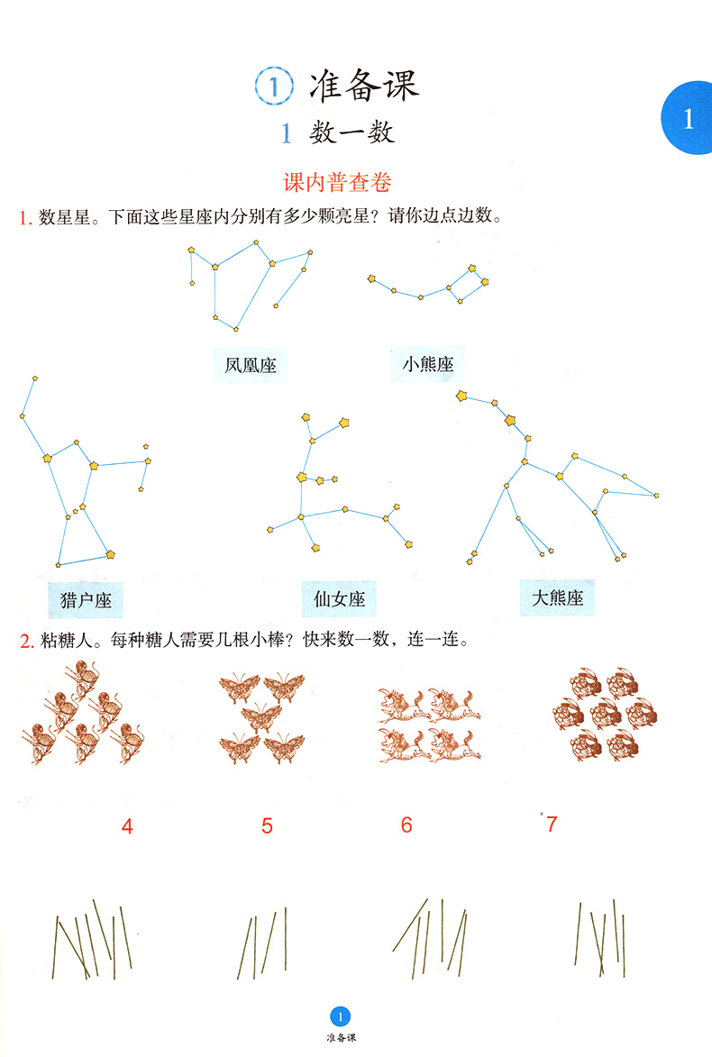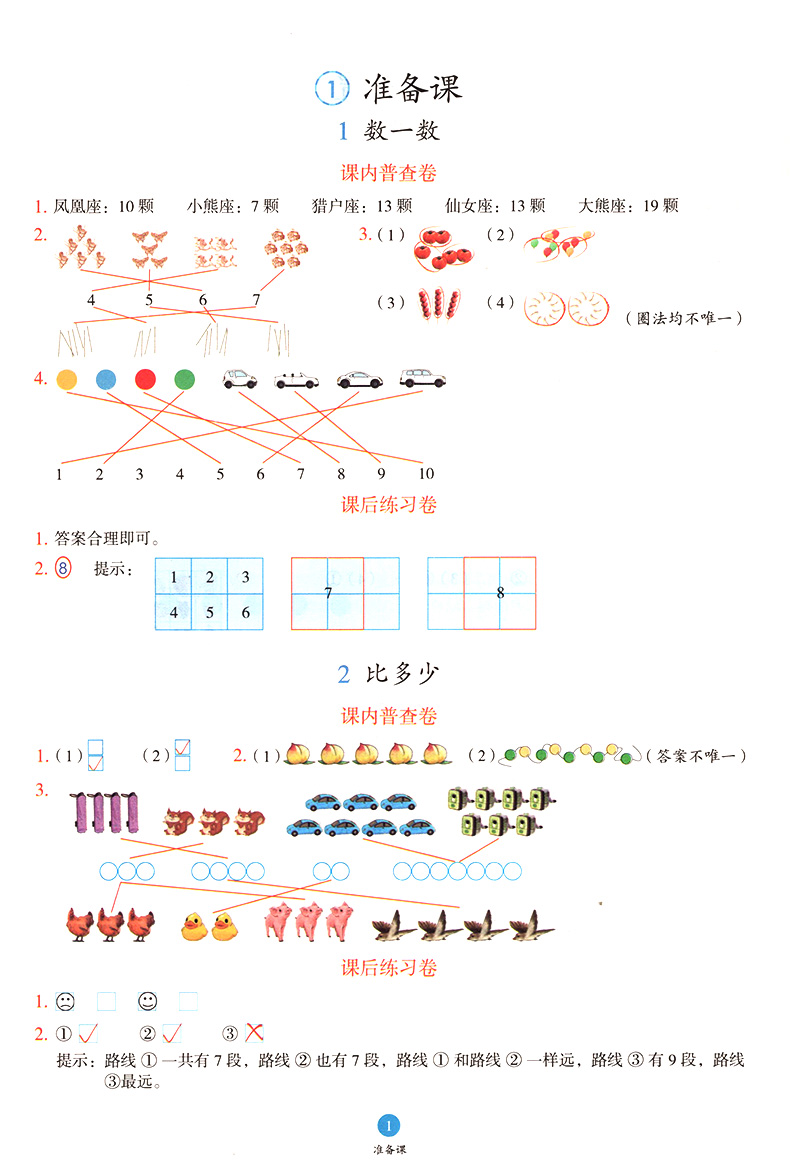 小学生绘图课堂学习书 数学一年级上册人教版第5版 全3册