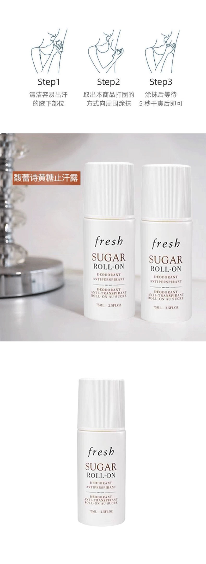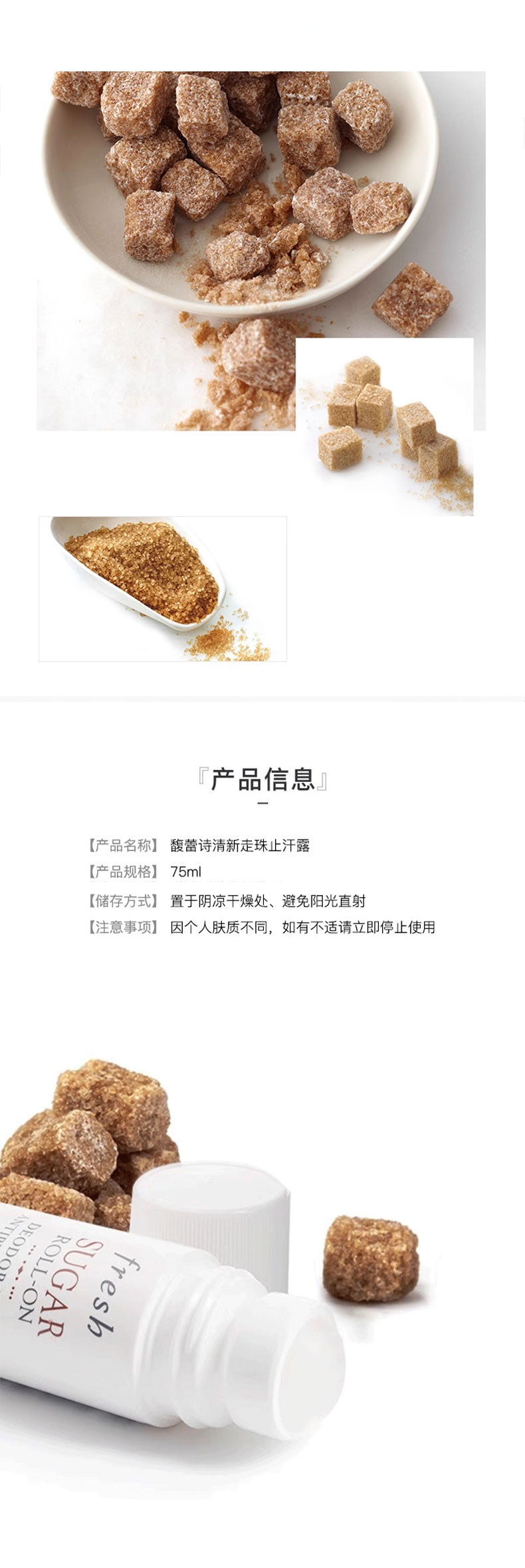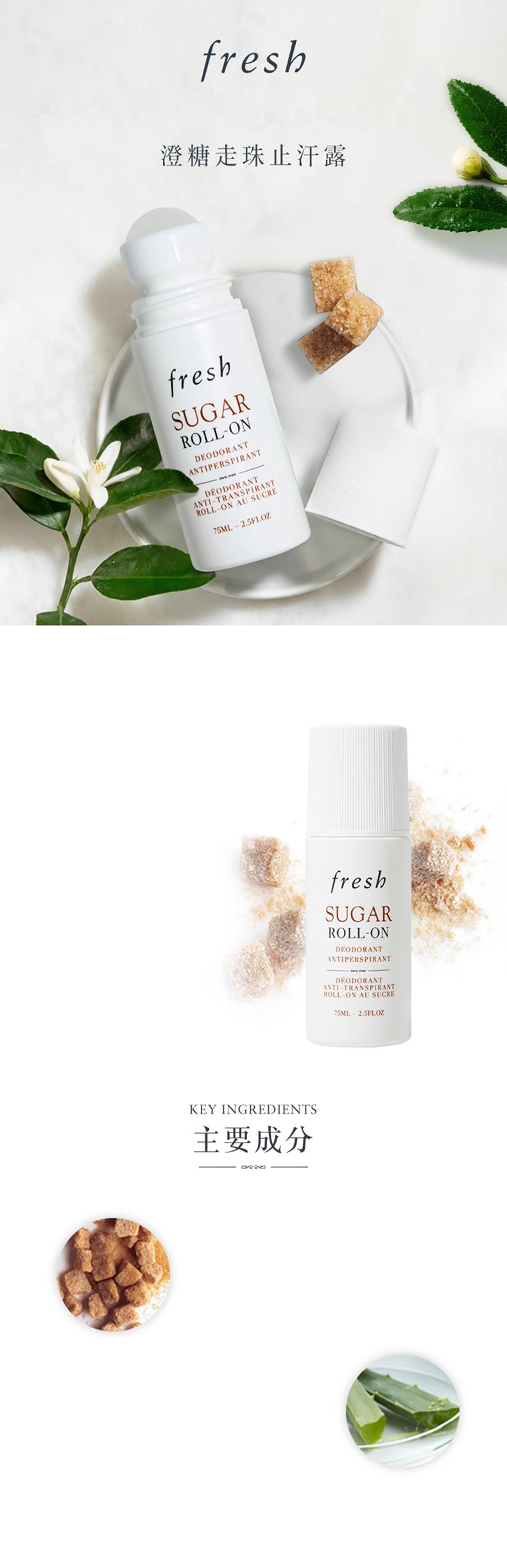 【滚珠止汗露 清晰腋下】Fresh馥蕾诗黄糖走珠止汗露75ml 新老版本随机发 一般贸易