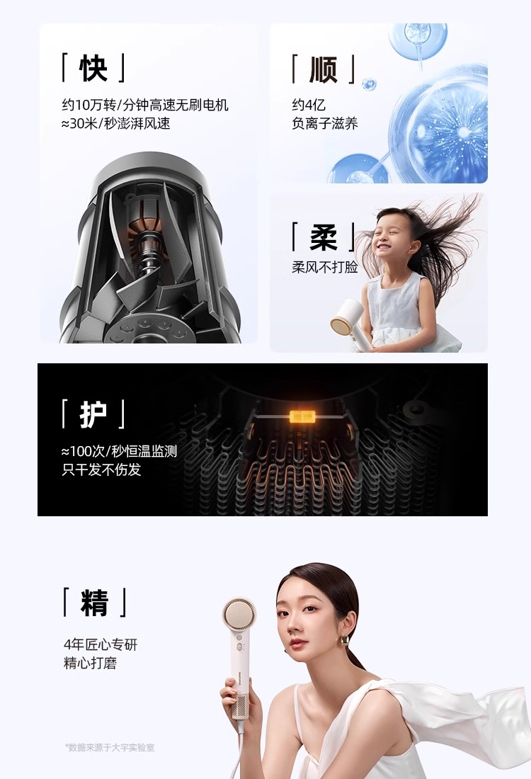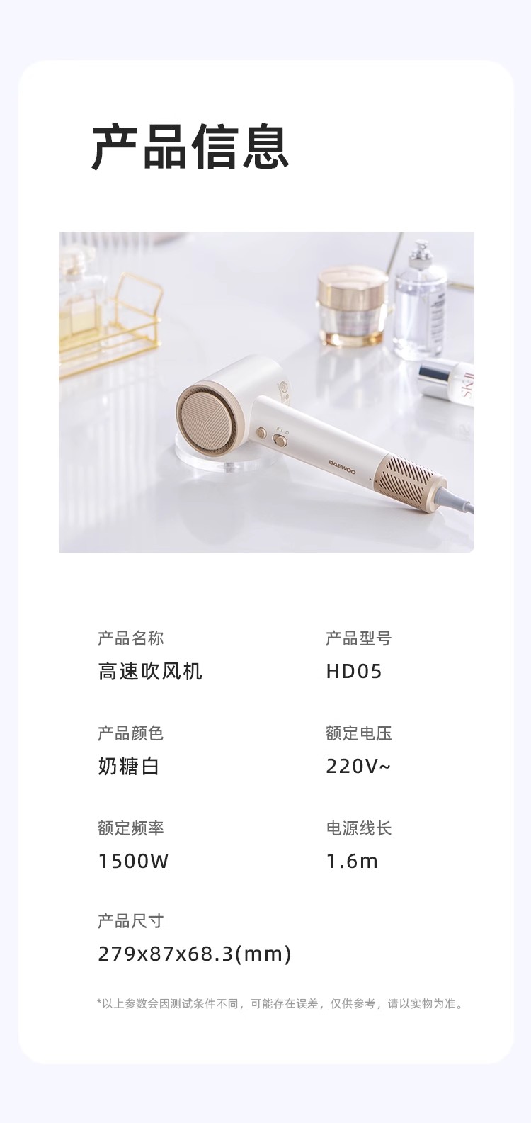 大宇高速吹风机负离子家用不伤发护发电吹风低噪速干风筒新品