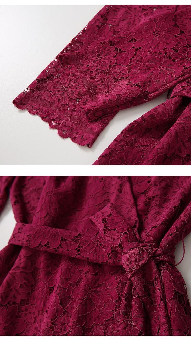 EITIE爱特爱春季新款洋气镂空蕾丝显瘦V领收腰性感连衣裙女裙6107817
