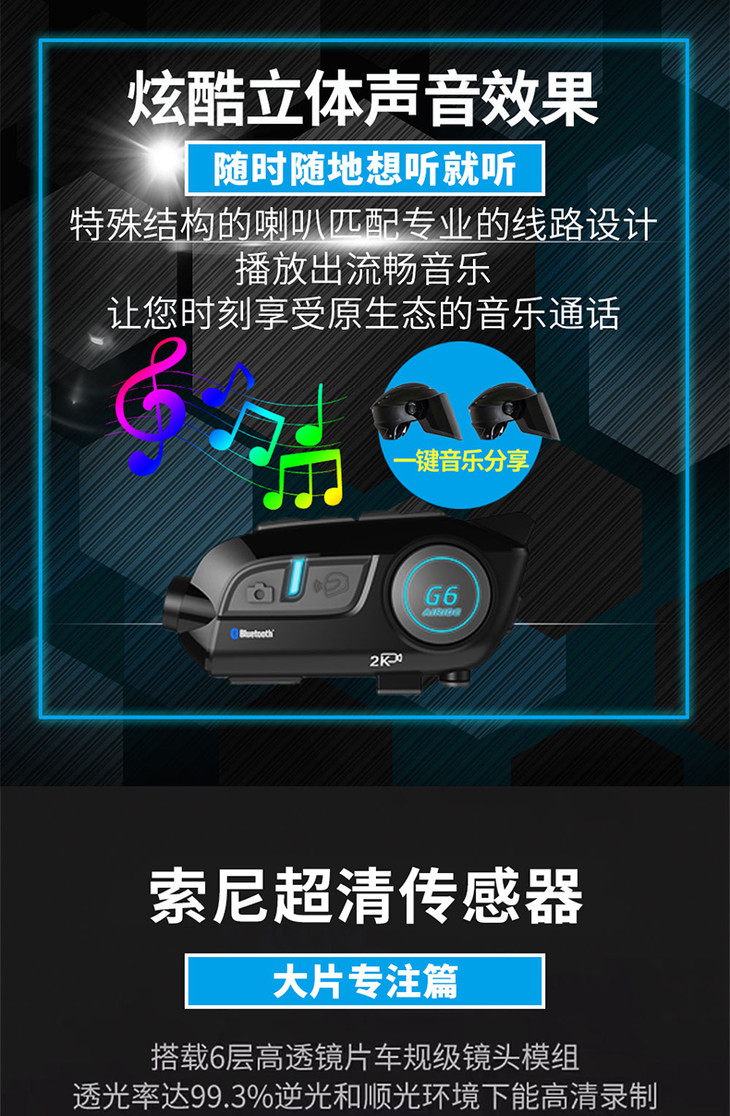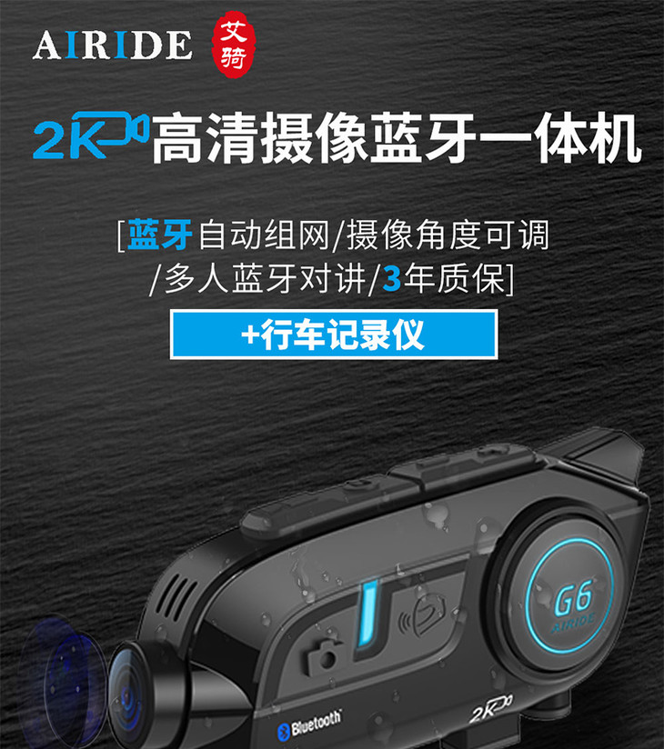 AIRIDE艾骑G6 高清摄像蓝牙一体机 行车记录仪