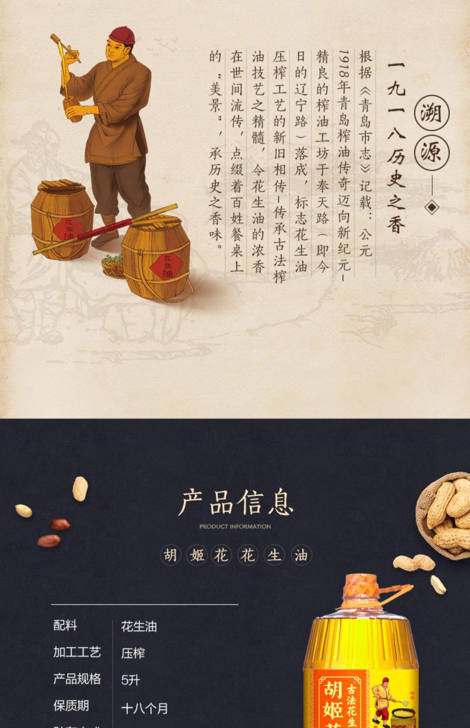胡姬花古法花生油 5L/桶家庭装营养食用油