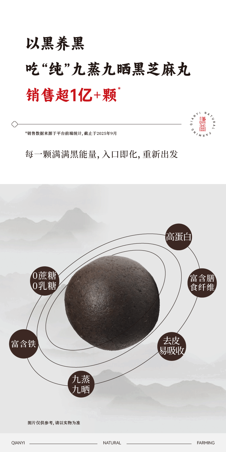 【 低GI 】谦益九蒸九晒黑芝麻丸 有机纯黑芝麻 物理去皮 入口即化 0乳糖 0蔗糖 高蛋白 富含膳食纤维