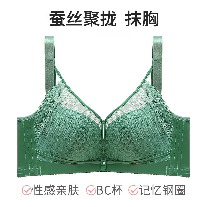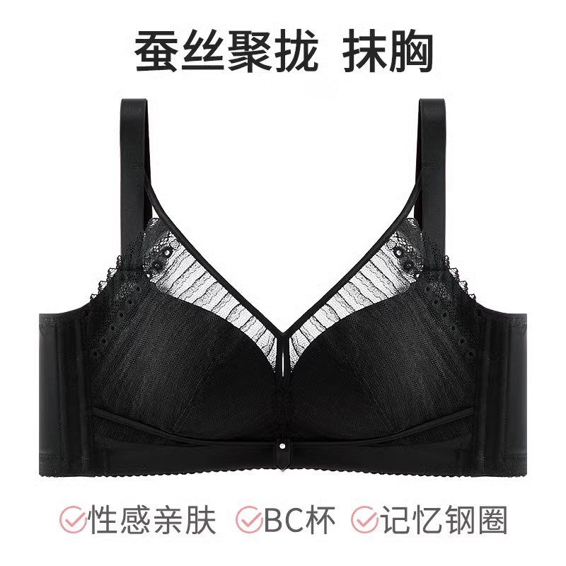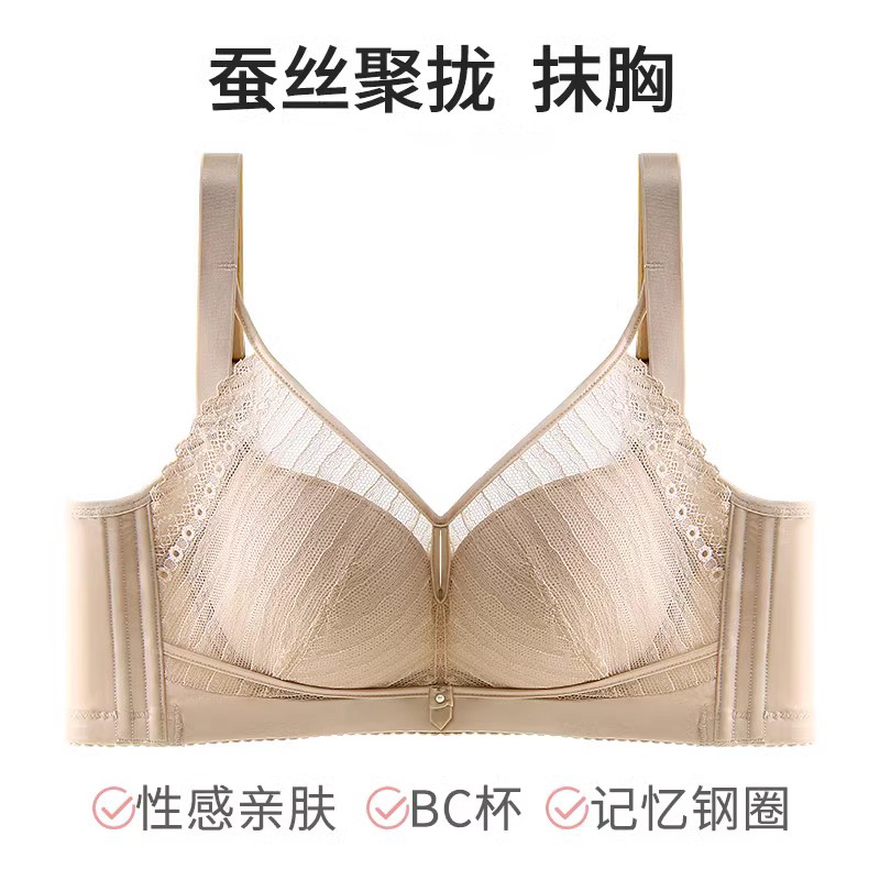 XDE-Q92925 天然健康聚拢防下垂收副乳记忆镍钛金圈薄款定型杯桑蚕丝蛋白抹胸女士内衣(单件)