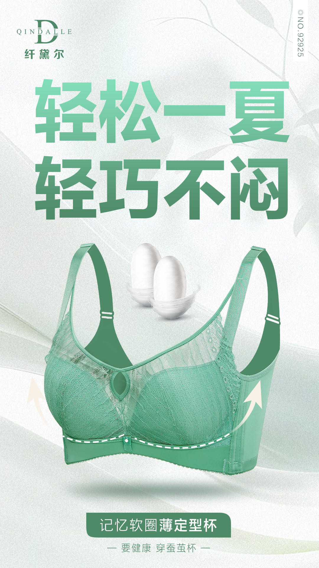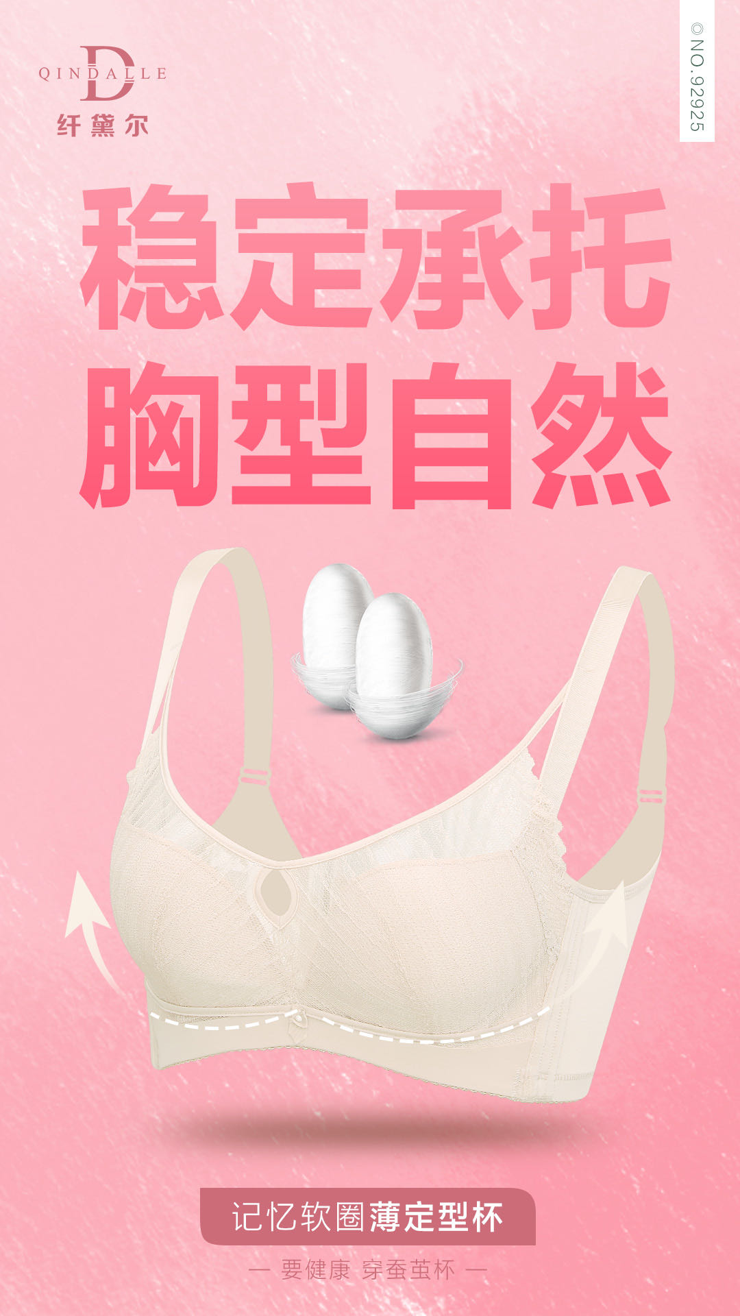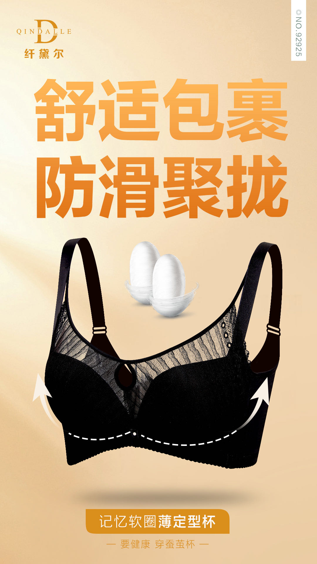 天然环保健康材料,蚕茧其中可降解特性,可以排除残留在内衣模杯上的垃圾毒素,所以蚕茧模杯可以做到7天无异味,180天不发黄,安全呵护女性乳房健康。