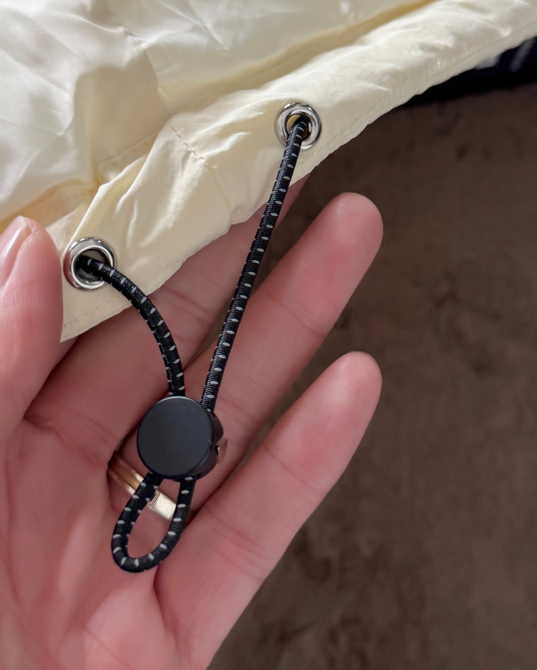 -两侧口袋拉链设计,口袋里还有隐藏式手机袋,设计贴心!包含腰围与即下摆都可调节松紧效果。可说只有大厂才会有的细节都注意到!一件品质要过关必须经过QC把控