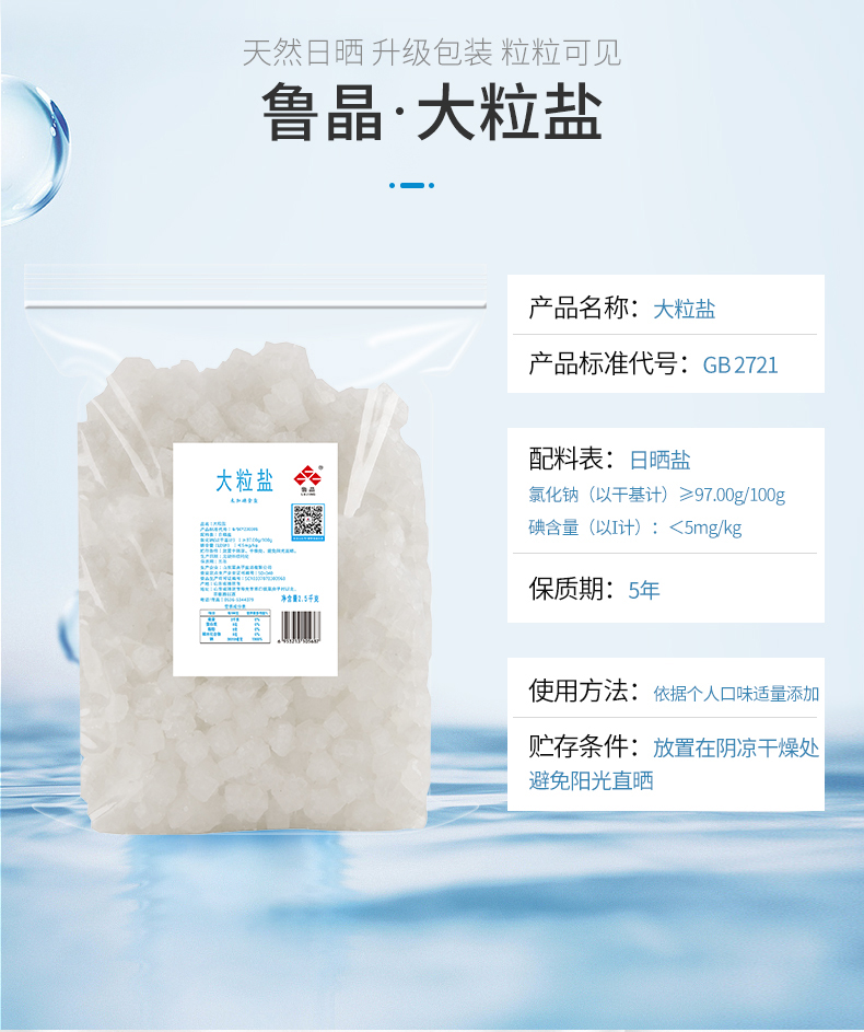 上新 鲁晶大粒盐2.5kg日晒大粒盐五斤食品级大颗粒粗盐焗热敷净化