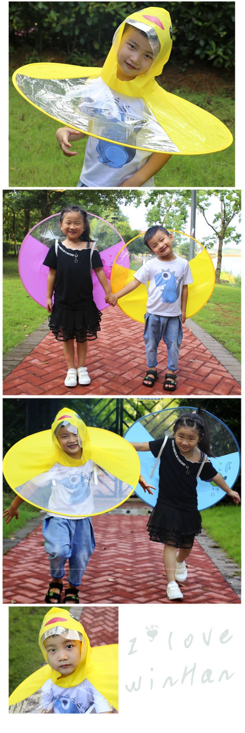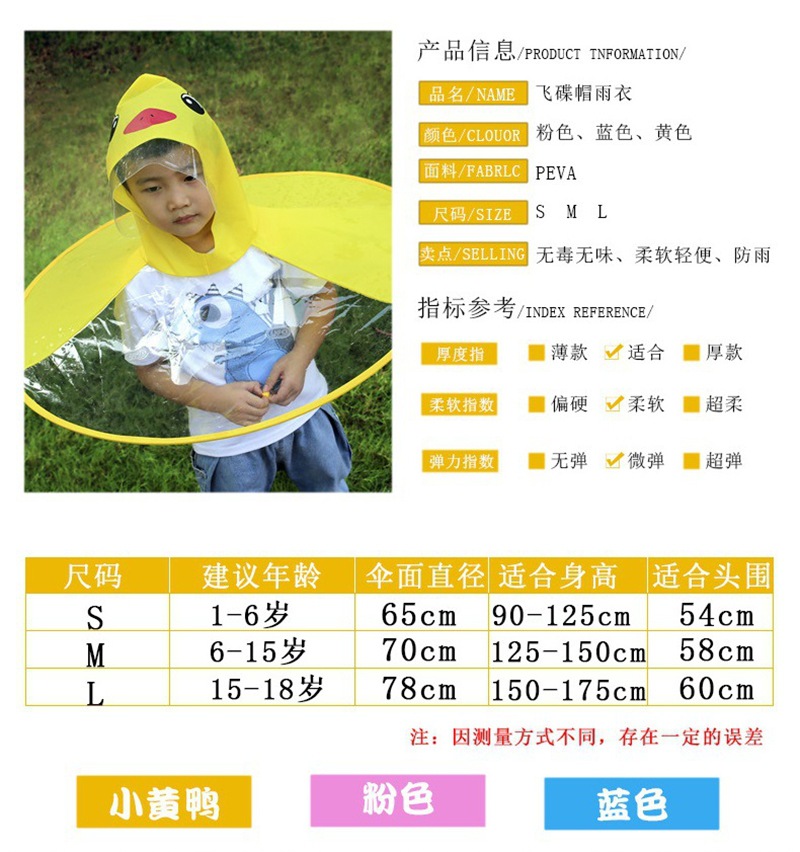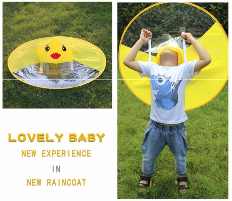 【解放双手❗让孩子自由玩耍】小黄鸭宝宝雨衣飞碟雨衣户外斗篷式透明防水雨衣抖音同款。rh