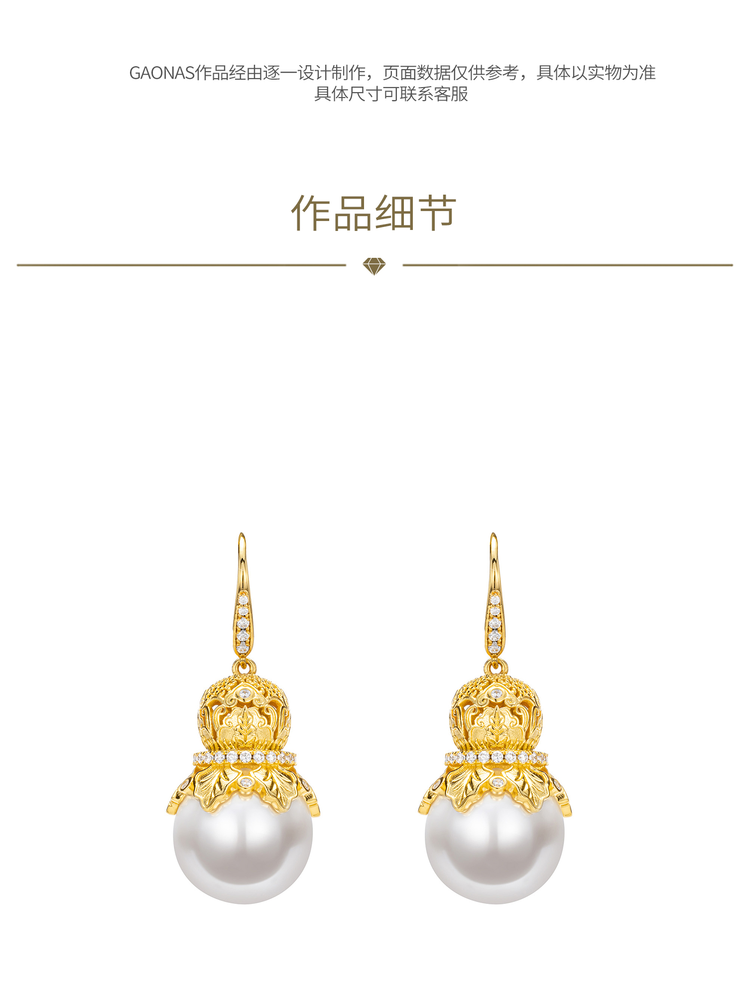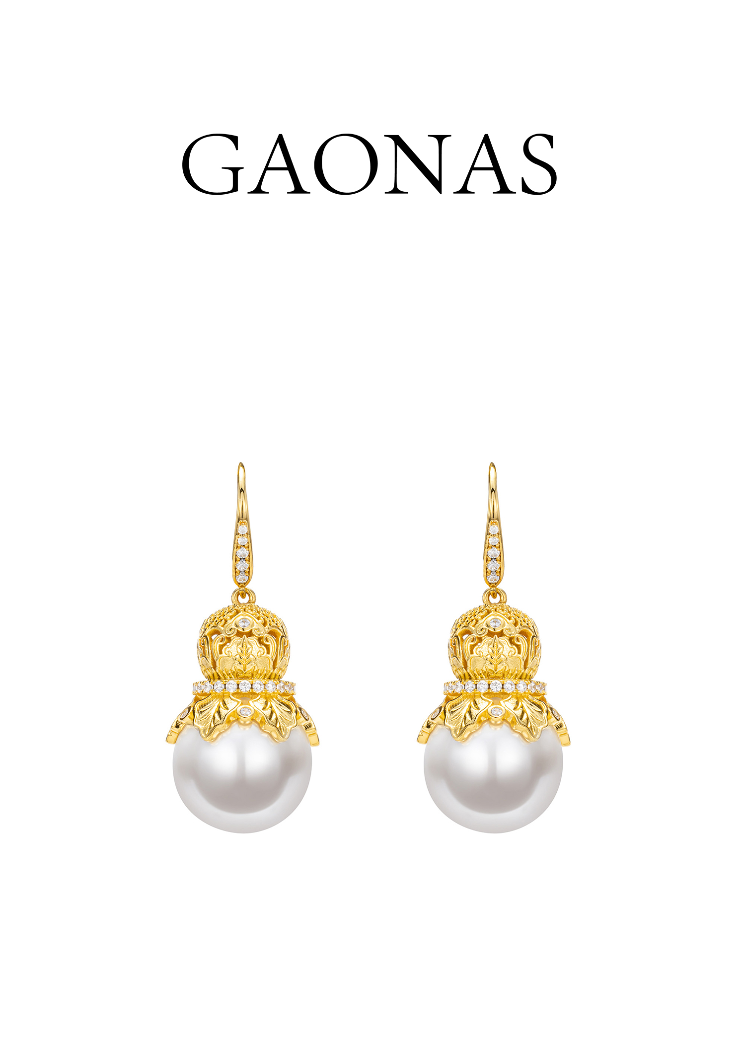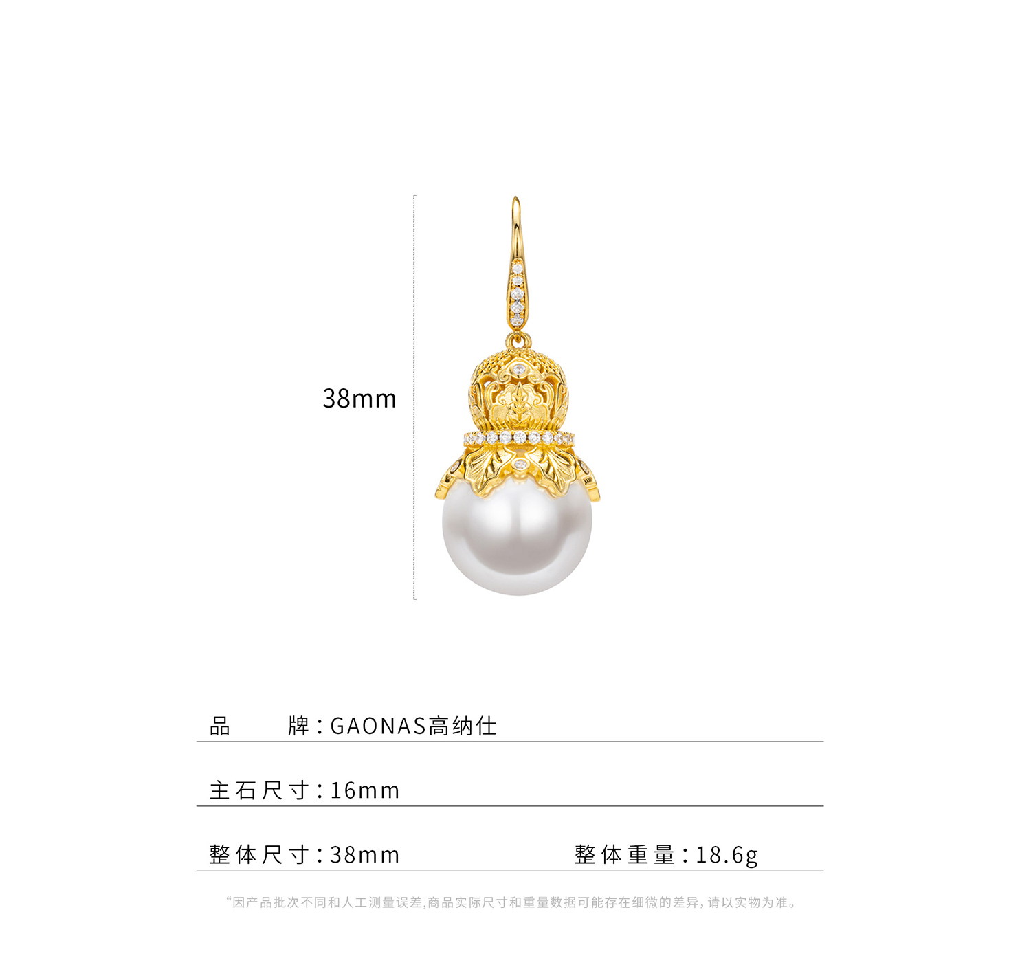 GAONAS 仿珍珠耳饰 鎏金华光16mm白色珠耳环11880EW