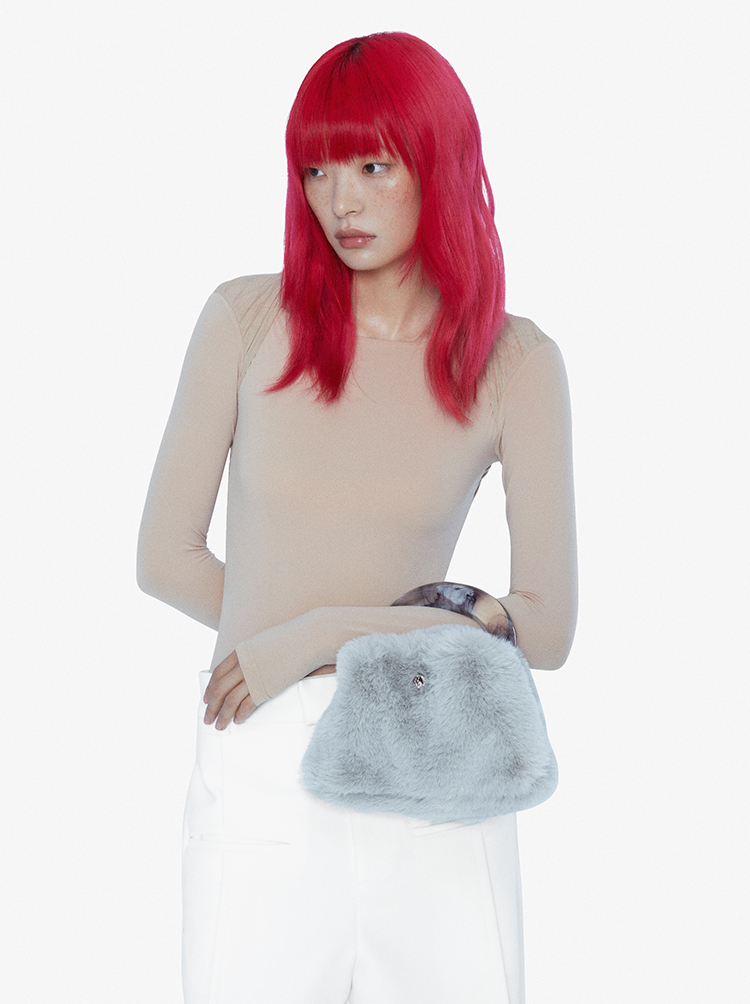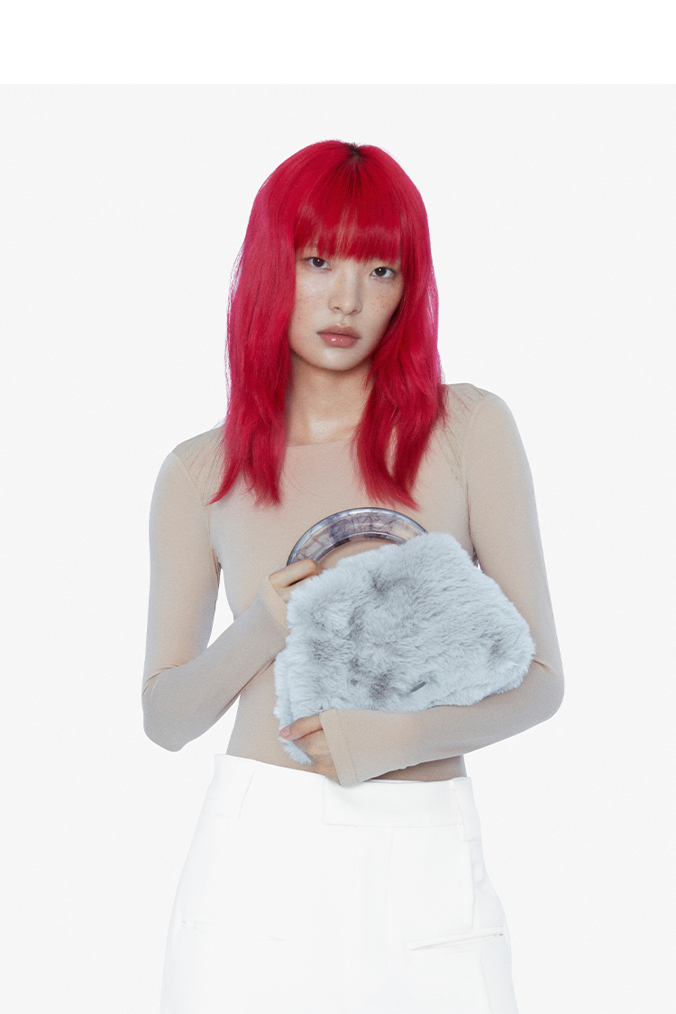 22SS CHAOS |巴别塔 皮具系列 -黑色晕染手柄+灰毛毛手袋