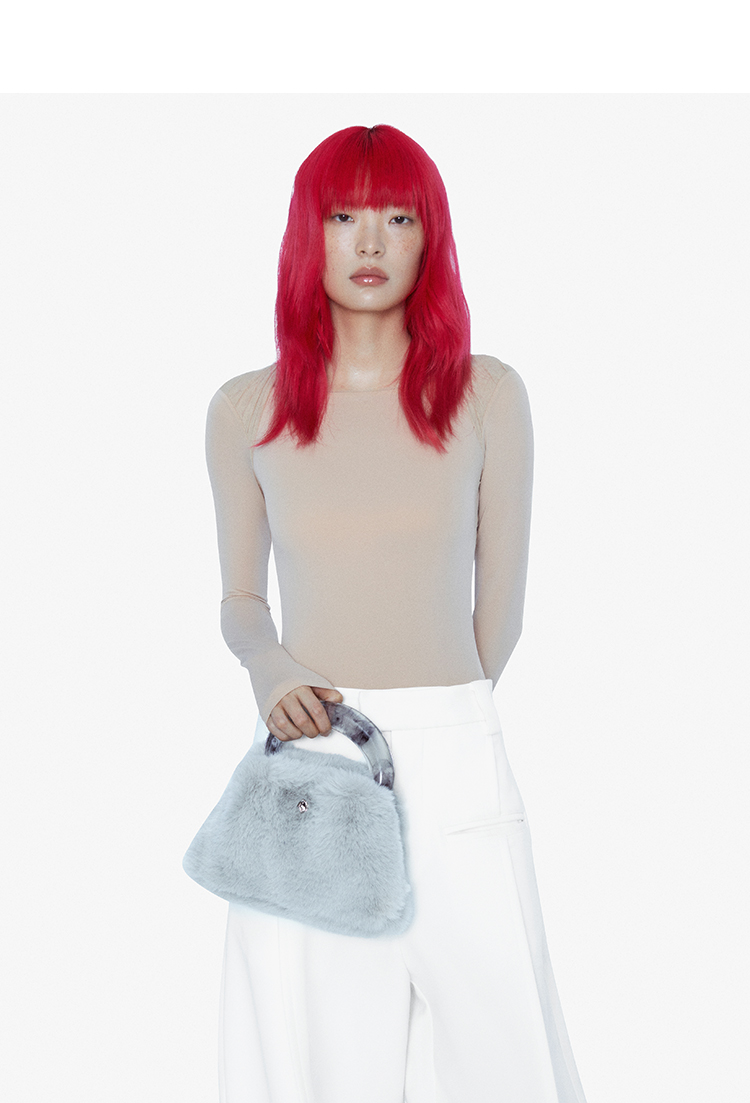 22SS CHAOS |巴别塔  皮具系列 -黑色晕染手柄+灰毛毛手袋 商品图1