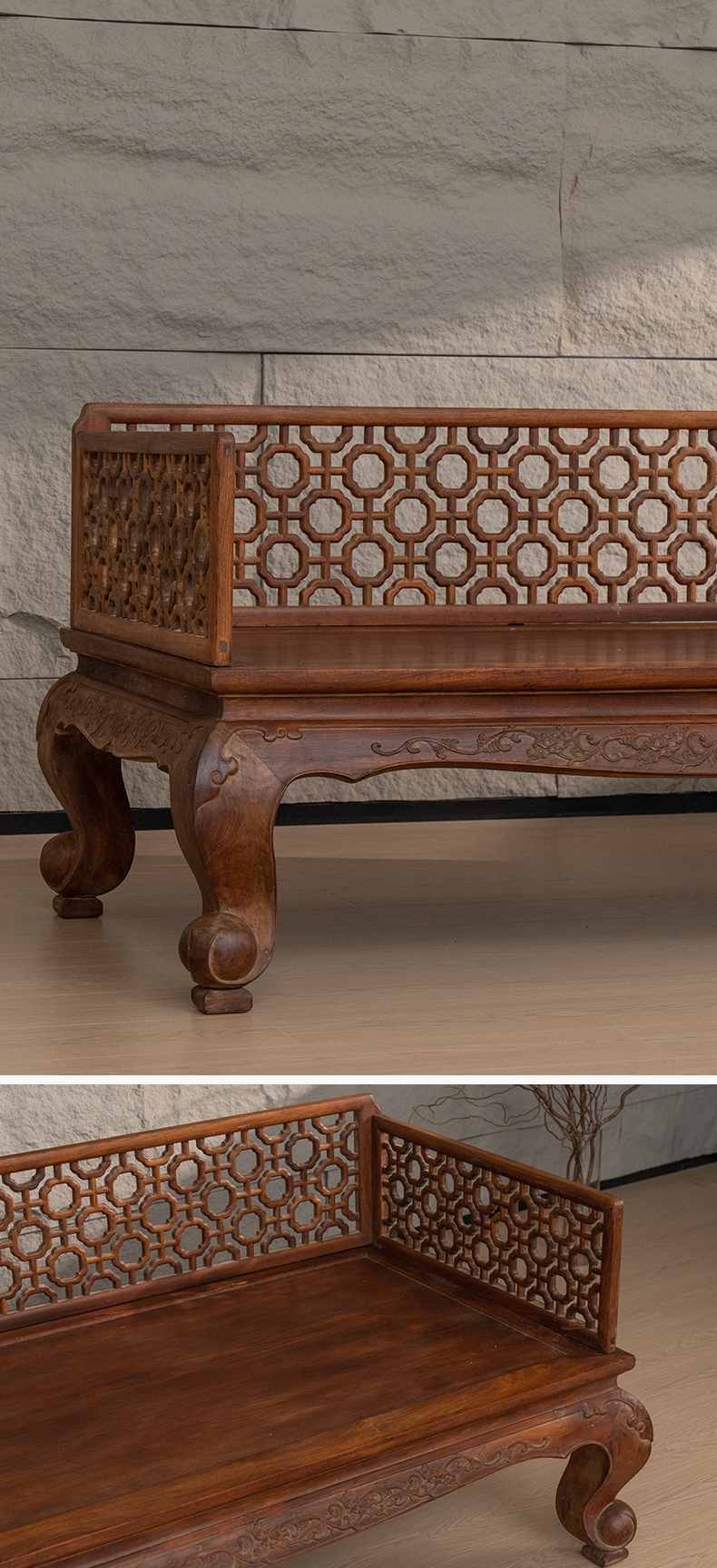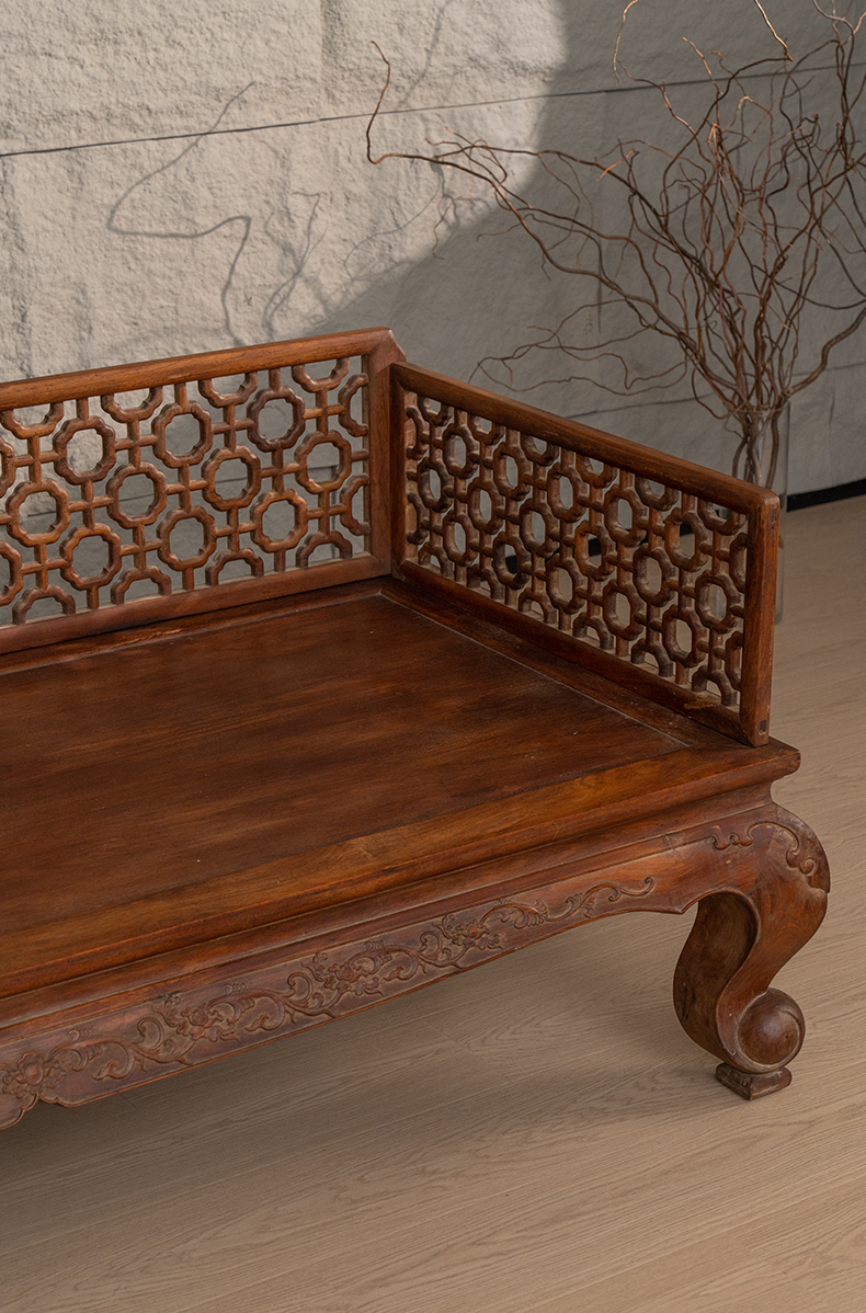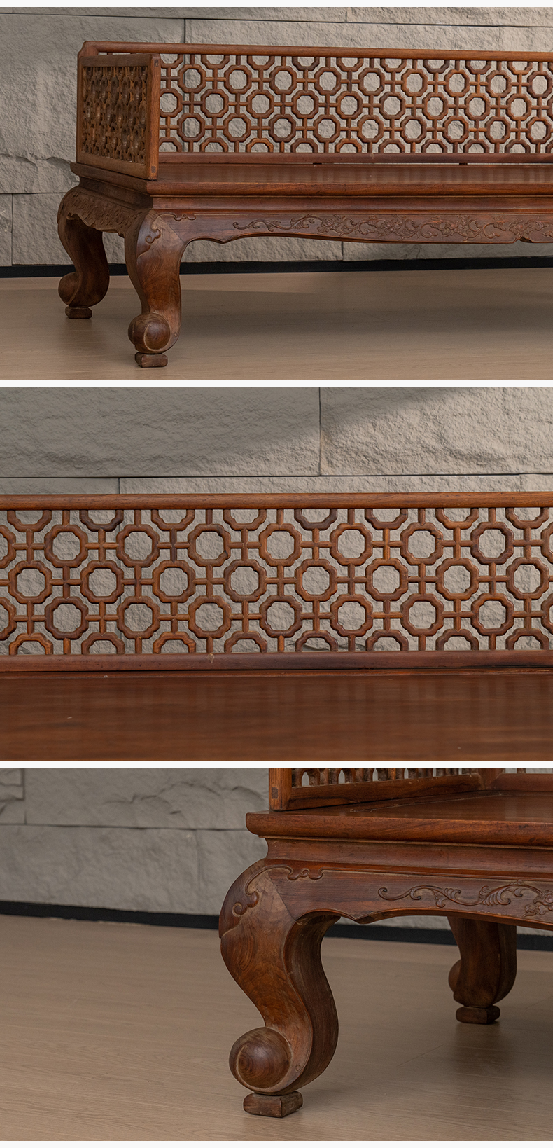 清 红木券口靠背玫瑰椅成套(两椅一几)
