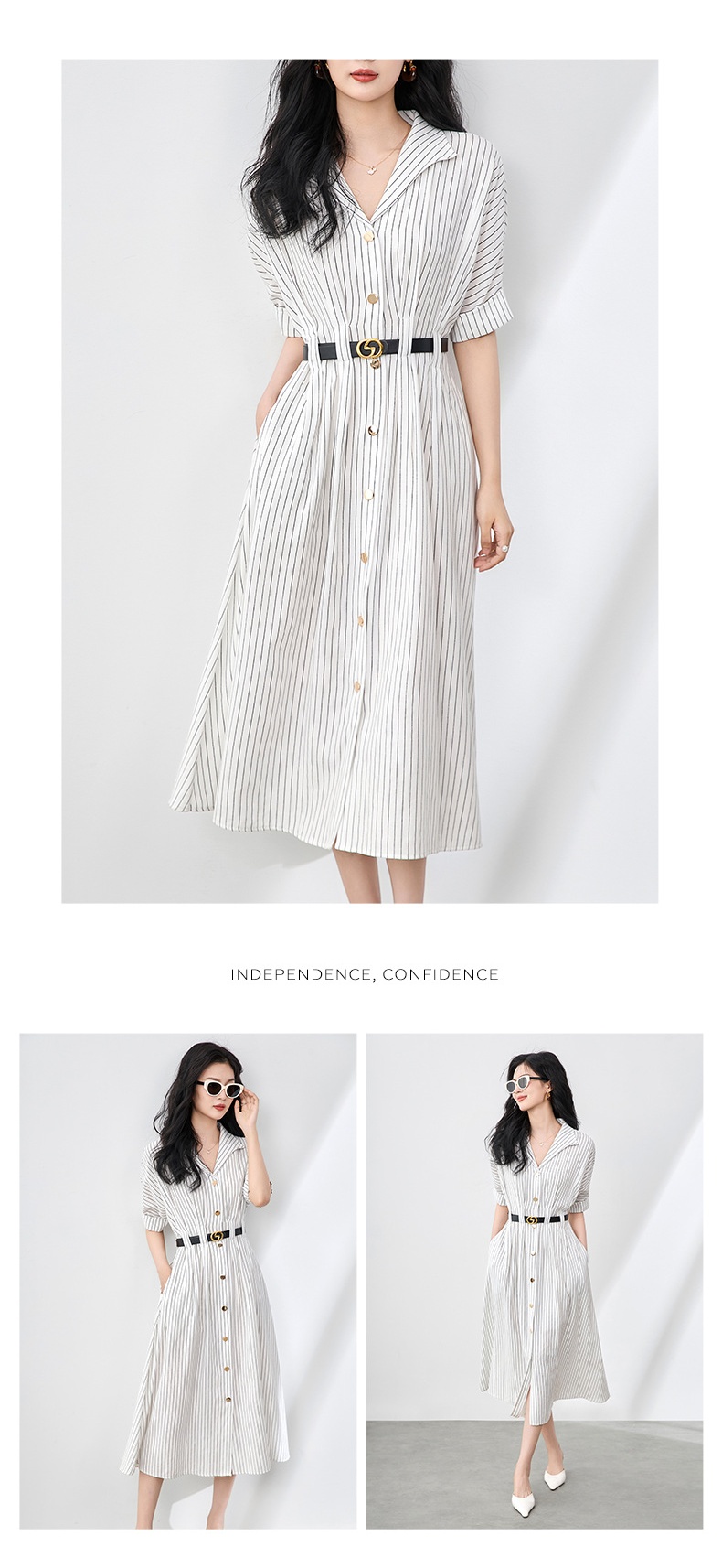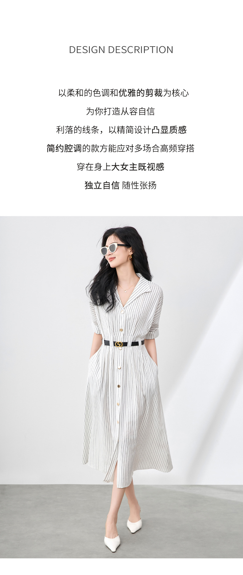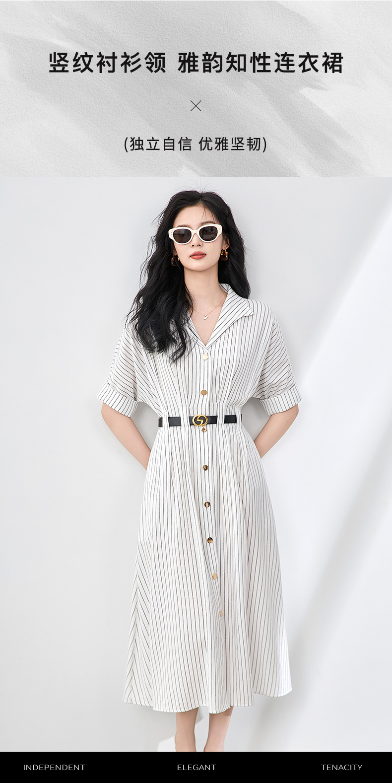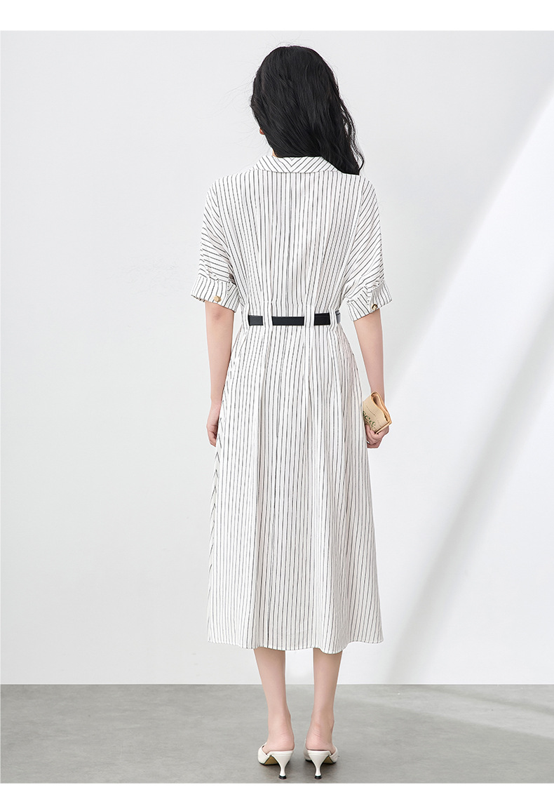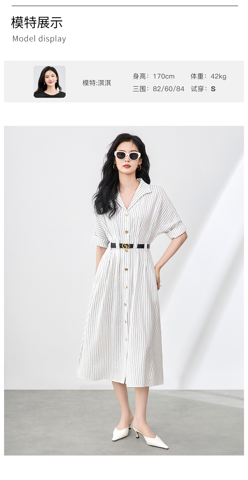 「高货wl」全新升级【铂金会员358/天猫479/差价121】(44909)洛诗琳气质通勤高级感连衣裙2025夏季新款收腰条纹衬衫裙