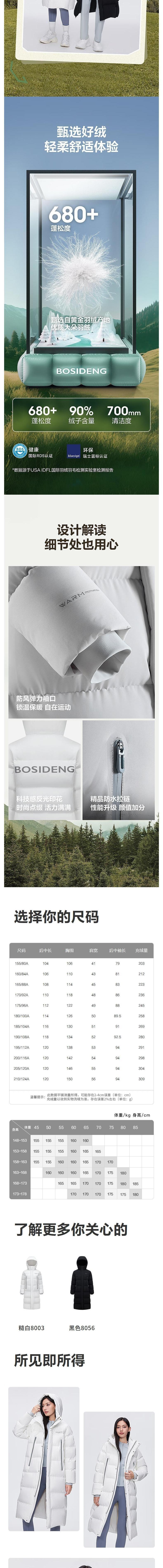 波司登 通用连帽大长款羽绒服 B40143540