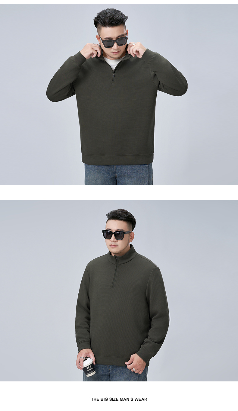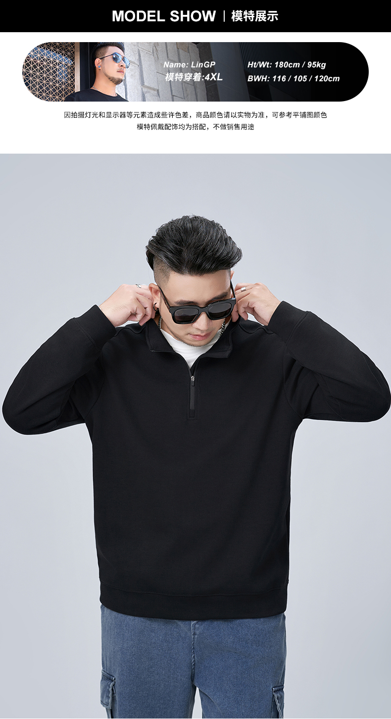 【新款DMH】大依优型大码男装立领拉链卫衣简约宽松上衣男士胖子打底衫300斤