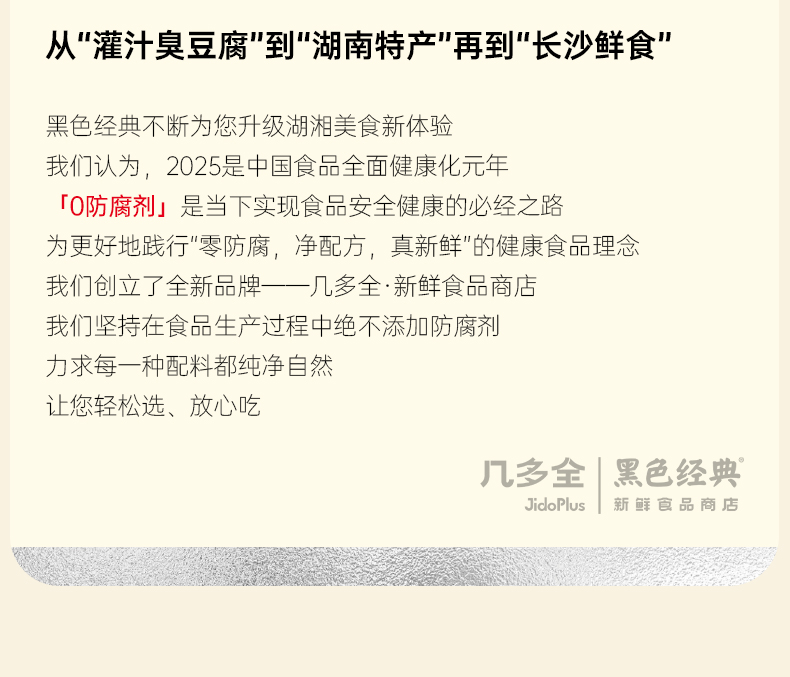 黑色经典湖南特产商城是长沙著名特色小吃“黑色经典长沙臭豆腐”旗下的线上官方商城。黑色经典面向全国,以长沙臭豆腐为核心,辐射覆盖湖南本土特色美食全系列产品,并对所有产品的生产工艺及包装进行了独特的改良。