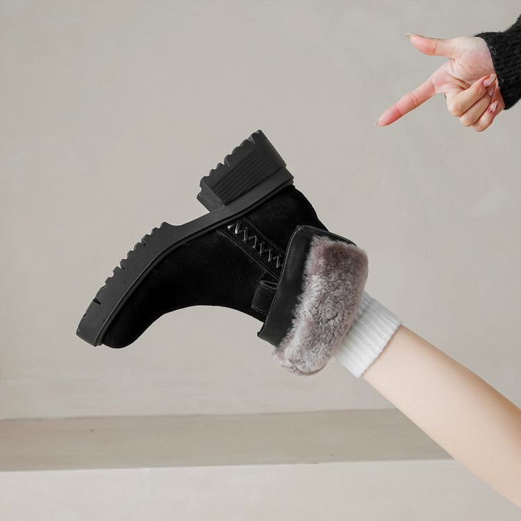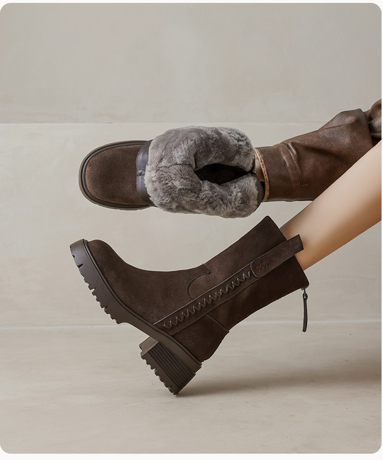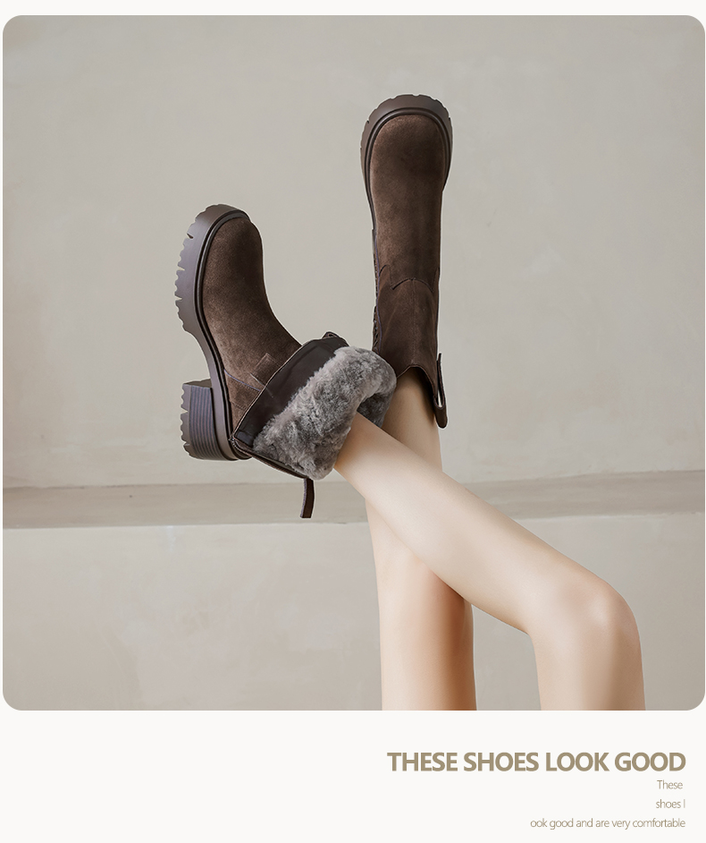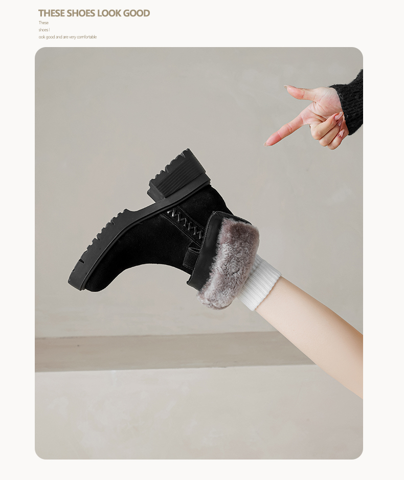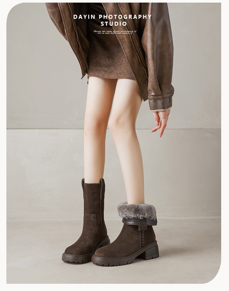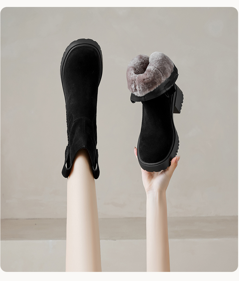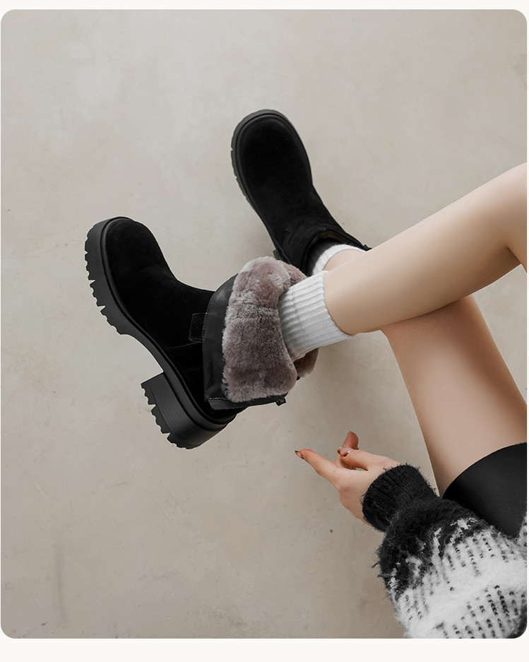 【预售5天】冬季羊皮毛一体厚底雪地靴女真皮保暖大棉鞋高跟加绒厚毛短靴168XY&1681470