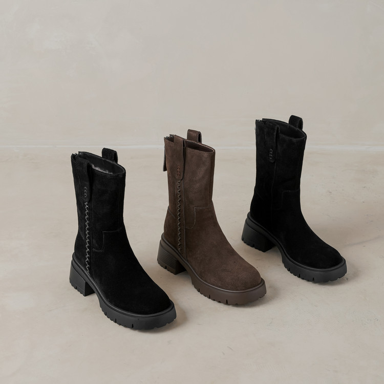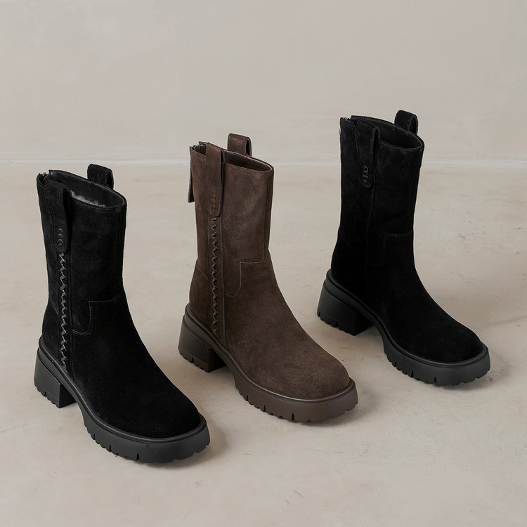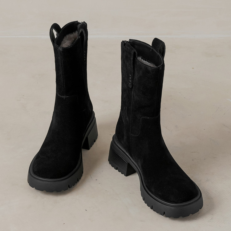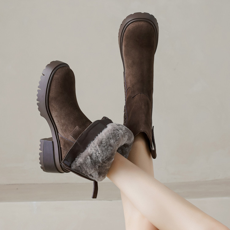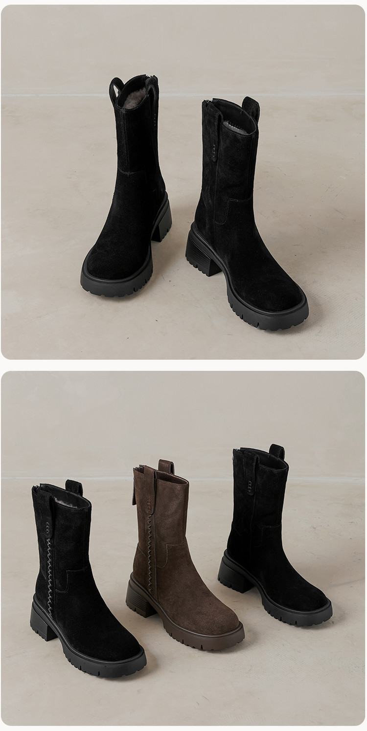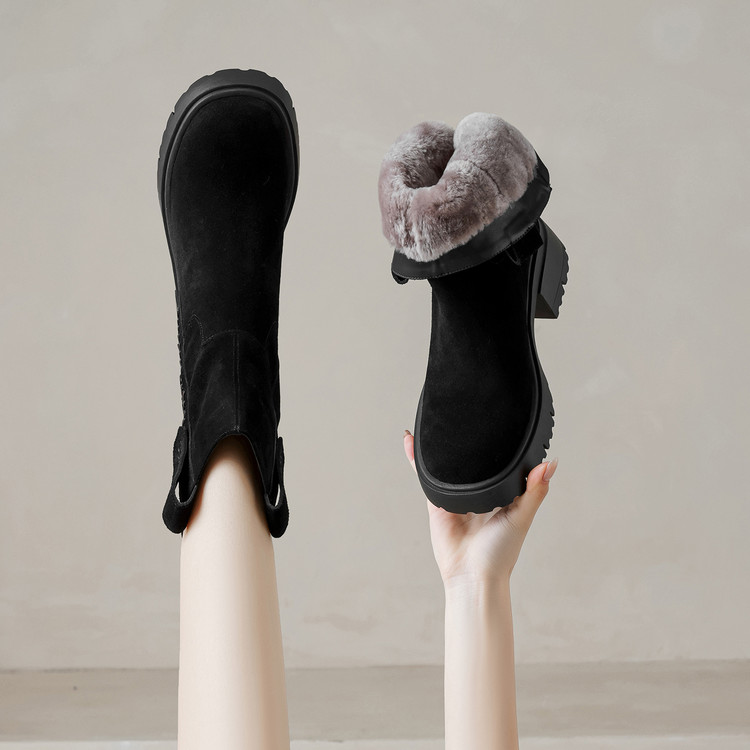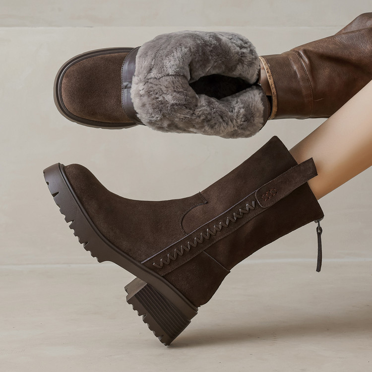【预售5天】冬季羊皮毛一体厚底雪地靴女真皮保暖大棉鞋高跟加绒厚毛短靴168XY&1681470