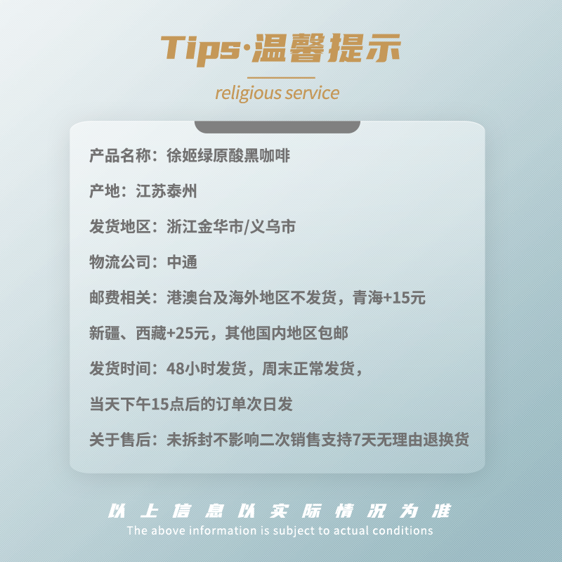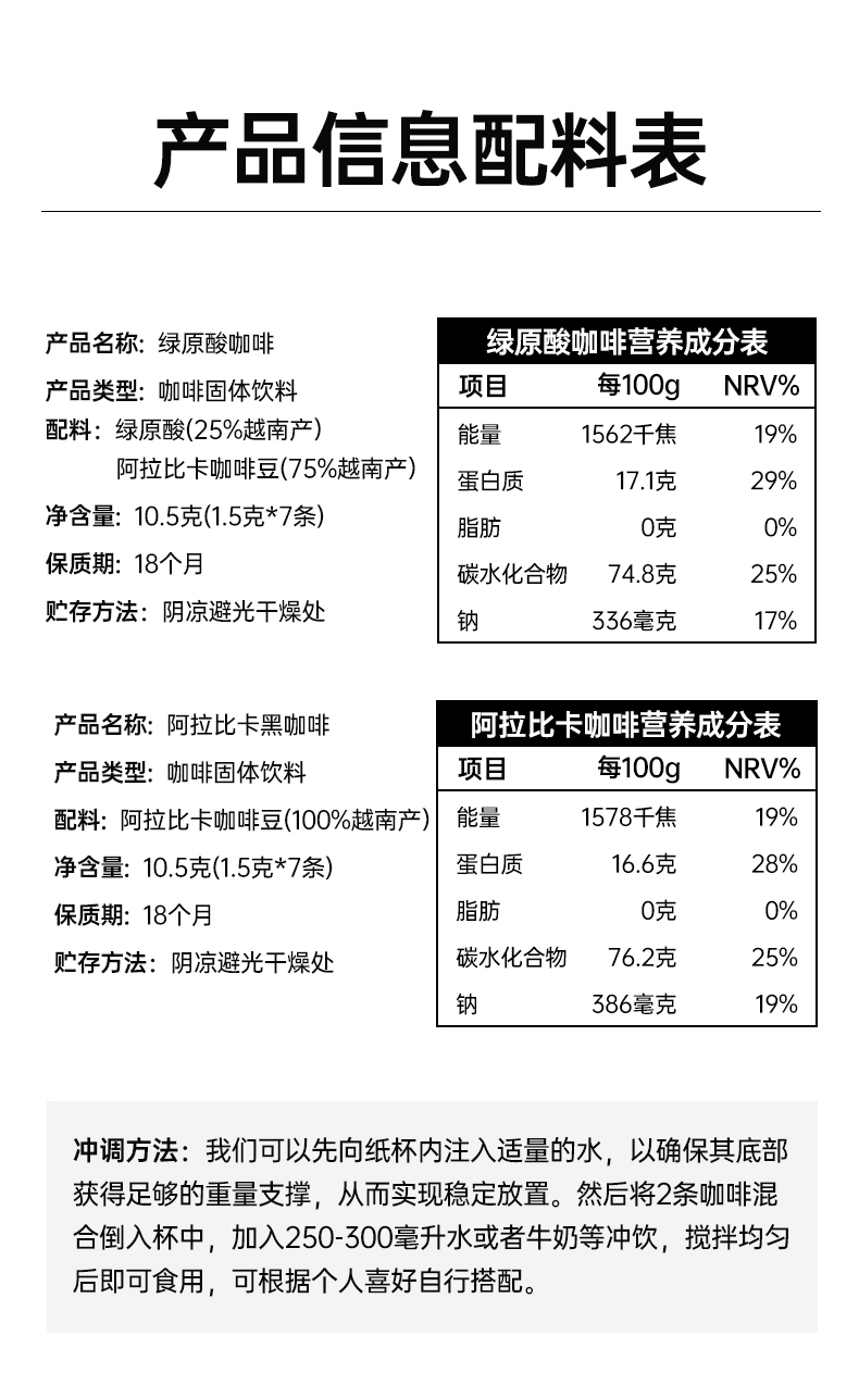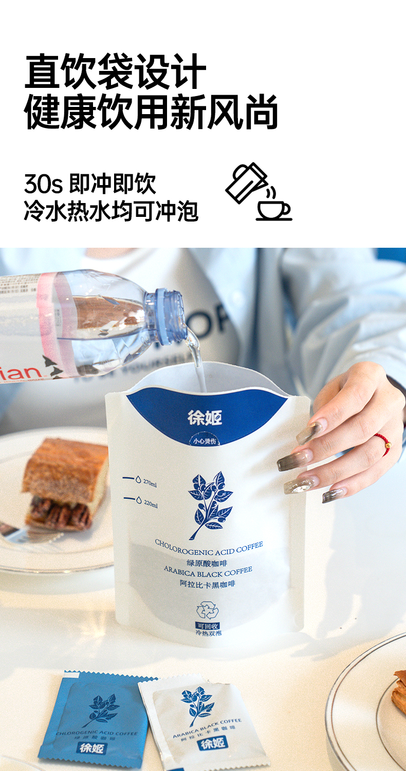 徐姬绿原酸黑咖啡 醇香口感自然原味不添加蔗糖速溶健身咖啡粉 直饮袋设计即开即饮 1.5g/杯
