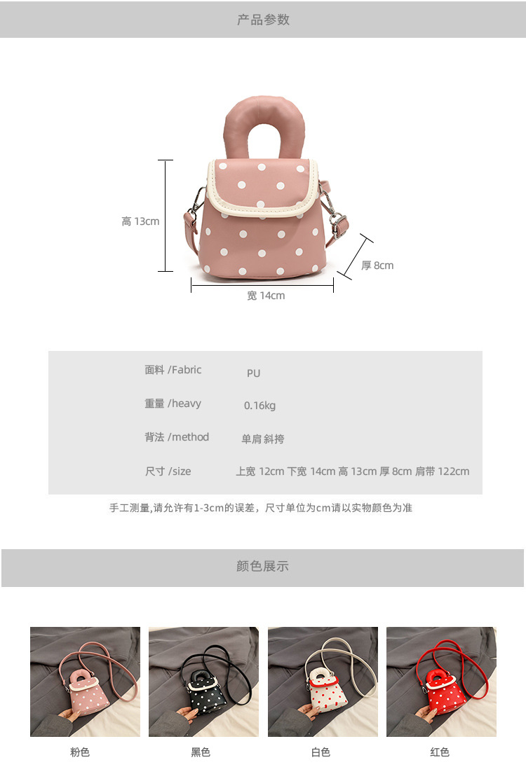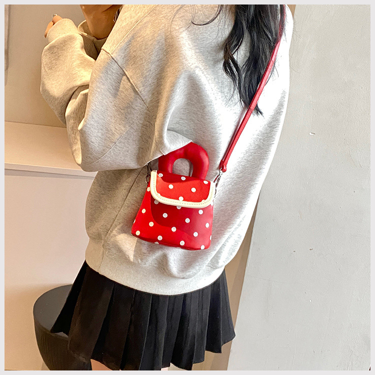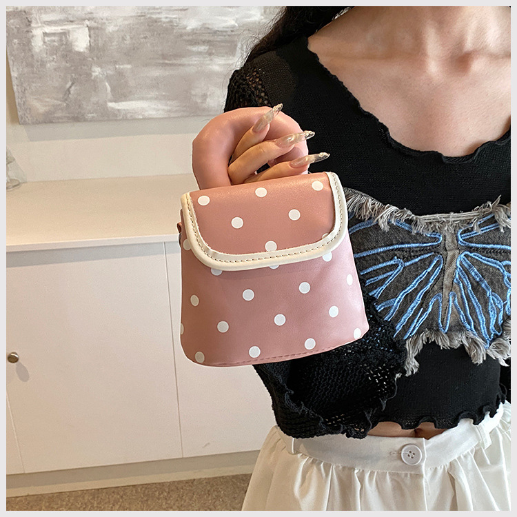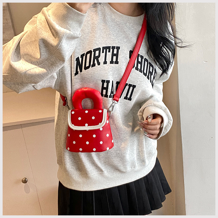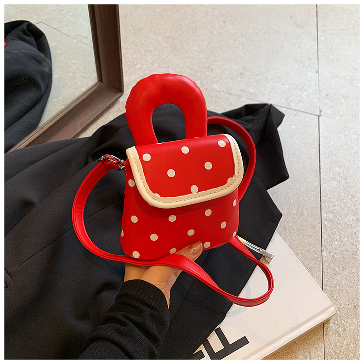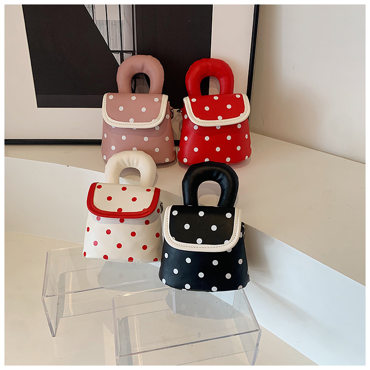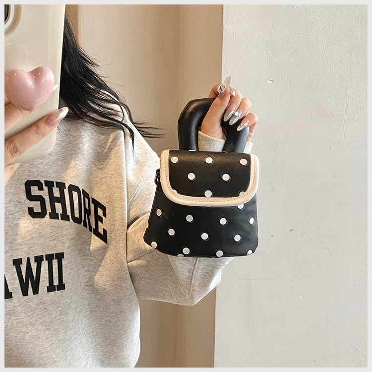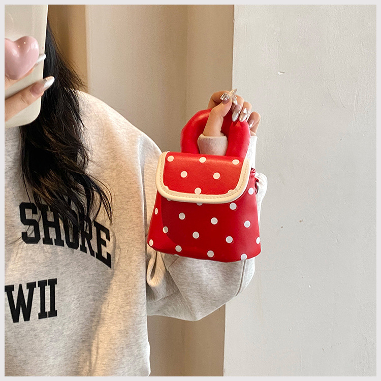 雀说 PU复古波点包甜酷少女斜挎包洋气亲子口红配饰包公主手拎包5ZF-945