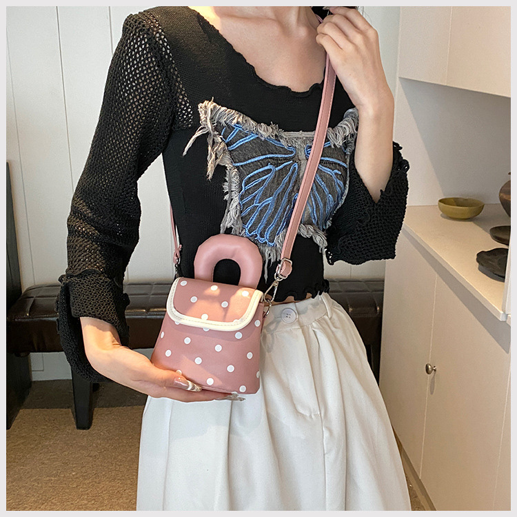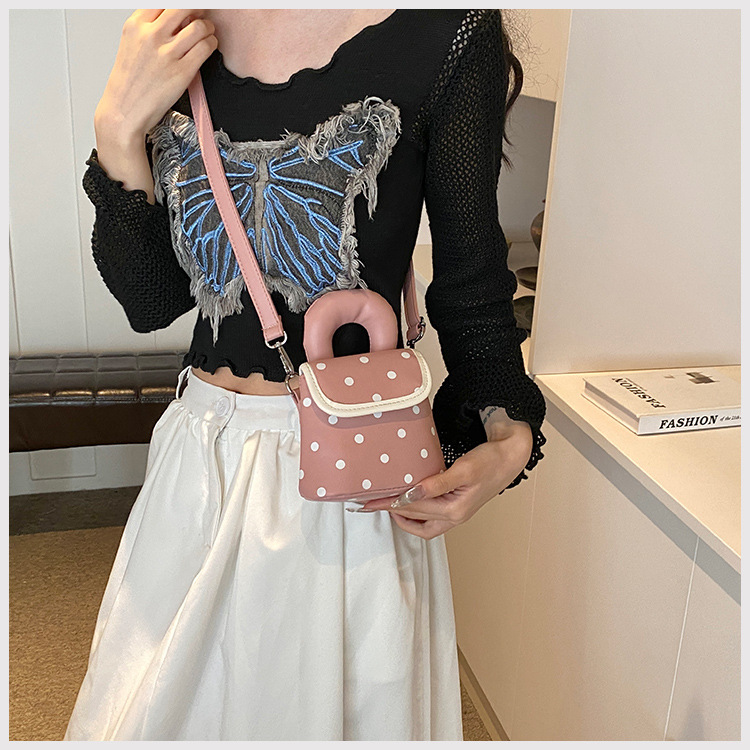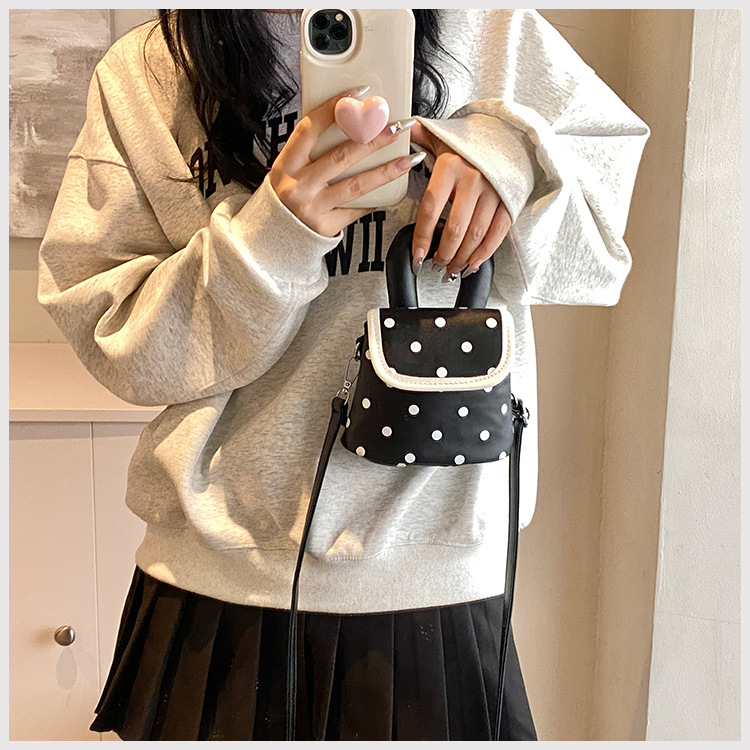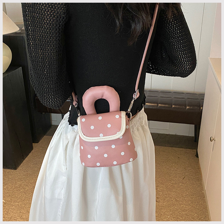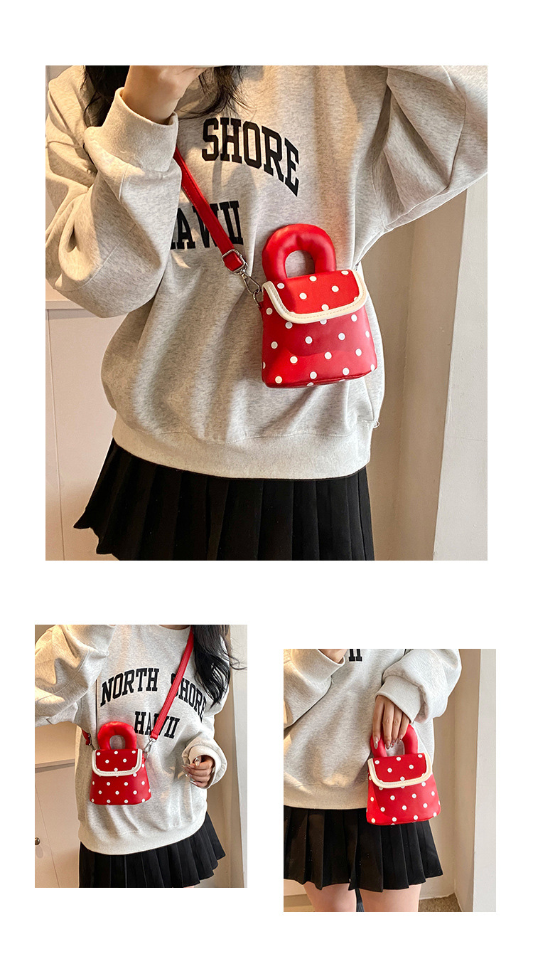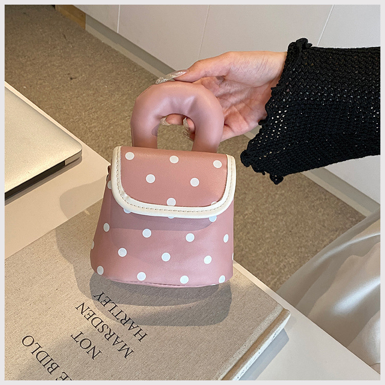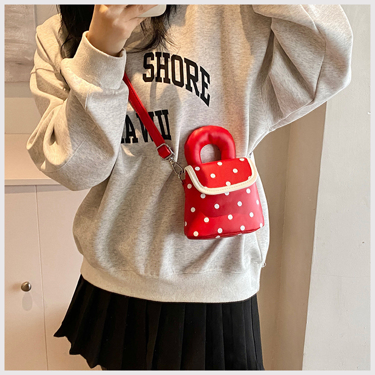 雀说 PU复古波点包甜酷少女斜挎包洋气亲子口红配饰包公主手拎包5ZF-945