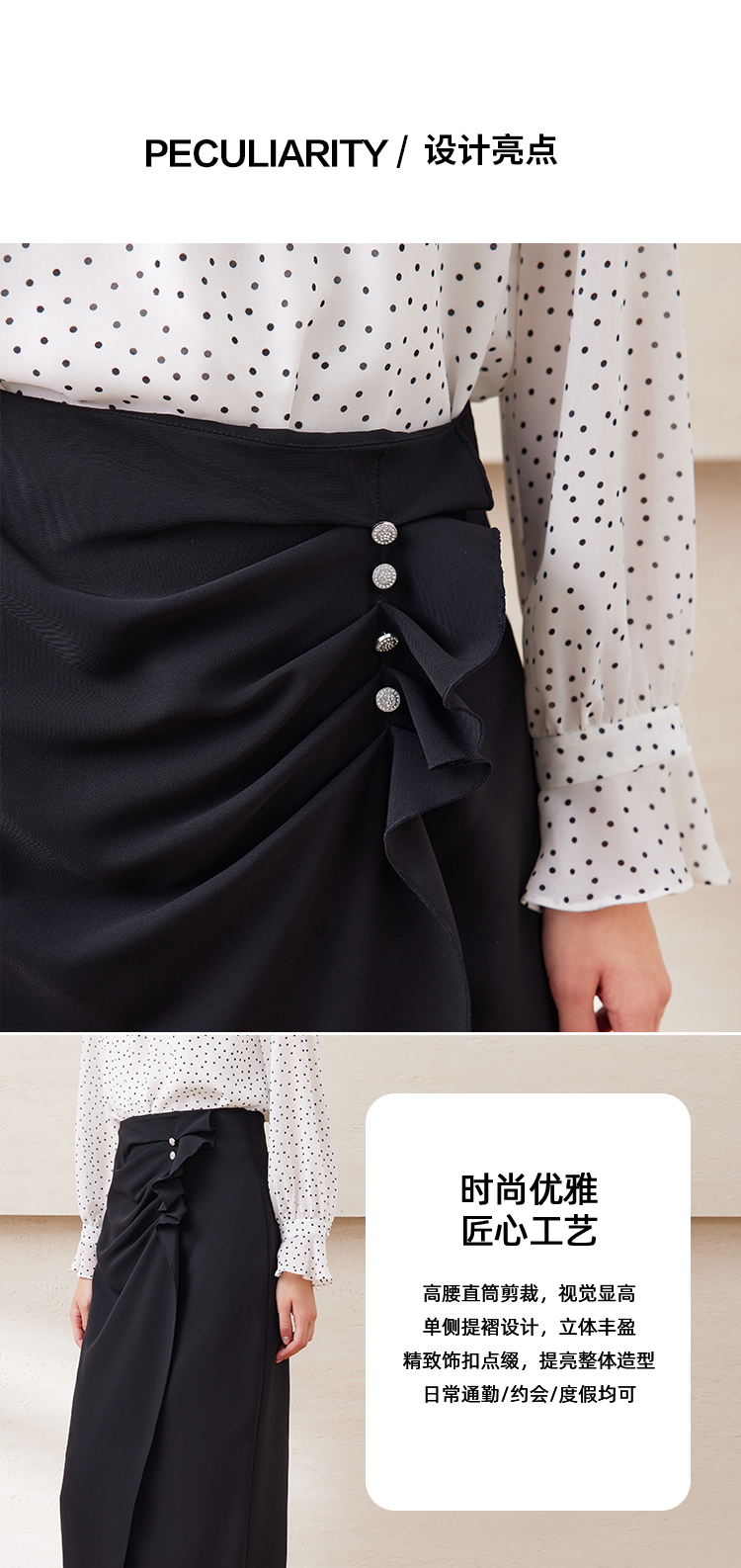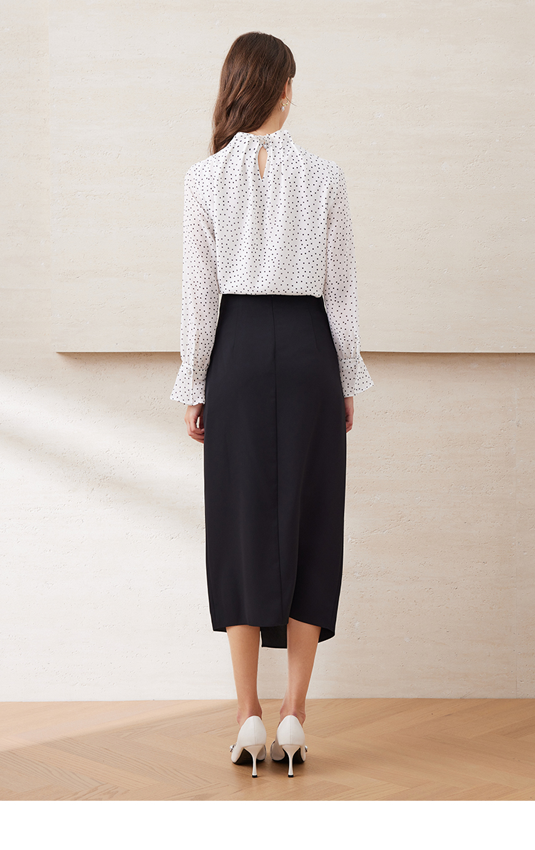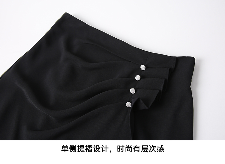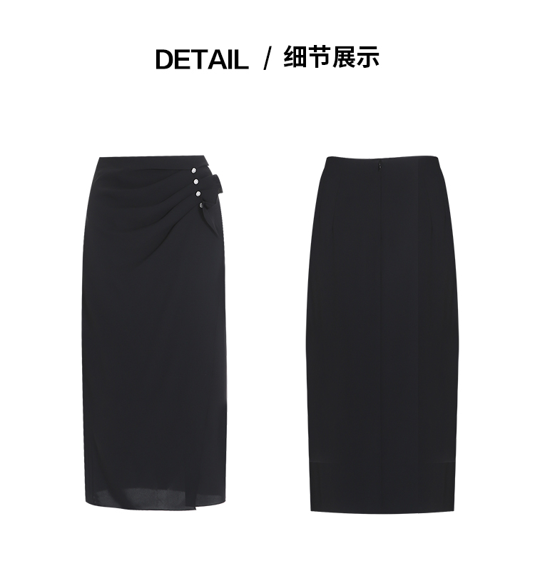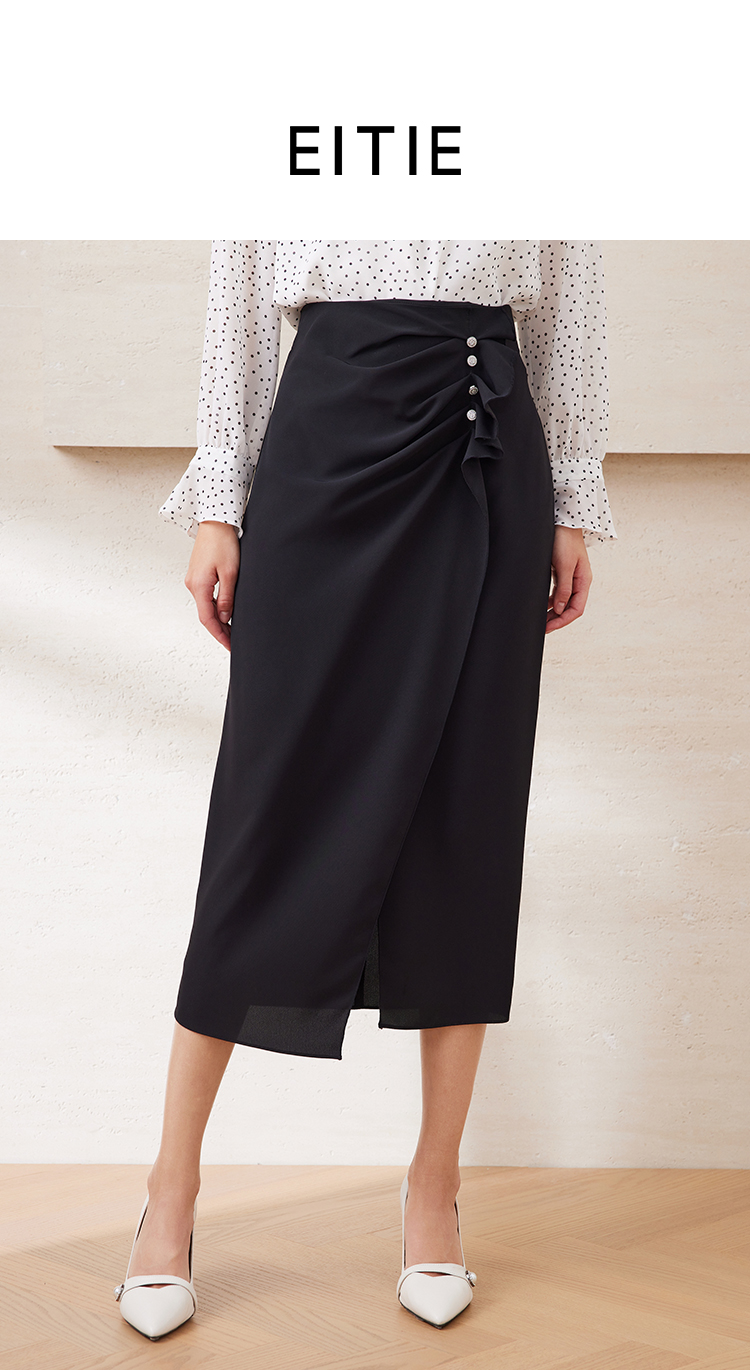 EITIE爱特爱提褶木耳花边不对称包臀高腰缎面半身裙夏季新款B2506604