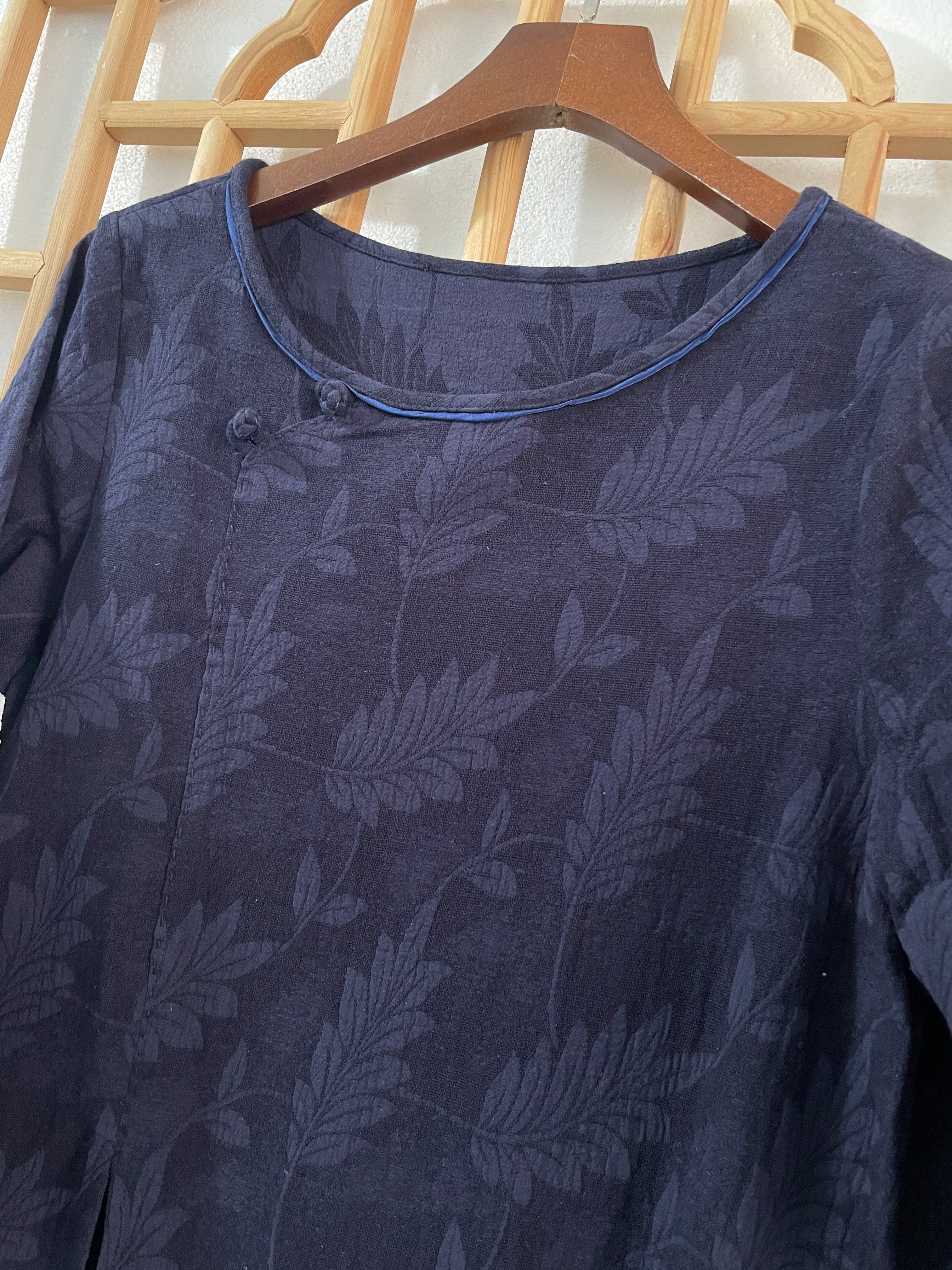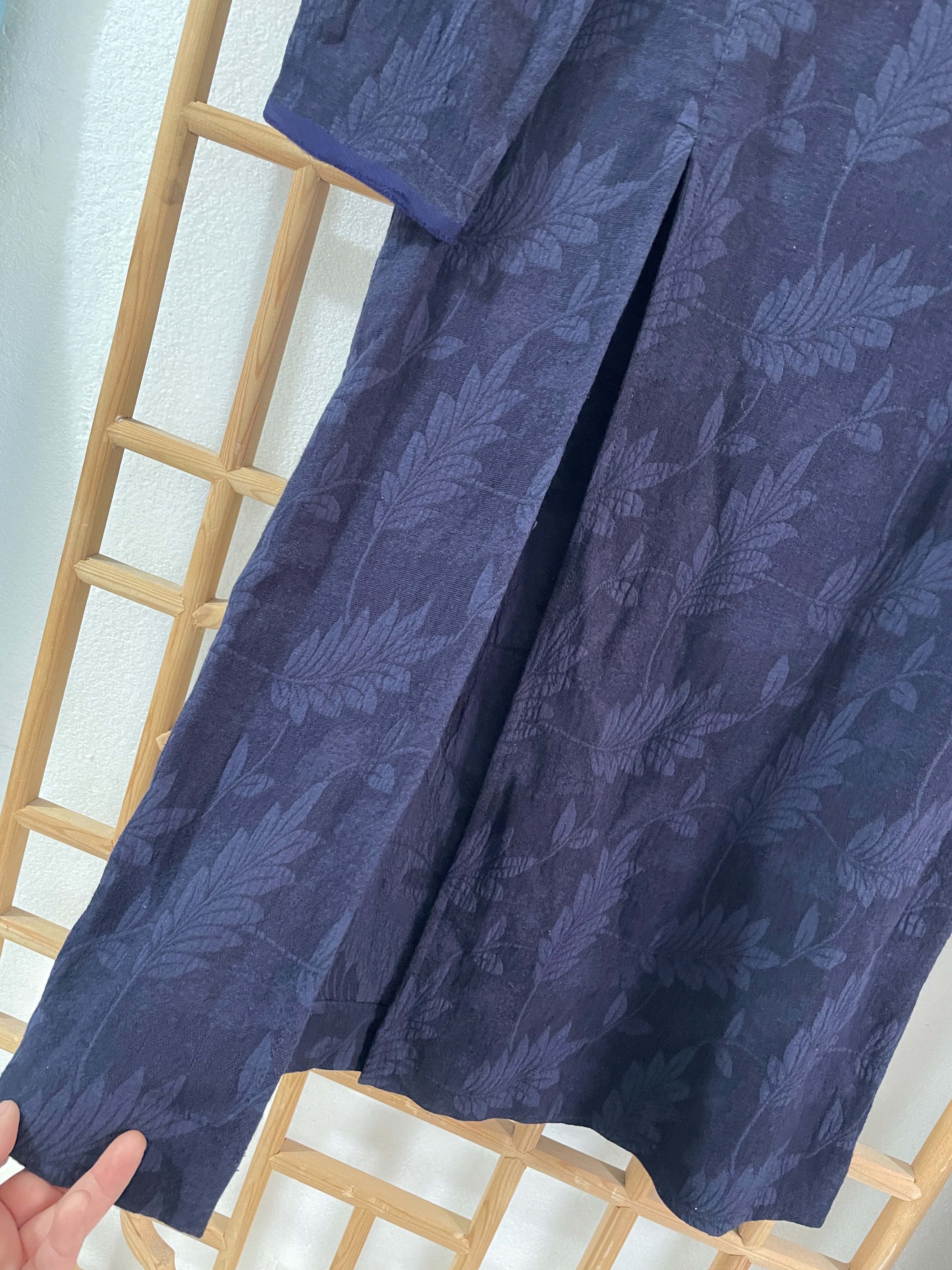 「断码清仓」精品新中式亚麻棉桑蚕丝高开叉改良旗袍连衣裙 XS码 ZFYY296
