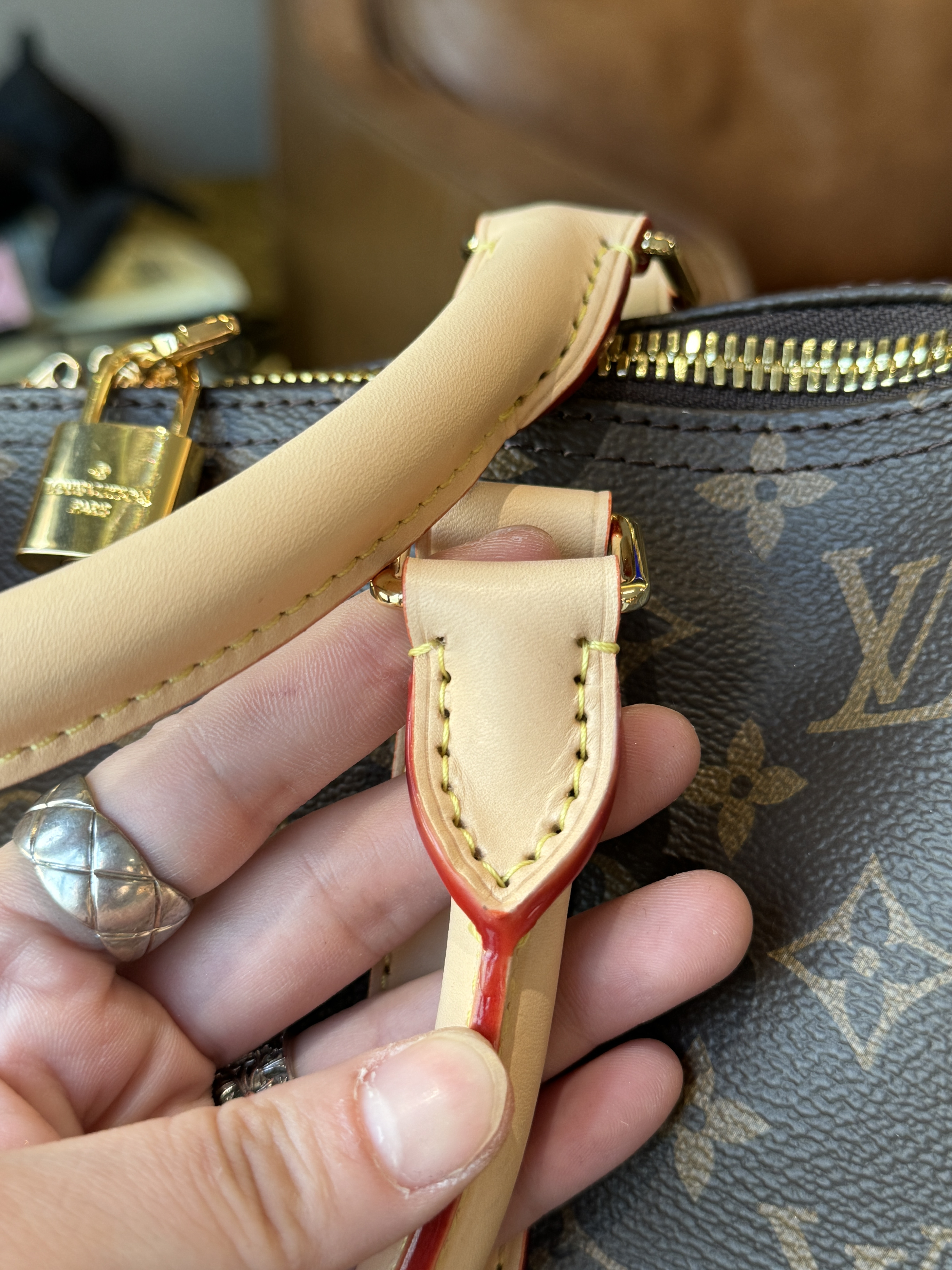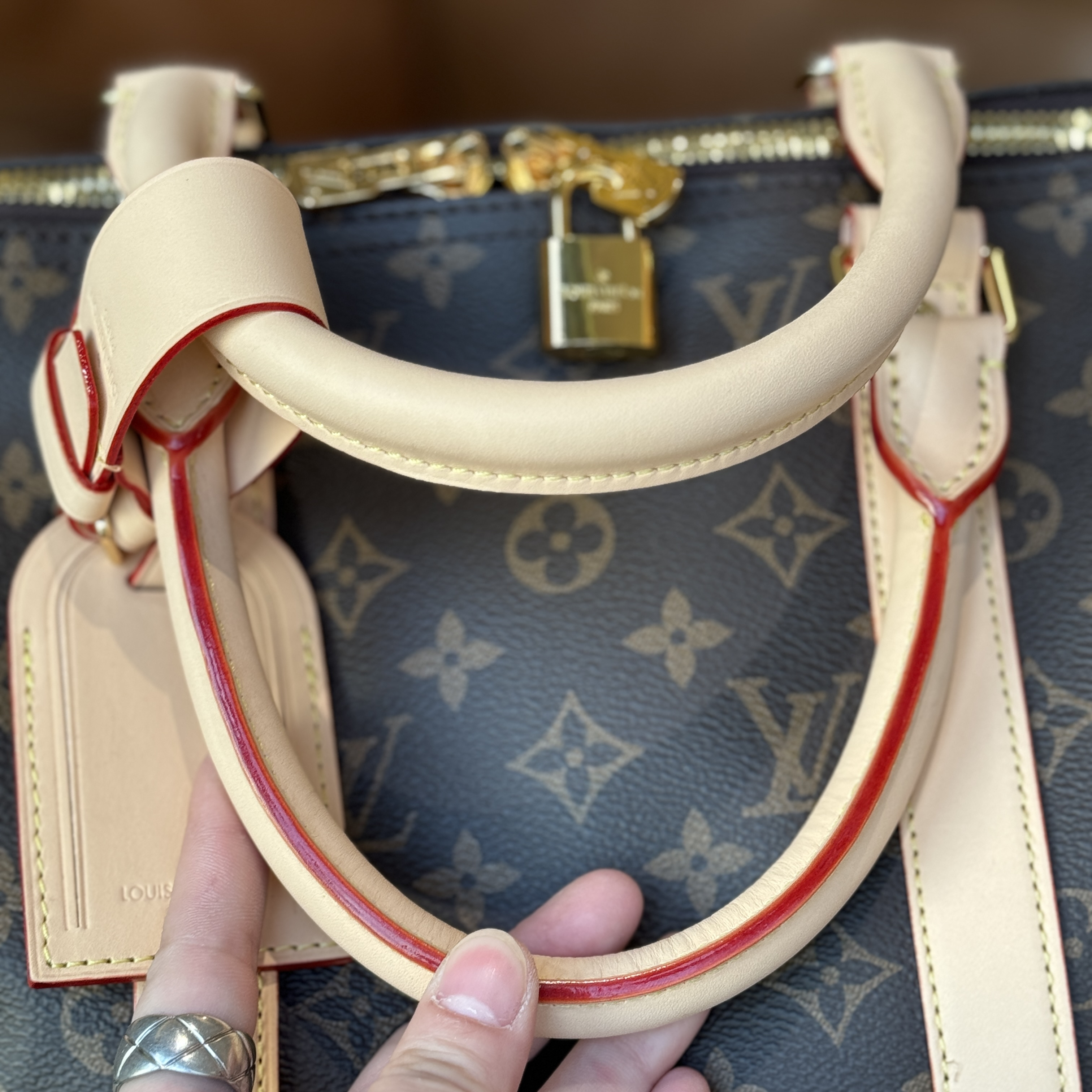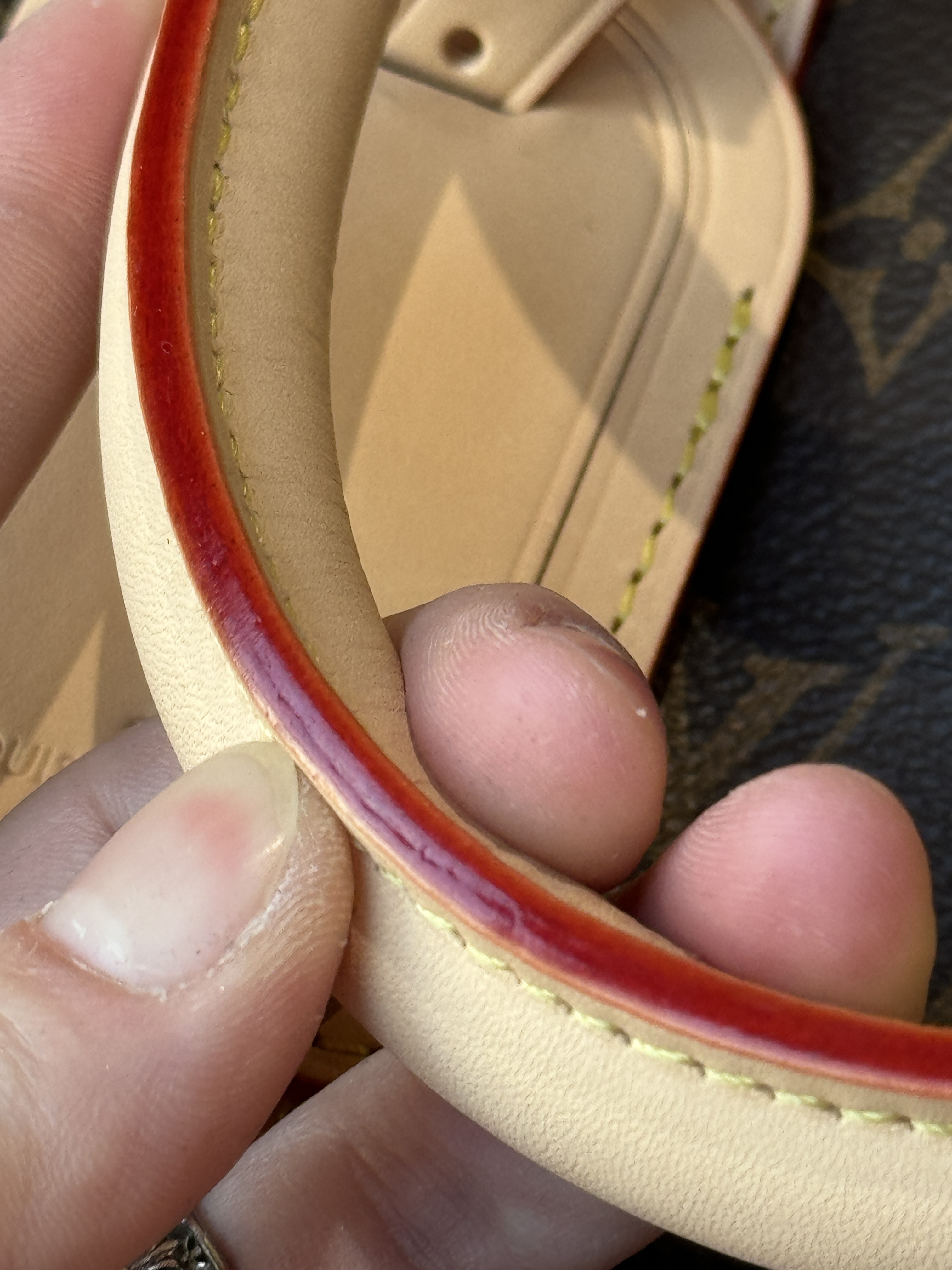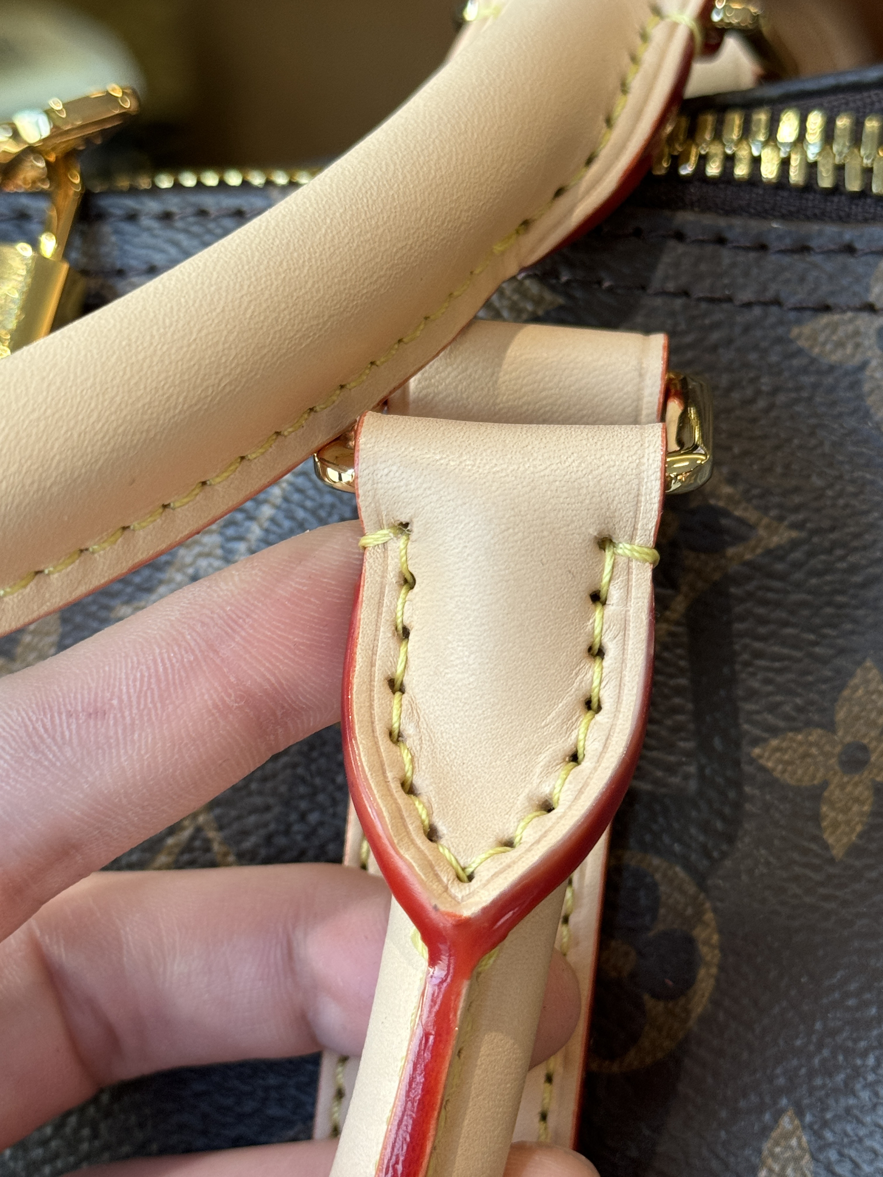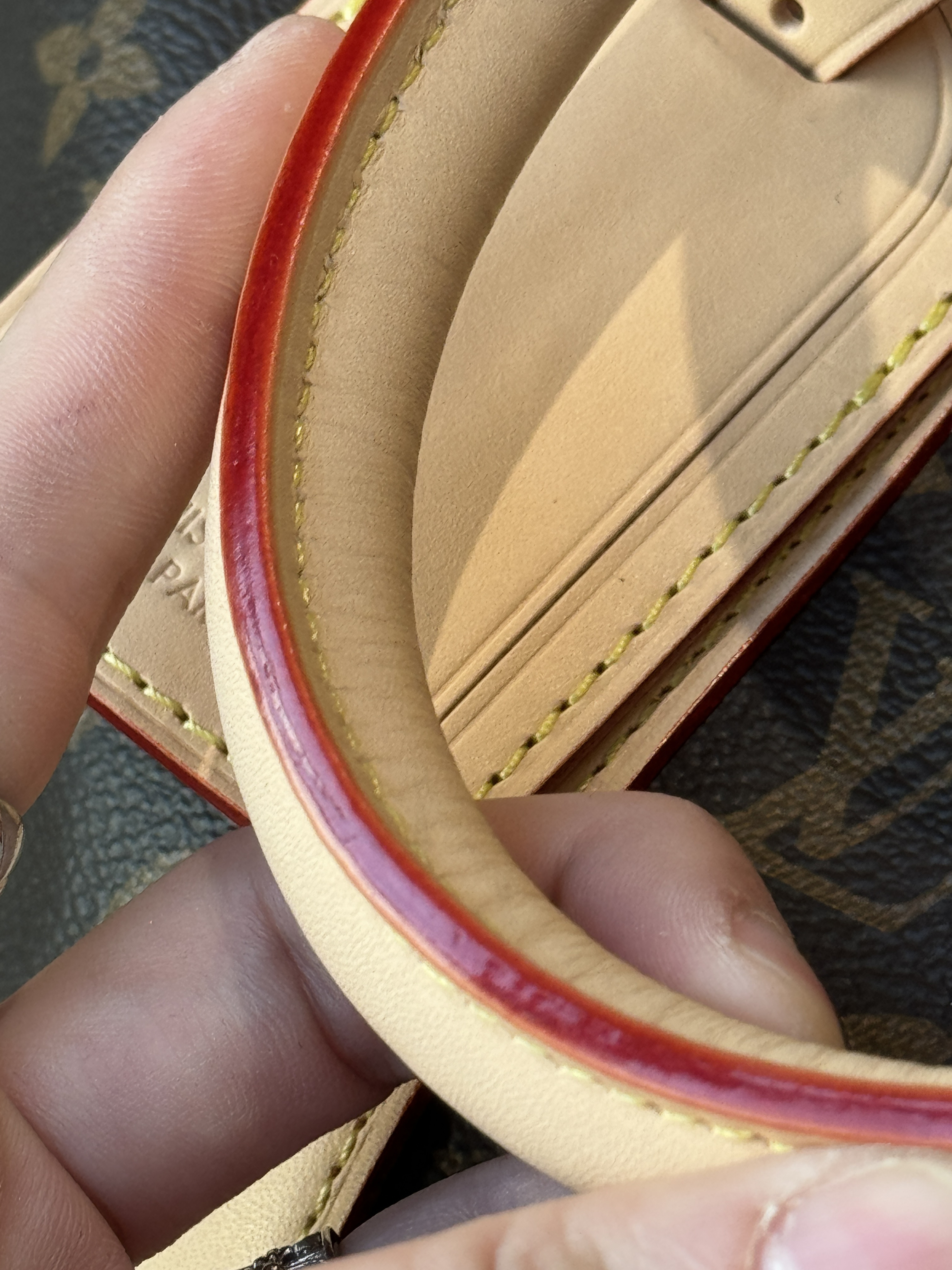 这个牌子最难搞的就是这个老花面料,!!全部正单的材料;自带高级感的法国进口Monogram皮料,皮革纹路深浅均衡,“小水泡纹”颗粒之间空隙比较分明,有一条条纹路清晰的横斜纹,整体条纹纹理清晰分明,摸上去手感软硬适中;放大看它的老花印字,远看似乎是黄绿色的一整笔画成,但其实上面的印花是以点状阶梯横纹老花图案组成的斜线条!这种特殊的纹理和形状,造就了极具身份特性的四叶草老花图案,并随着时间变化,会变色的lv,越用越有味道!!!!