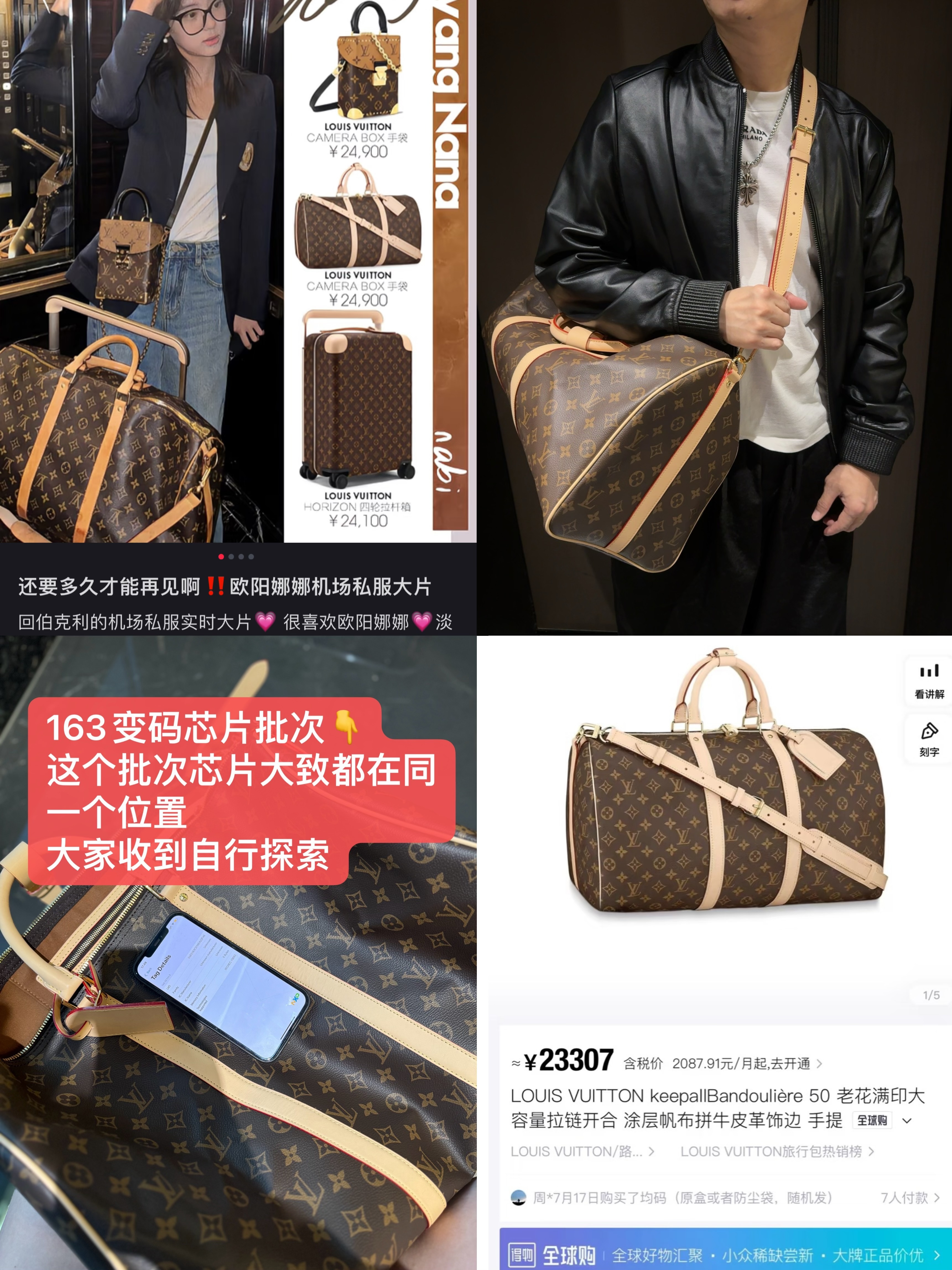 最牛的尺寸!刚刚好!明星出行同款驴家keepall50旅行袋,目前全球购2.3万!秒完无补⚠️ 这款是保值的!越用越喜欢的那种!带163变码芯片批次‼️ 绝无仅有啊!你们看这个质感就知道不是吹牛的,好好看看老花帆布的面料,纹理,走线和光泽!东西够我才会给你们出,市场上这个牌子再便宜我都不会碰的!咱们只出这一个渠道‼️不收的是傻子[捂脸] 这个牌子咱们就是出着好玩,就是攒粉用的,可以给客人带的带一下,但是自己家里男人需要的先给家里人留,行李袋本来就少,更别提这个牌子,少之又少! 必须冲假期又要到了,出街露营大片时髦单品必须得有 keepall! 50 冲冲冲!!